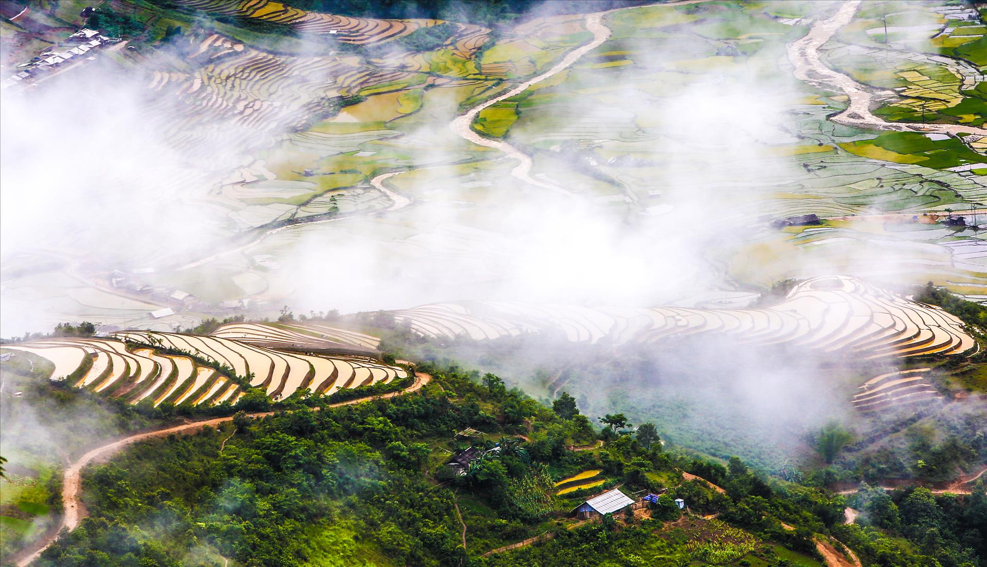 Chúng tôi đã có gần 10 năm, mỗi năm 2 lần vượt đèo Khau Pha lên khám phá danh thắng ruộng bậc thang nhưng để gặp cảnh mây tràn vào bản làng, vào ruộng bậc thang chỉ có một lần duy nhất.