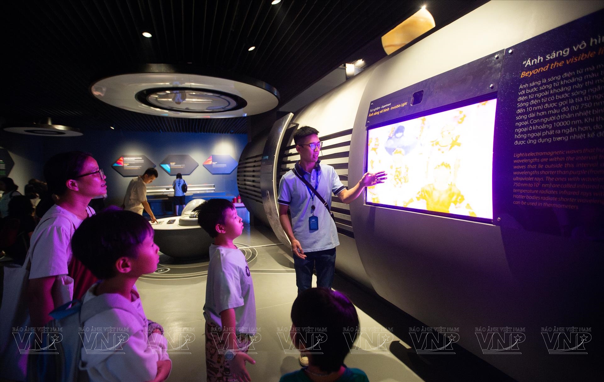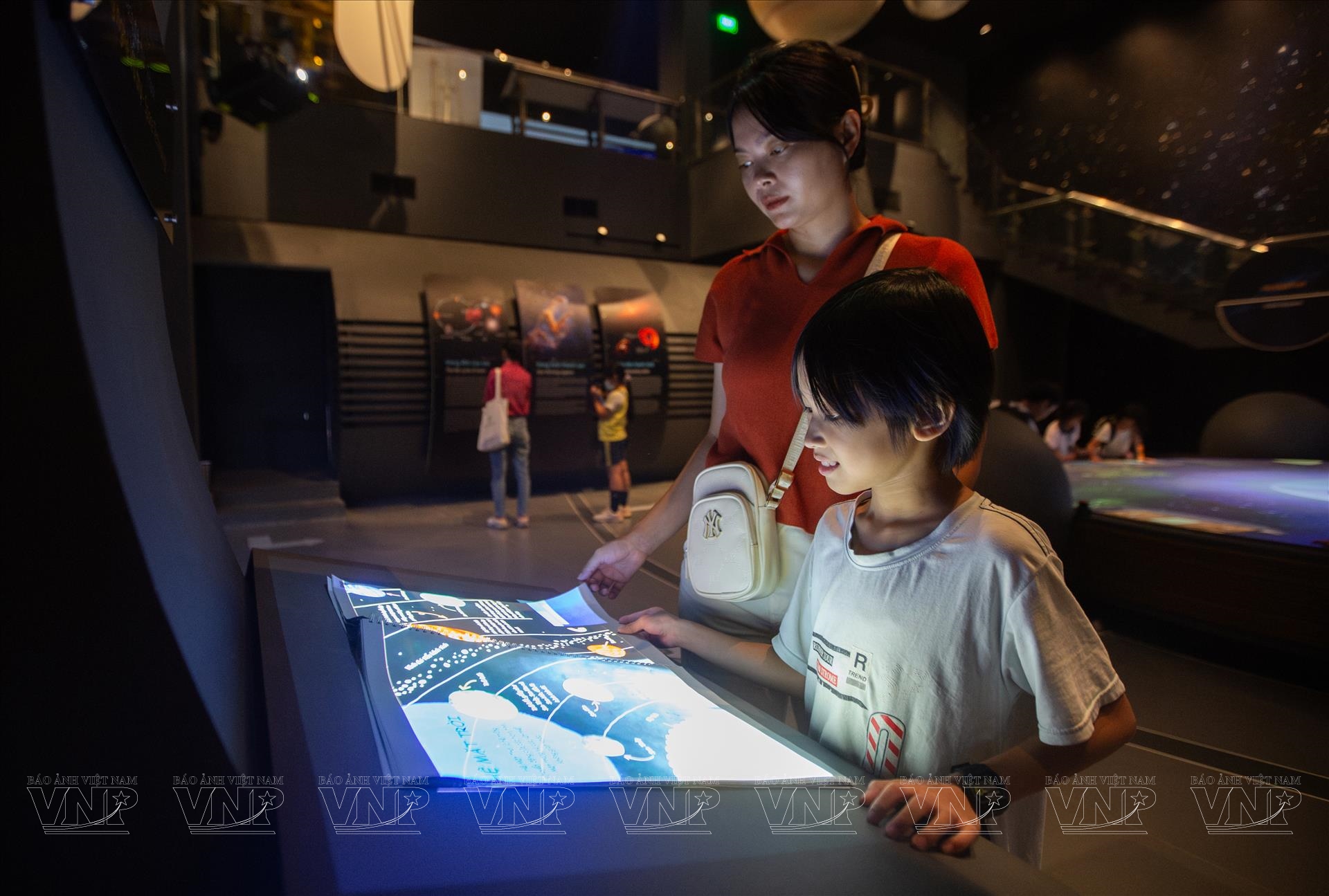 PGS.TS Phạm Ngọc Điệp, Giám đốc Trung tâm Vật lý thiên văn và Khám phá vũ trụ cho biết: “Chúng tôi cũng ứng dụng nhiều chuyển đổi số trong việc xây dựng Bảo tàng. Có rất nhiều các mô hình trưng bày, những vật dụng và thí nghiệm nhỏ cũng đã được sử dụng công nghệ số. Việc sử dụng công nghệ này để có những tương tác trong các mô hình đem lại cảm nhận, cảm quan sinh động cho người xem. Qua đó góp phần chứng tỏ rằng công nghệ số nó rất hữu ích trong trong đời sống, trong công việc, trong truyền bá khoa học và công nghệ. Tuy nhiên, tính khoa học luôn luôn đảm bảo một cách chính xác.”.
