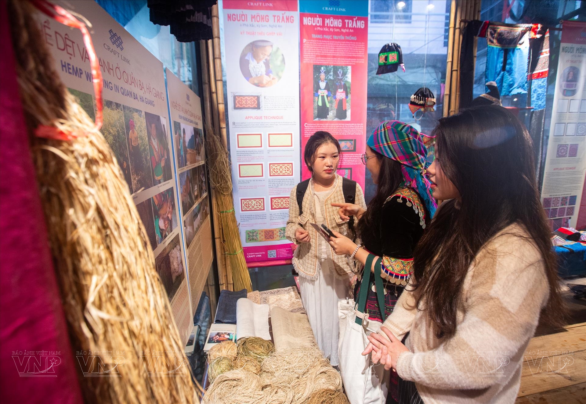 Tại “Ngày hội văn hóa Mông”, người tham quan có thể tìm thấy sự đặc sắc trong trang phục, hoa văn và nghề thủ công truyền thống của các nhóm người Mông. Ngoài ra, còn được trực tiếp xem toàn bộ quy trình làm vải lanh từ trồng lanh, nối sợi, dệt vải đến vẽ sáp ong, nhuộm chàm, thêu đắp vải các họa tiết Mông độc đáo.