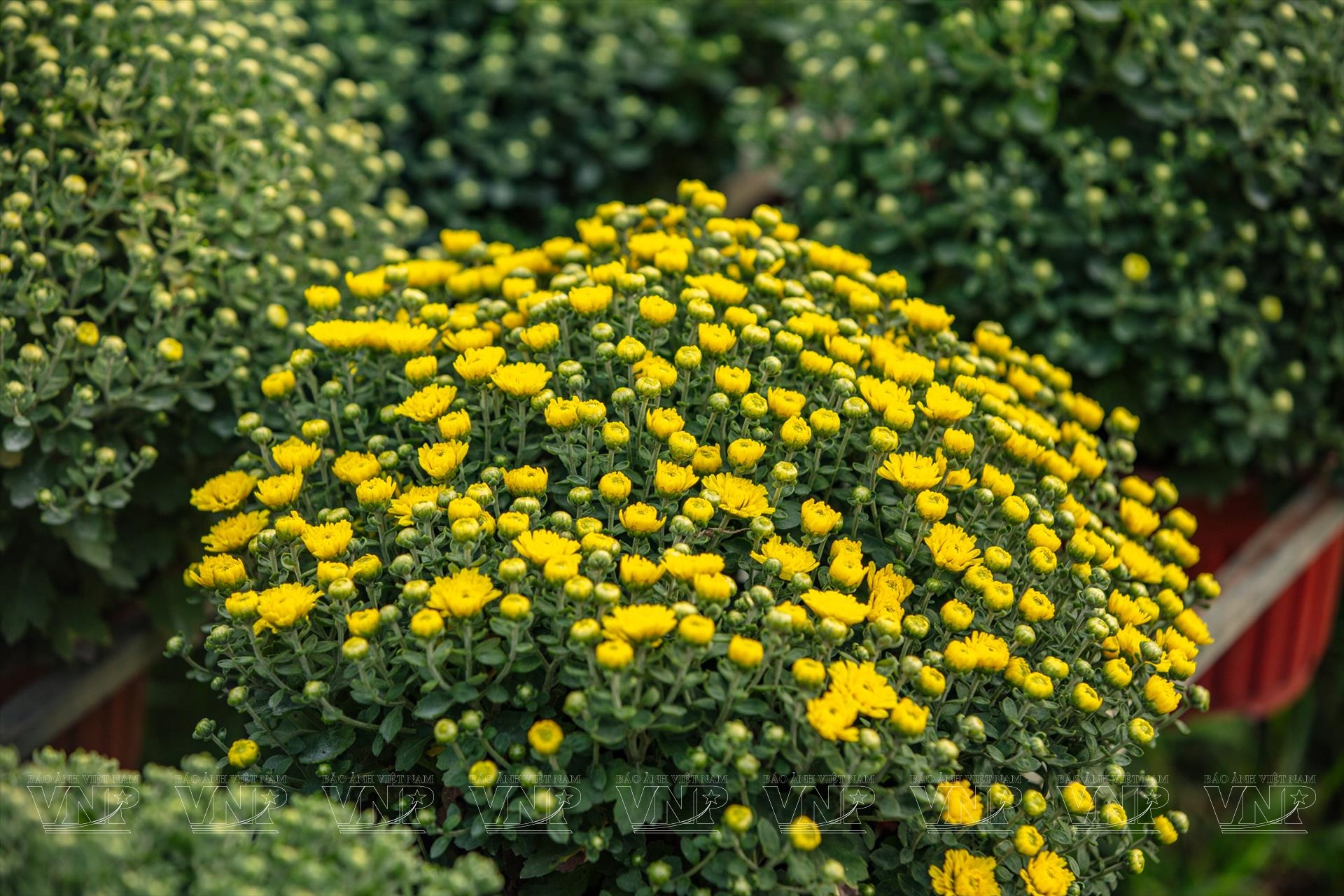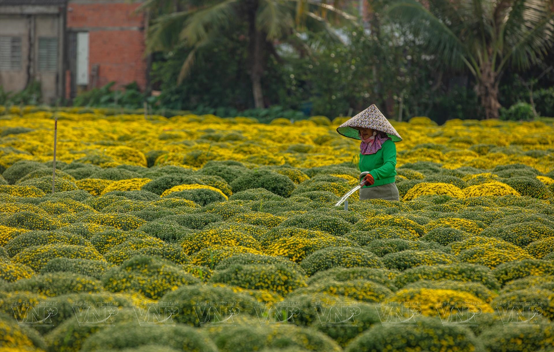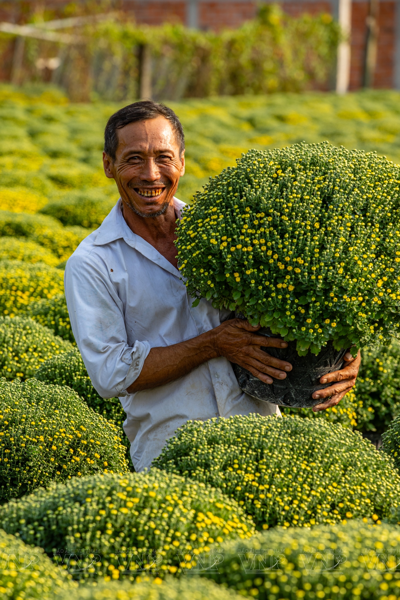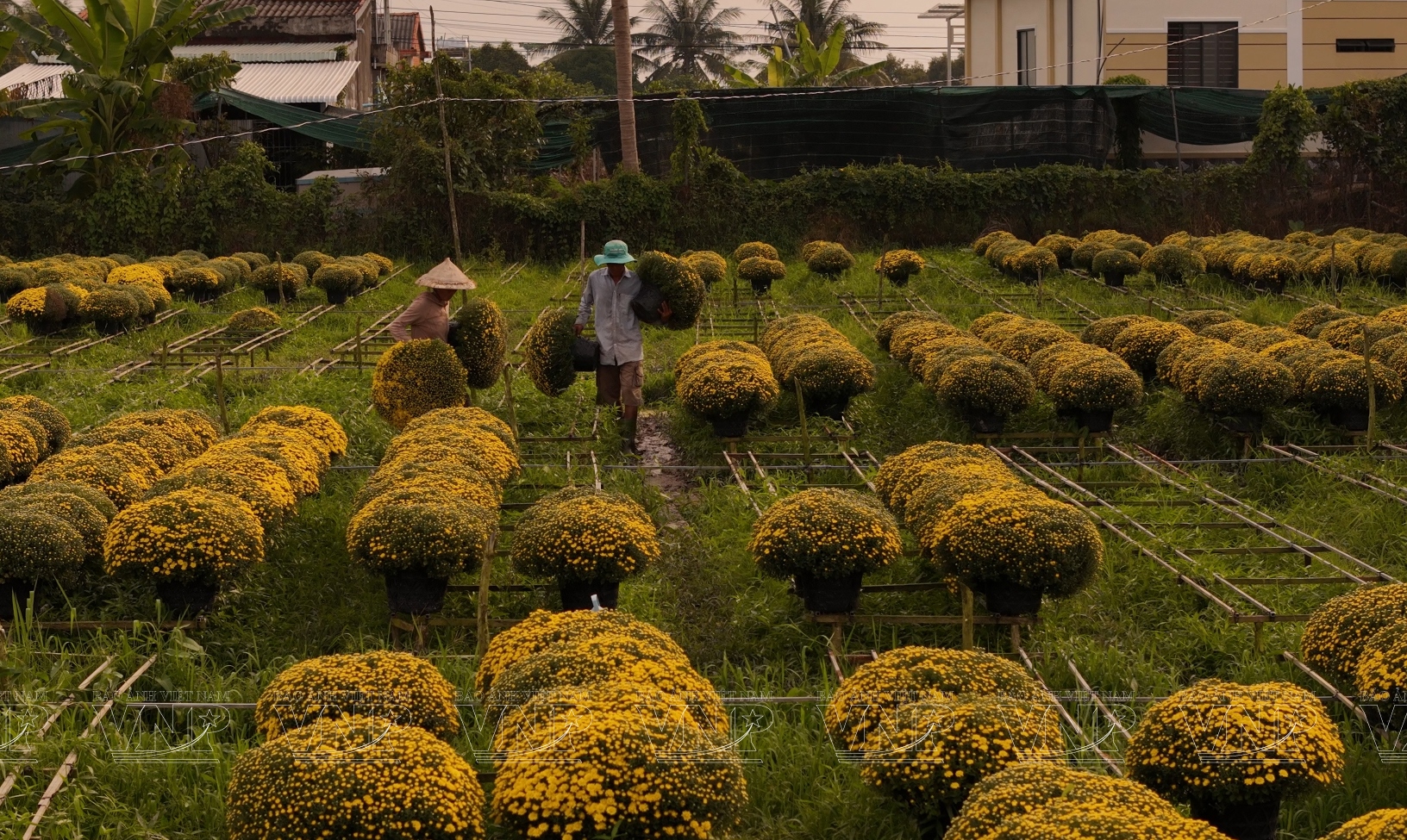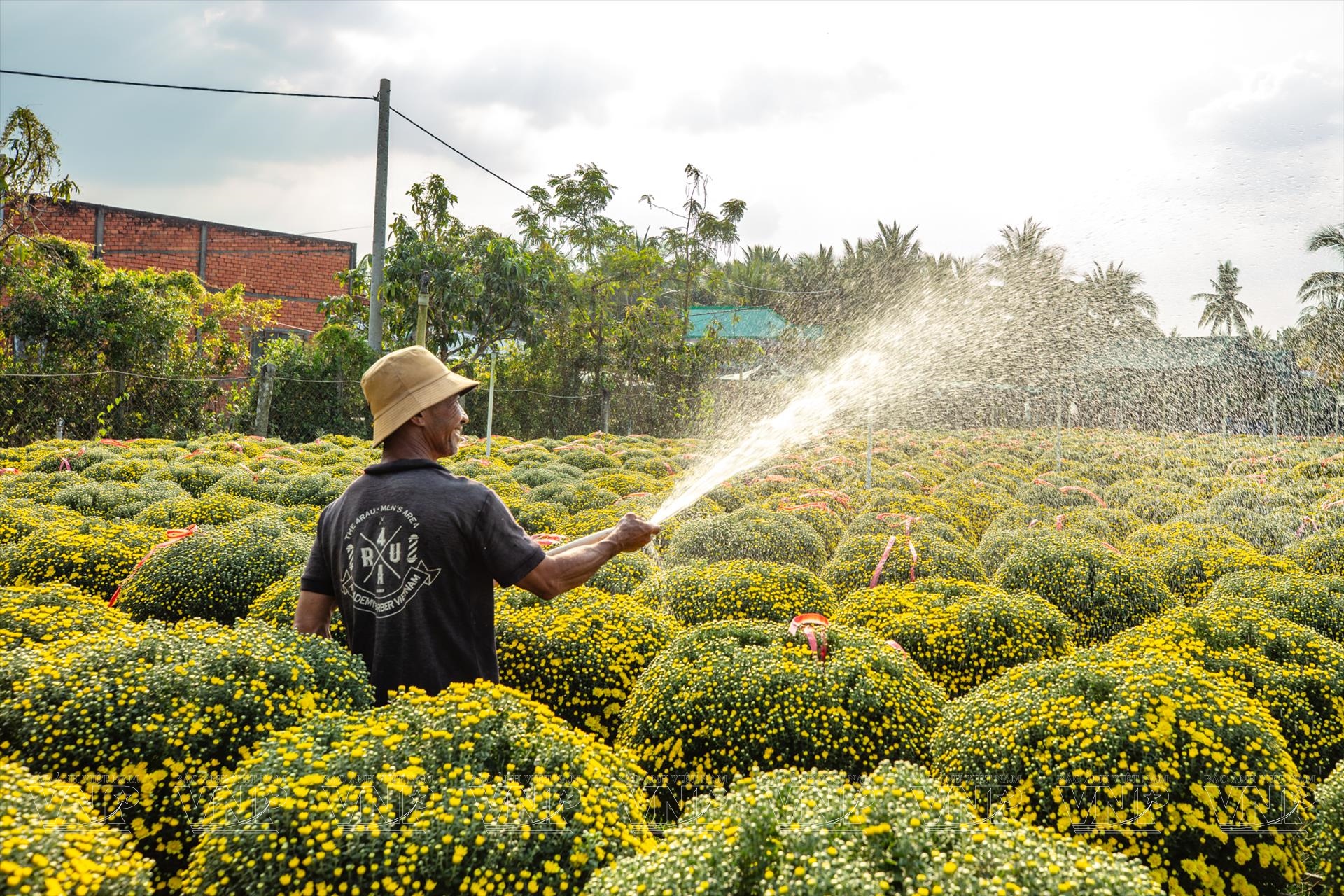 Cách đó không xa, vườn cúc mâm xôi của ông Trần Văn Minh với hơn 1.000 chậu hoa đang vào giai đoạn chuẩn bị ra nụ. Vừa tưới nước, vừa tỉ mỉ cắt tỉa, ông Minh cho biết vụ hoa Tết kéo dài khoảng sáu tháng, bắt đầu từ giữa năm. “Người trồng hoa dồn hết công sức cho vụ Tết, mong trúng mùa, trúng giá để có cái Tết đủ đầy”, ông nói.