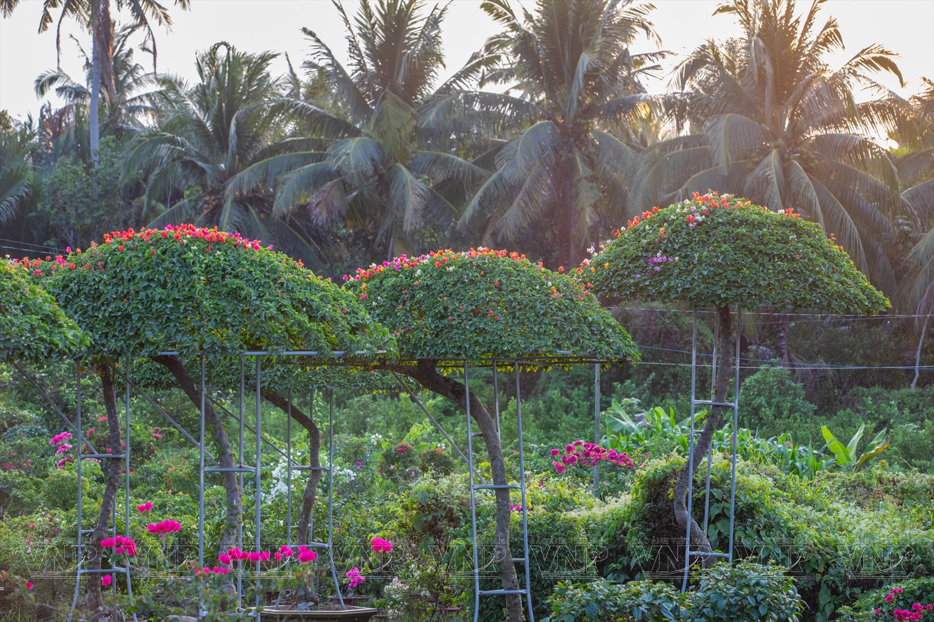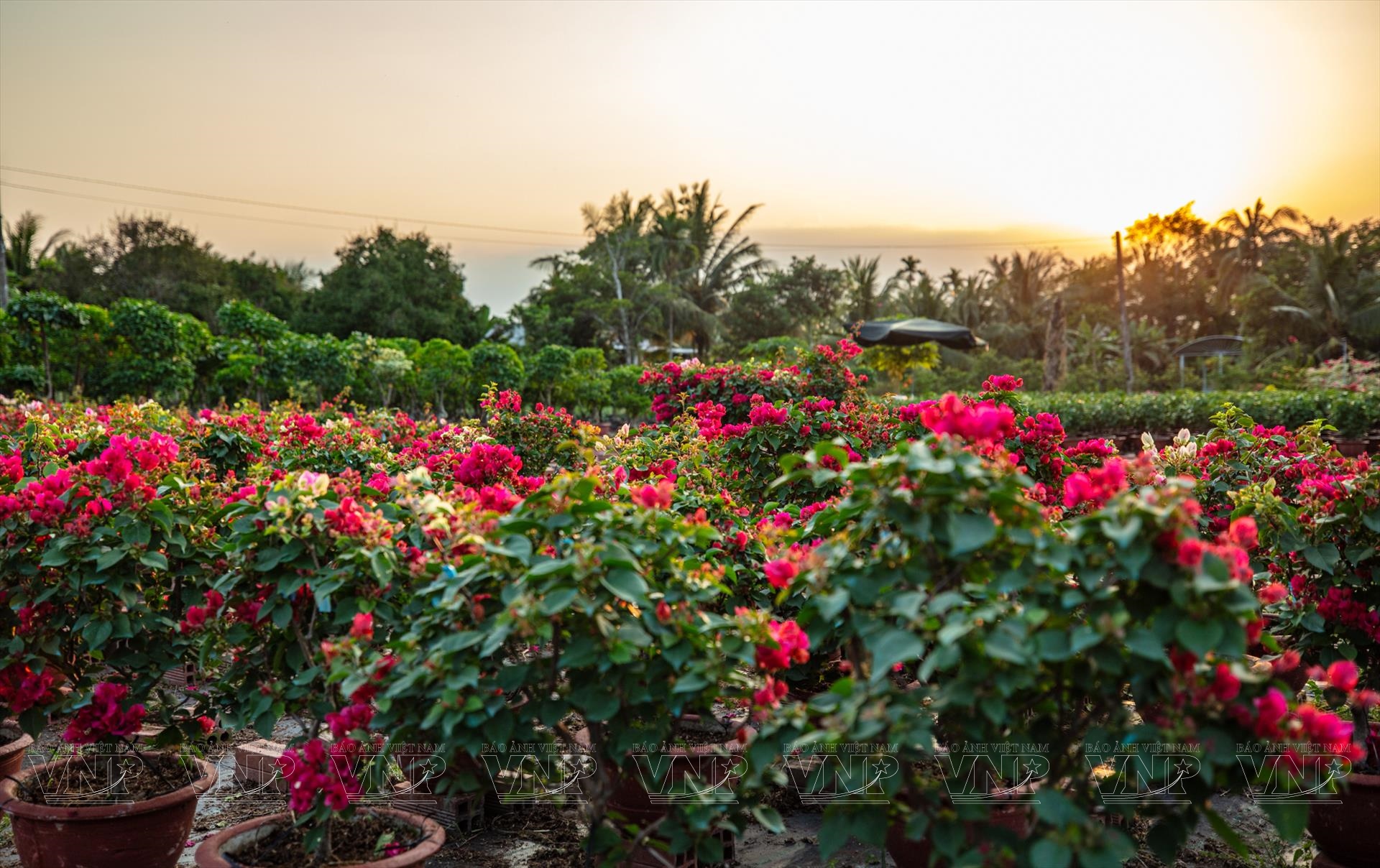 Nghề trồng hoa, cây giống và bonsai không chỉ mang lại thu nhập ổn định mà còn trở thành “hồn cốt” của vùng đất Chợ Lách. Dọc các tuyến đường lớn nhỏ dẫn vào làng hoa, đâu đâu cũng bắt gặp những vườn hoa khoe sắc. Nổi bật là sắc vàng óng ả của hàng chục nghìn chậu cúc mâm xôi - loài hoa chủ lực của làng nghề, xen lẫn sắc hồng dịu của hoa giấy, sắc đỏ thắm của sứ kiểng với nhiều dáng thế độc đáo. Người làm vườn tỉ mẩn tưới nước, cắt nhánh, tỉa cảnh, nâng niu từng chậu hoa, chăm chút cho từng công đoạn cuối cùng trước khi xuất vườn.