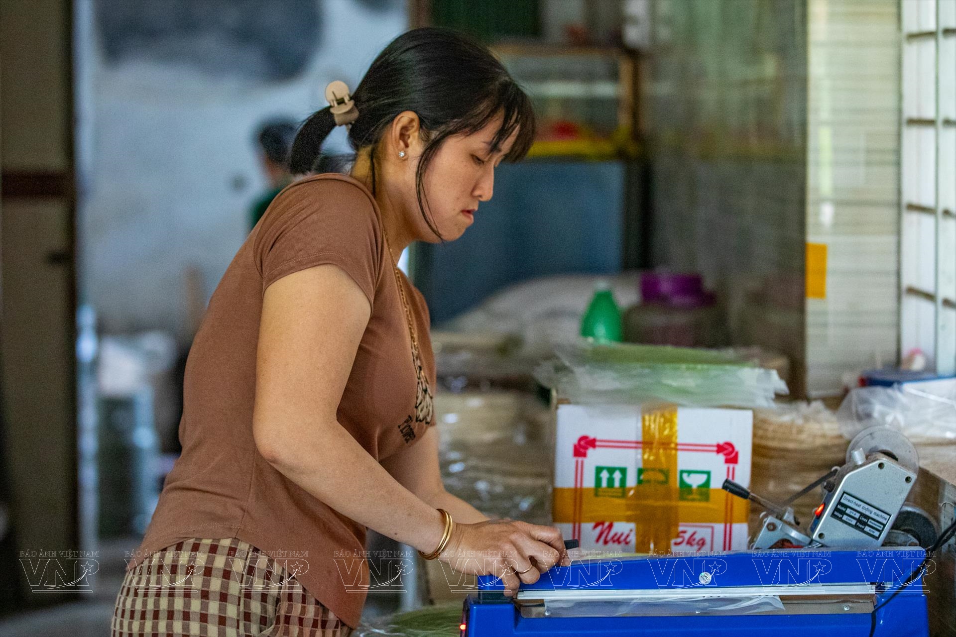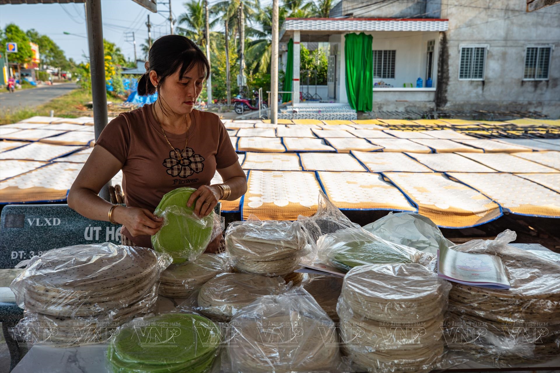 Chị Nguyễn Thị Bảo Châu, con gái ông Hai Sậm và là thế hệ thứ ba nối nghề, cho biết yếu tố thời tiết có vai trò quyết định đến chất lượng bánh. “Bánh phồng được phơi nắng tự nhiên nên nếu nắng tốt, bánh khô nhanh, đều và thơm hơn. Vì vậy, ngoài sân phơi, gia đình còn tận dụng cả mái nhà để đón nắng”, chị chia sẻ.