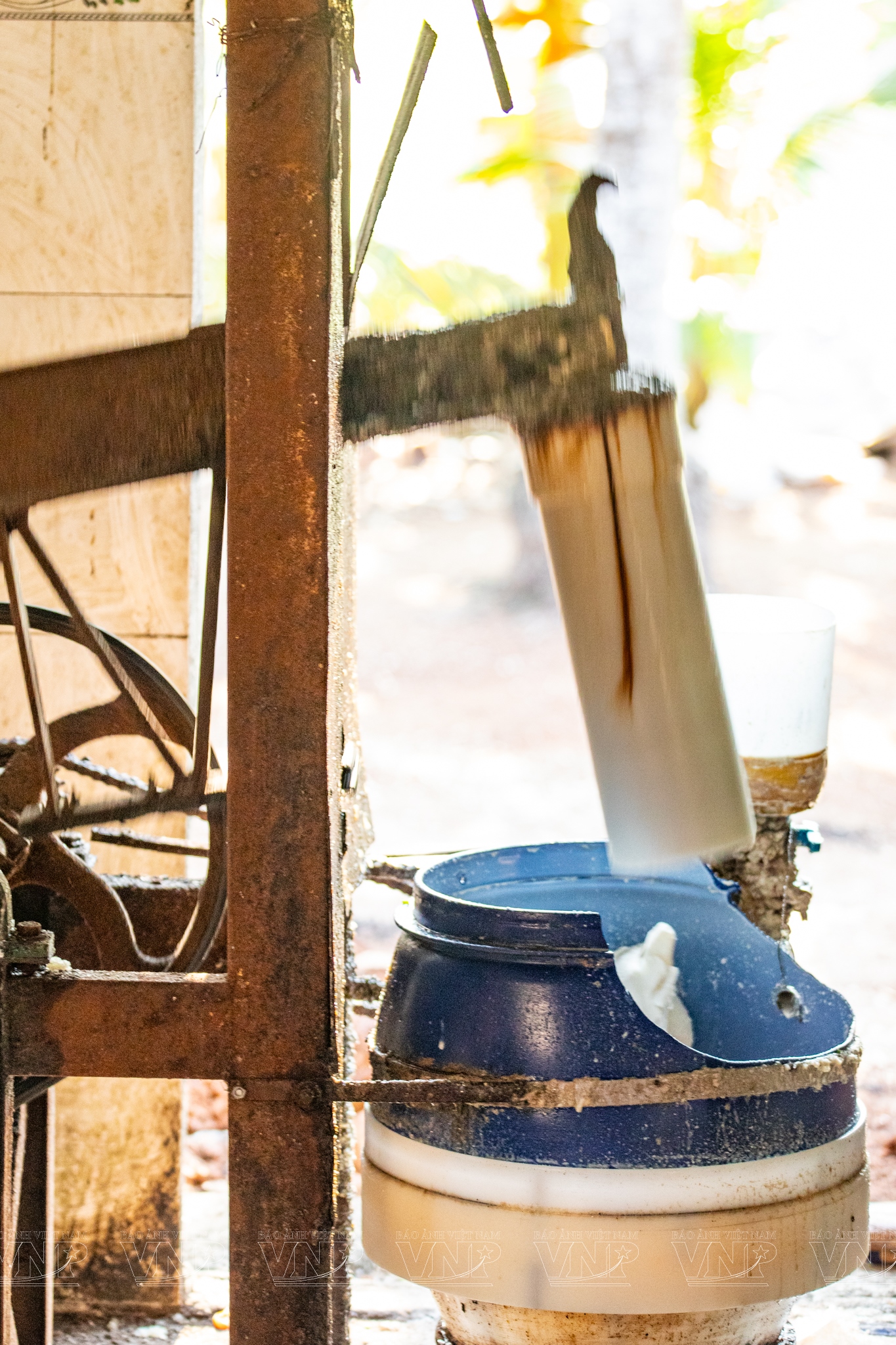 Ông Hai Sậm - chủ cơ sở, là người đảm nhiệm công đoạn quan trọng nhất của nghề: quết bột nếp. Đây là khâu đòi hỏi nhiều kinh nghiệm để khối bột đạt độ dẻo, mịn vừa phải, không quá khô hay quá ướt. Bí quyết của cơ sở là sử dụng nguồn nếp non từ tỉnh An Giang, ngâm đủ 12 tiếng để hạt nếp nở đều, sau đó đồ thành xôi, quết nhuyễn, trộn thêm nước cốt dừa và gia vị rồi cán bánh theo khuôn định sẵn. Bánh được cắt khuôn, đặt lên chiếu và phơi hoàn toàn dưới nắng tự nhiên cho đến khi khô đều.