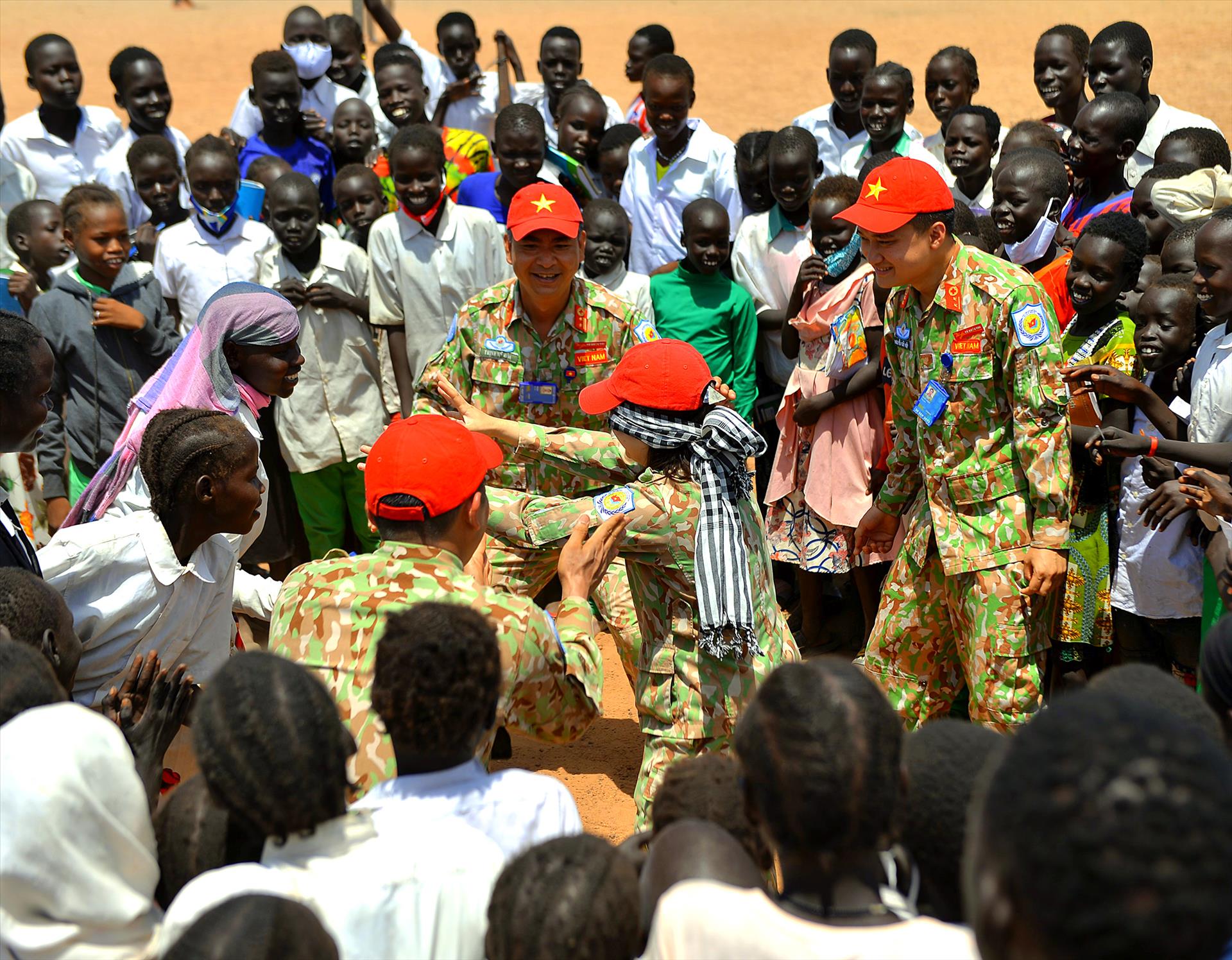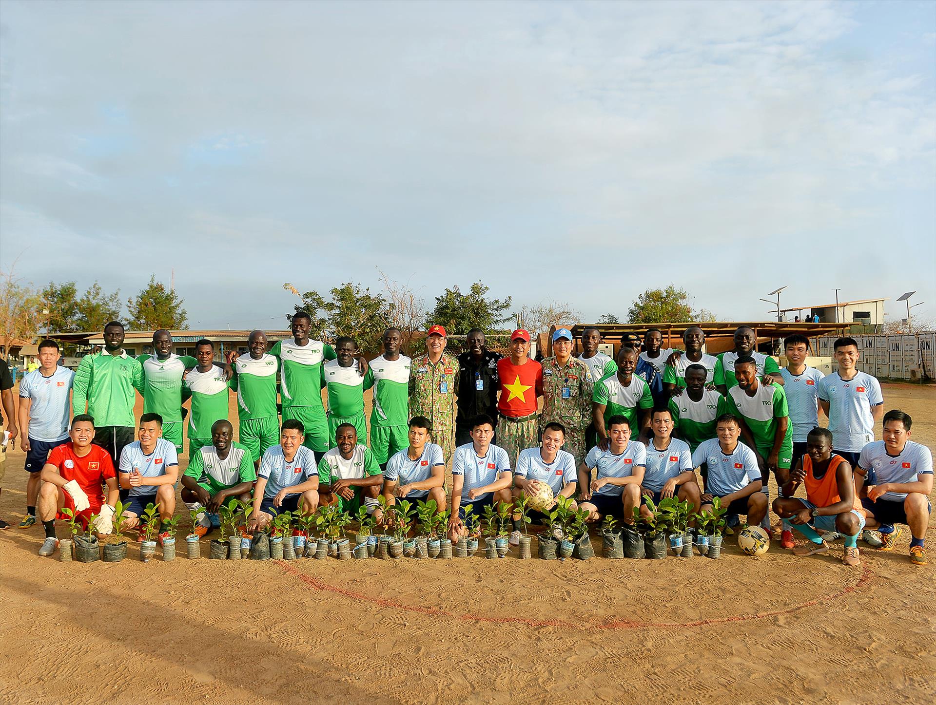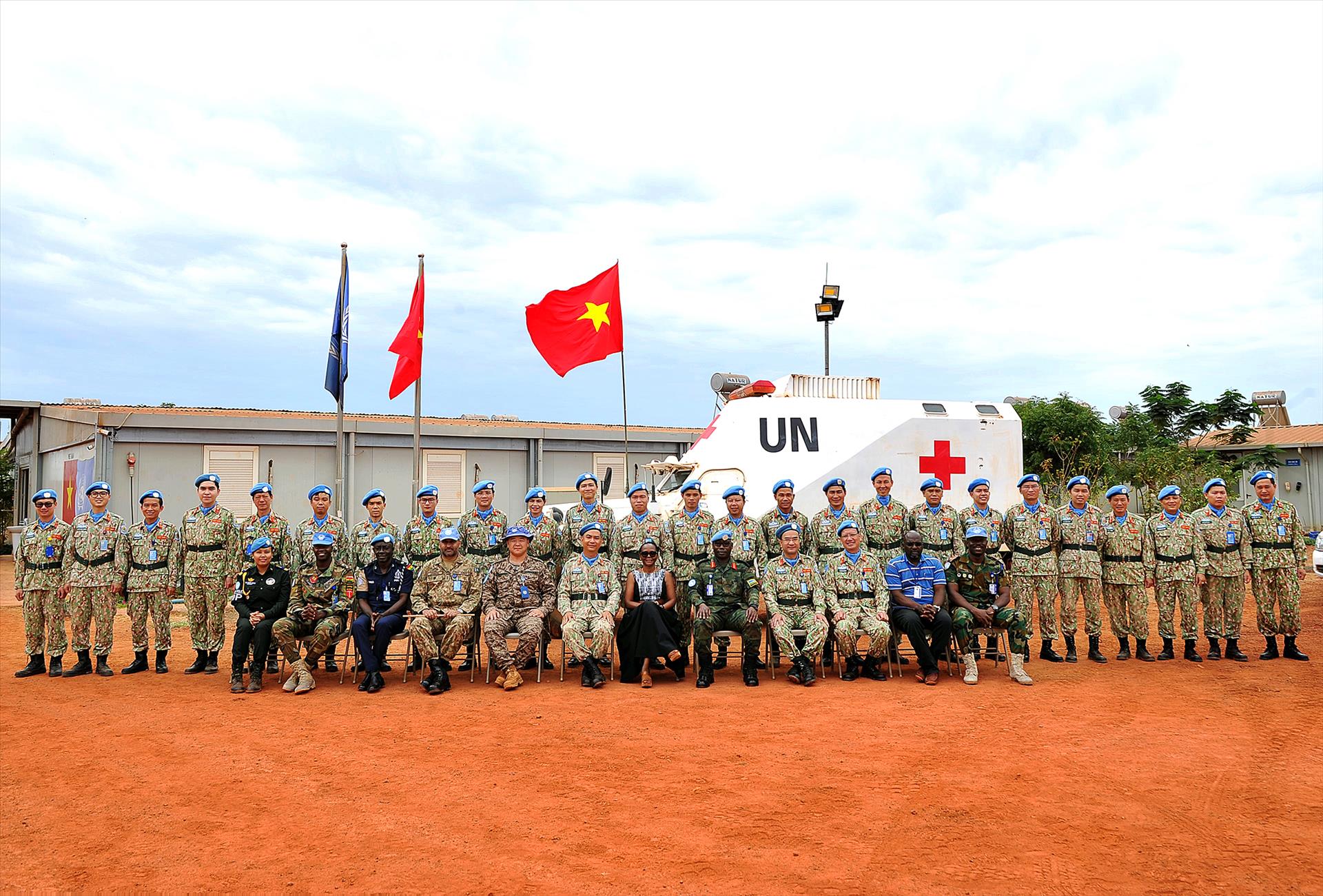 Khu vực Bentiu của Nam Sudan có màu của đất. Đó là màu đỏ. Đất đỏ. Mùa khô, bụi đỏ phủ mù mịt lên những con đường đất, lên những container kim loại, lên cả những thân xe quân sự chạy chậm qua khu căn cứ dã chiến. Nhưng trên vùng đất đỏ ấy, bầu trời vẫn xanh, và có những con người đội chiếc mũ nồi xanh đến từ Việt Nam...