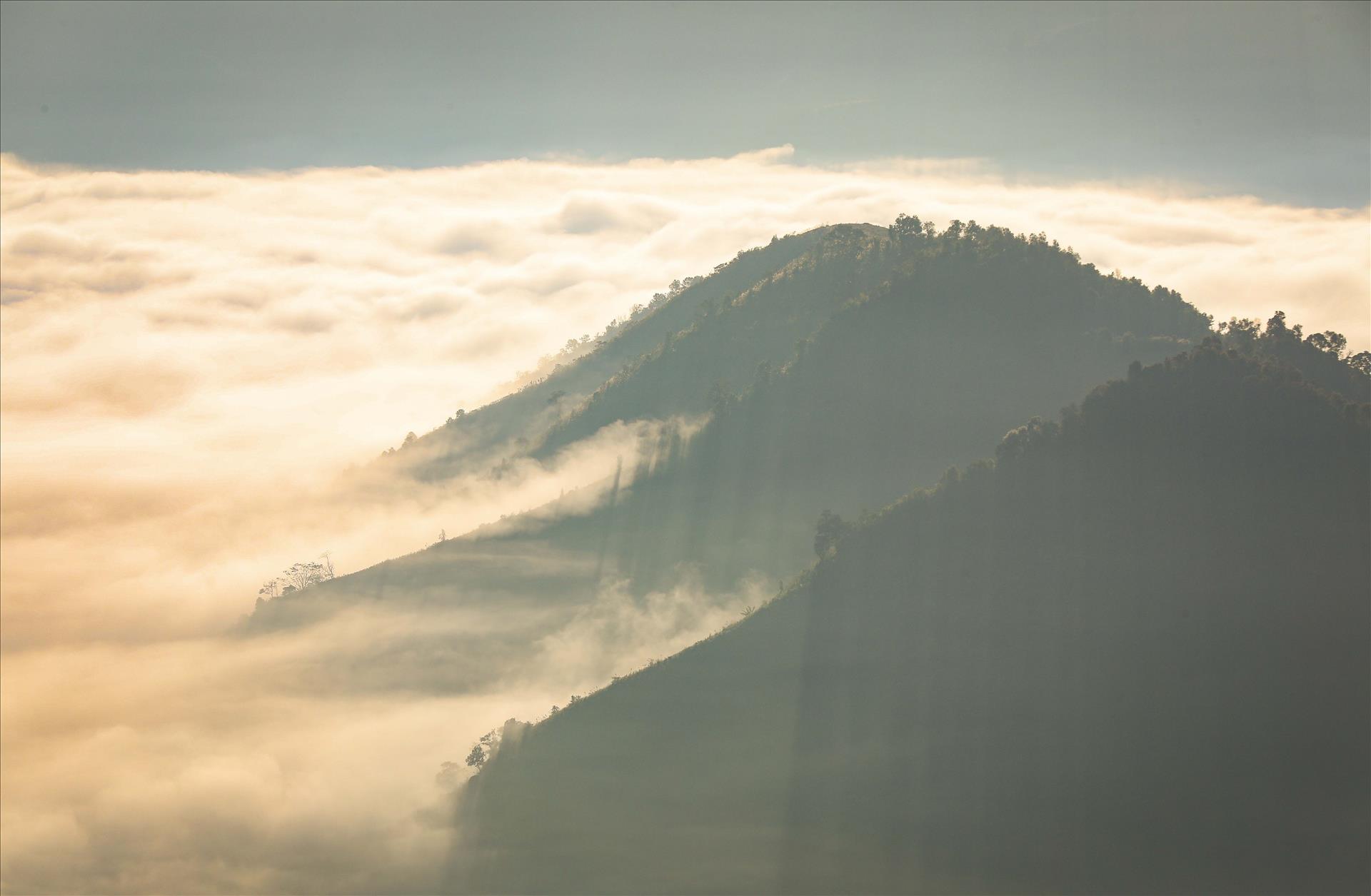Mỗi sáng sớm, đèo Keo Lôm thuộc xã Na Son (tỉnh Điện Biên) lại bừng tỉnh giữa biển mây trắng xóa dưới thung lũng. Trong ánh bình minh vàng óng, những dãy núi nối tiếp nhau hiện lên mờ ảo, tạo nên bức tranh thiên nhiên vừa hùng vĩ vừa thơ mộng. Vẻ đẹp nguyên sơ ấy khiến Keo Lôm trở thành điểm đến hấp dẫn với du khách và những người yêu cảnh quan núi rừng Tây Bắc.