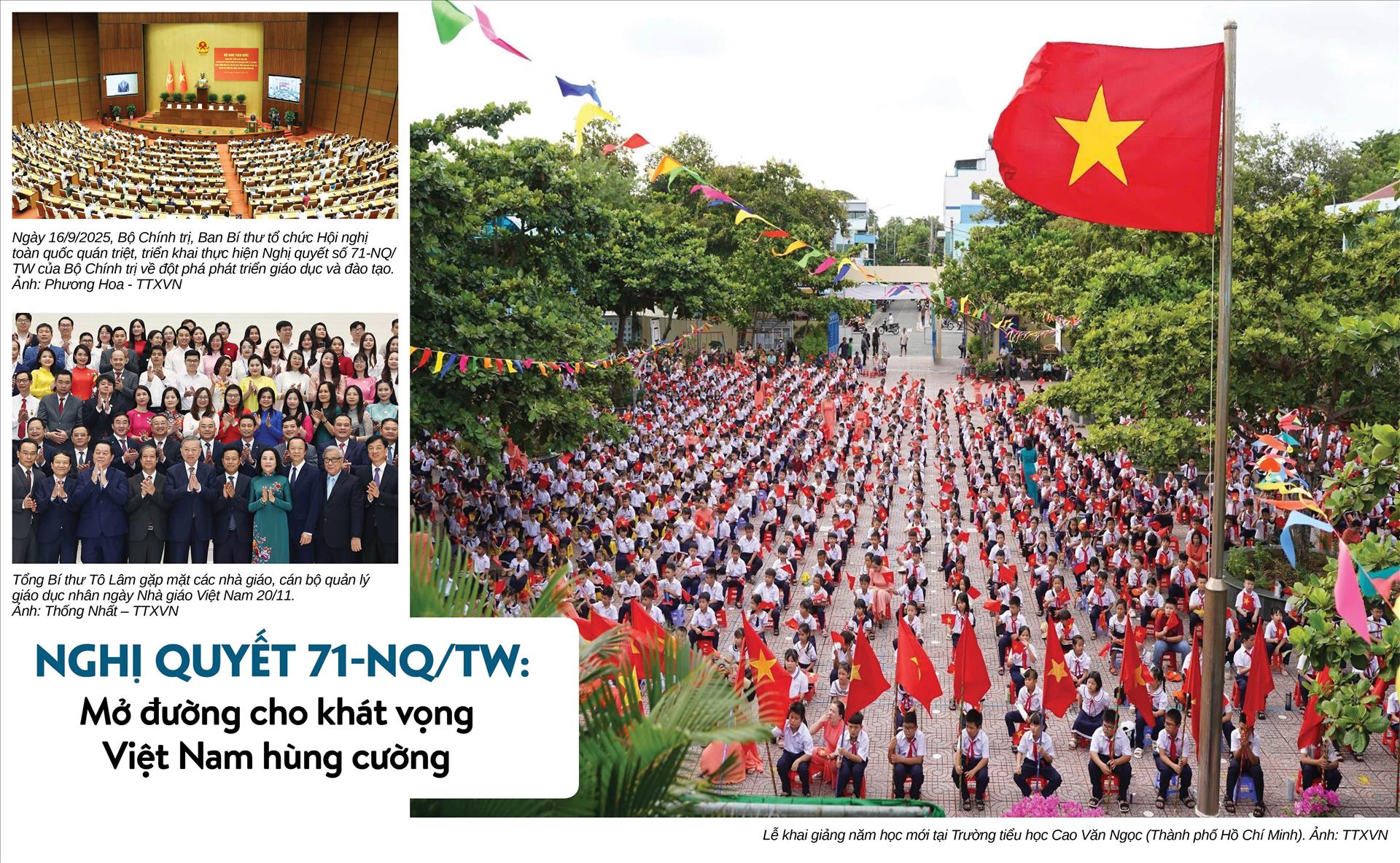 Với tầm nhìn chiến lược, định hướng rõ ràng và cam kết mạnh mẽ về nguồn lực, Nghị quyết 71-NQ/TW không chỉ là bước ngoặt lớn của ngành giáo dục mà còn là bản lộ trình cho khát vọng Việt Nam hùng cường, nơi mỗi người dân đều được học tập, phát triển toàn diện và đóng góp vào tương lai phồn vinh, trí tuệ của đất nước./.