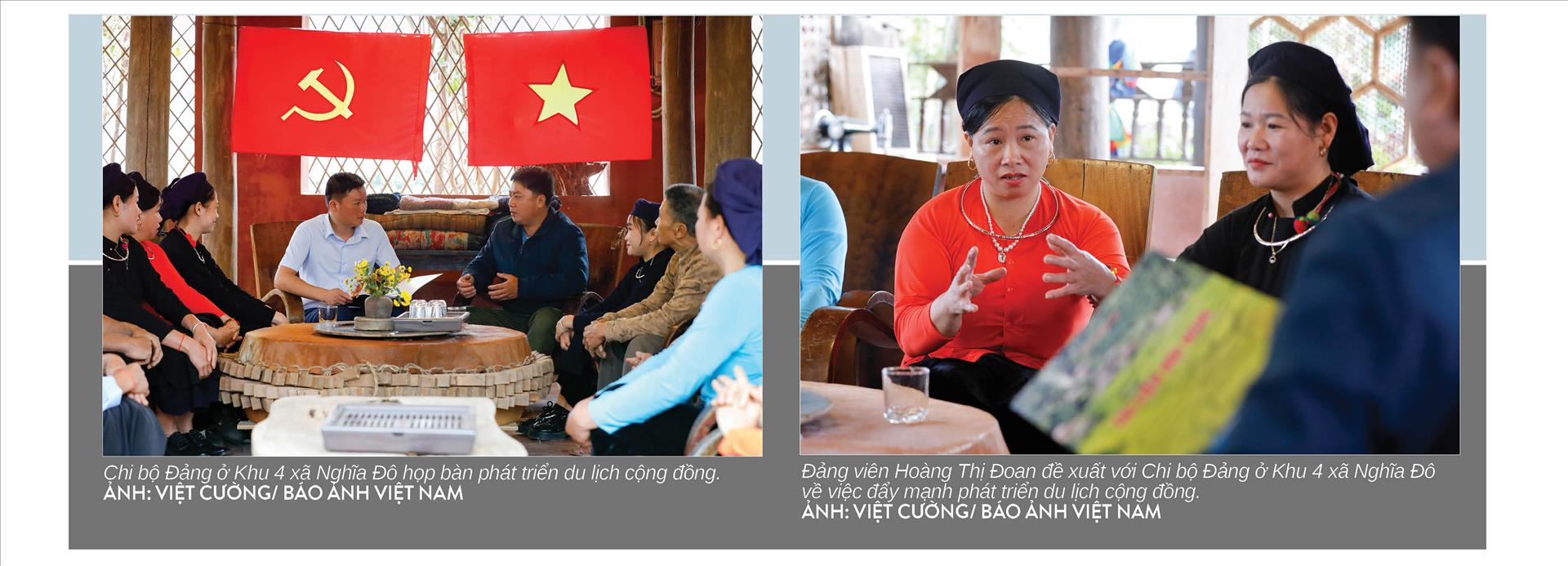 Tinh thần “Đảng viên đi trước, làng nước theo sau” còn thể hiện rõ trong sinh hoạt chi bộ. Chúng tôi được mời dự buổi sinh hoạt của Chi bộ thôn Bản Liền tại Trung tâm Bảo tồn và Giao lưu văn hóa dân tộc Tày xã Nghĩa Đô, một thiết chế văn hóa ra đời từ việc triển khai Nghị quyết số 33-NQ/TW của Ban Chấp hành Trung ương Đảng khóa XI về "Xây dựng và phát triển văn hóa, con người Việt Nam đáp ứng yêu cầu phát triển bền vững đất nước”.