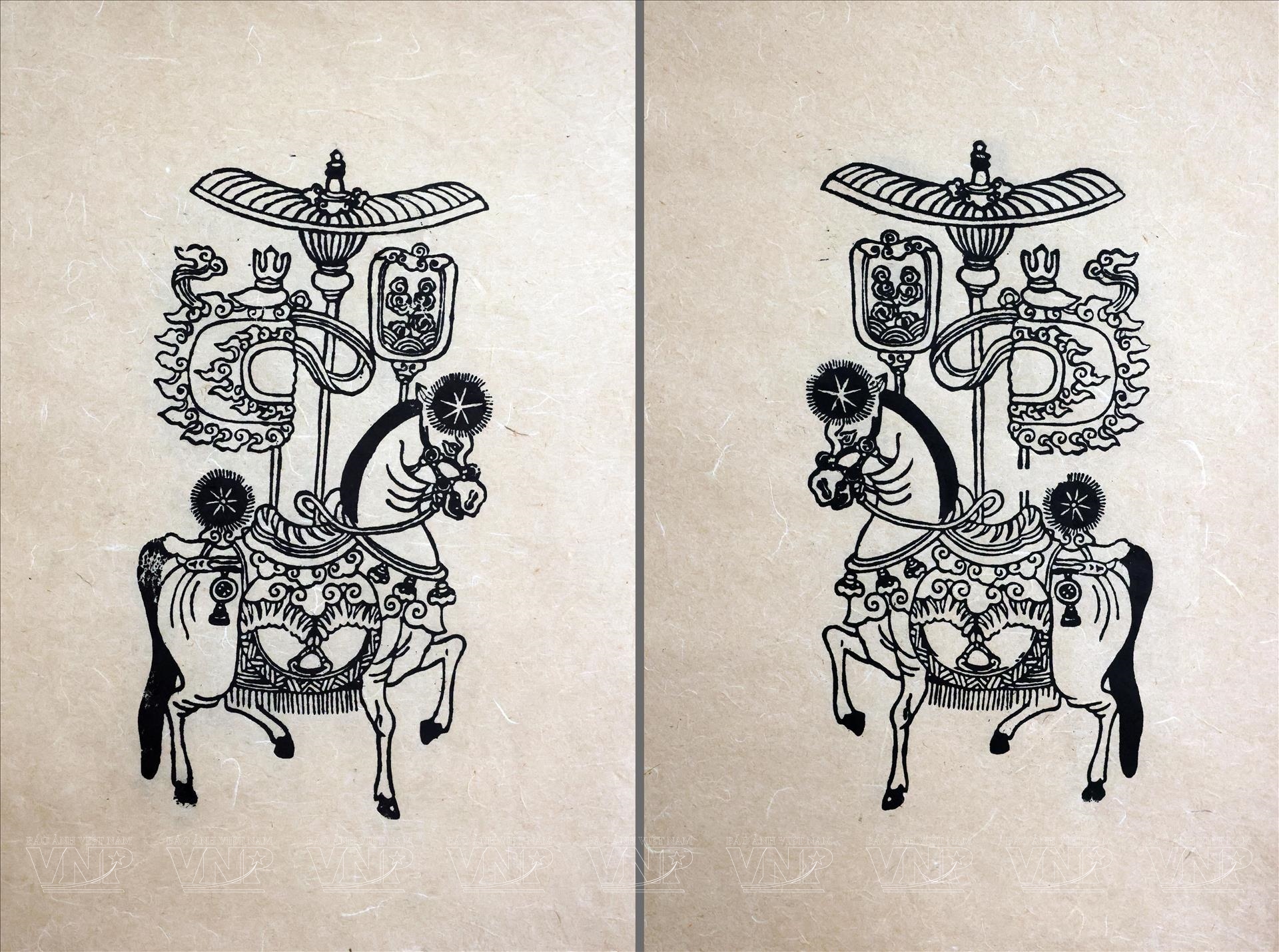 Công đoạn cuối cùng cũng là phần tạo nên sự đặc biệt của tác phẩm: đi lại nét vàng nhũ. Những đường viền ánh kim được kẻ lại tỉ mỉ, làm nổi bật các chi tiết chính như bờm ngựa, yên cương, hoa văn trang trí. Nhờ lớp vàng nhũ, bức tranh không chỉ đẹp ở hình mà còn “sáng” ở thần thái. Con ngựa trong tranh vì thế hiện lên vừa gần gũi dân gian, vừa rực rỡ như một biểu tượng của mùa xuân thịnh vượng.