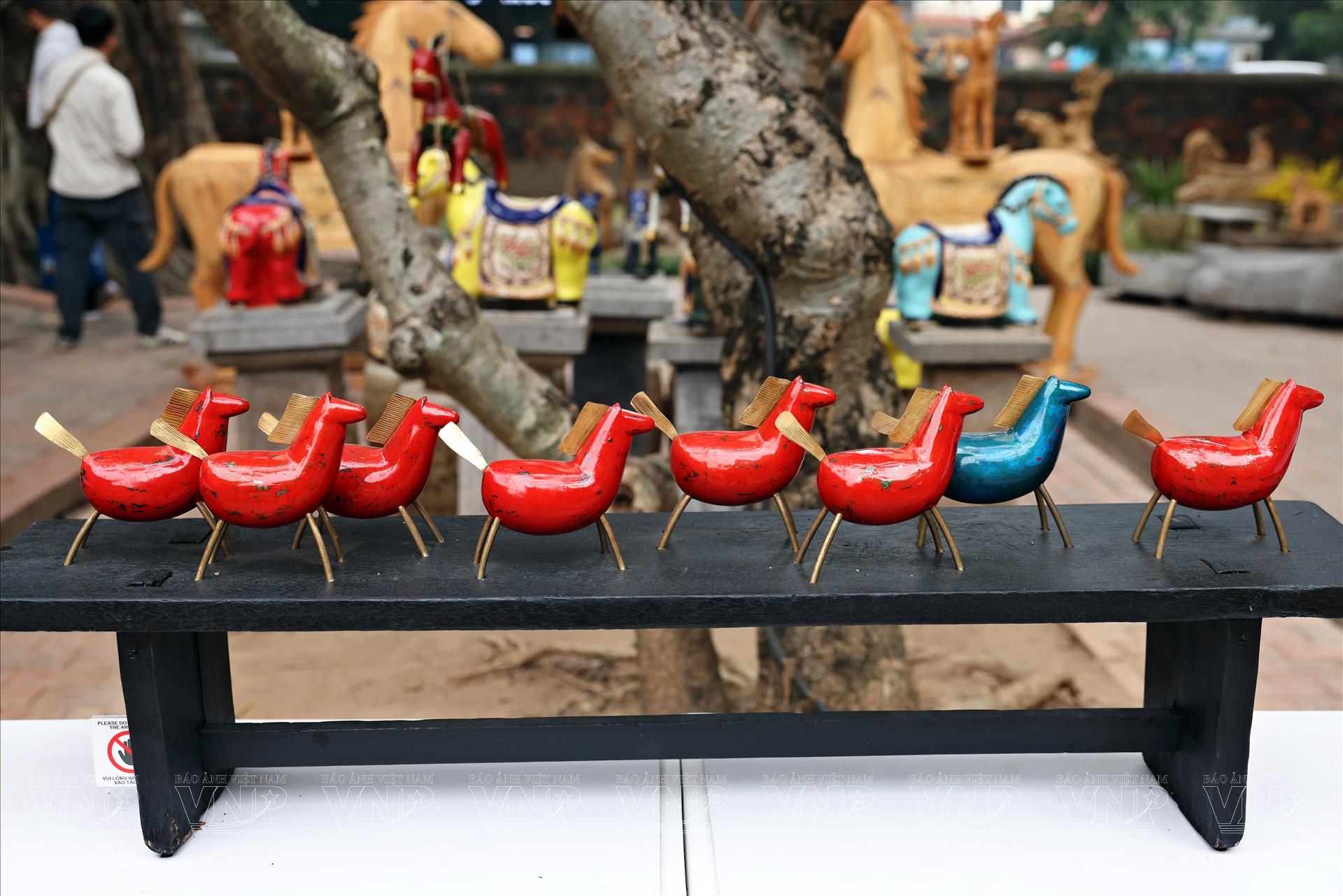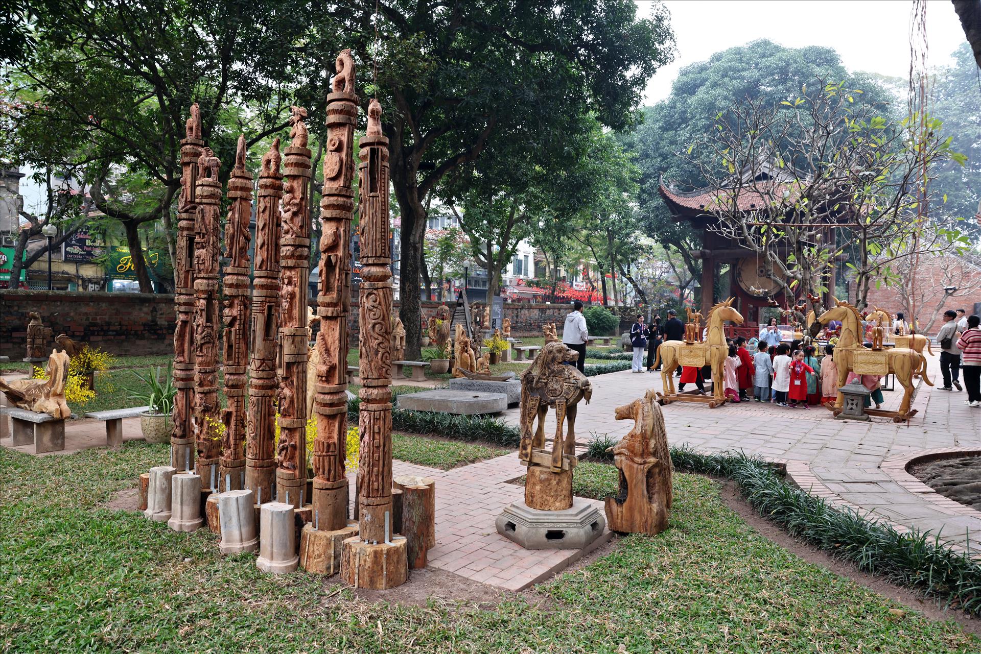 Không gian trưng bày tượng ngựa độc bản trong khuôn viên Văn Miếu – Quốc Tử Giám. Ảnh: Công Đạt/Báo ảnh Việt Nam