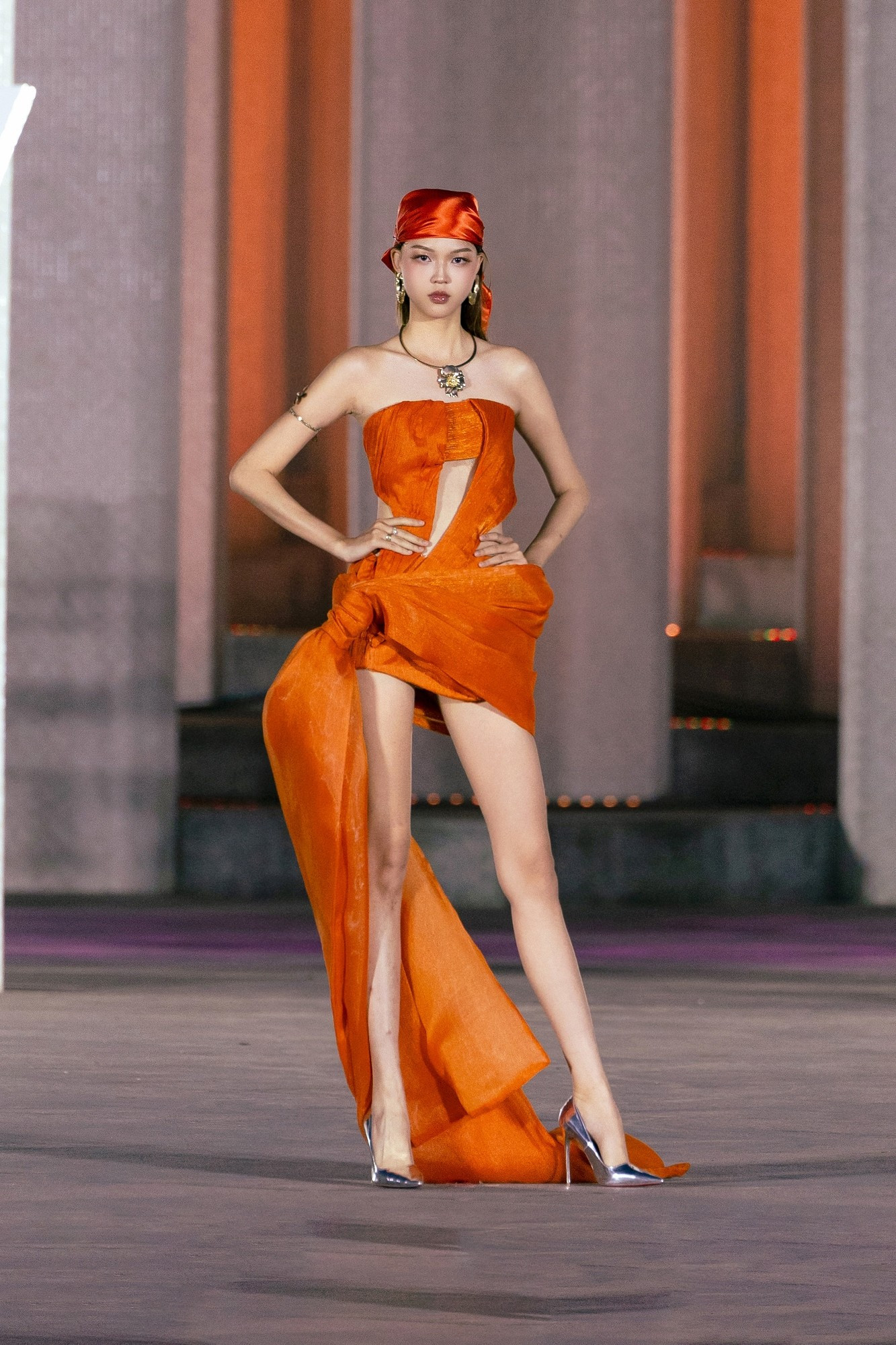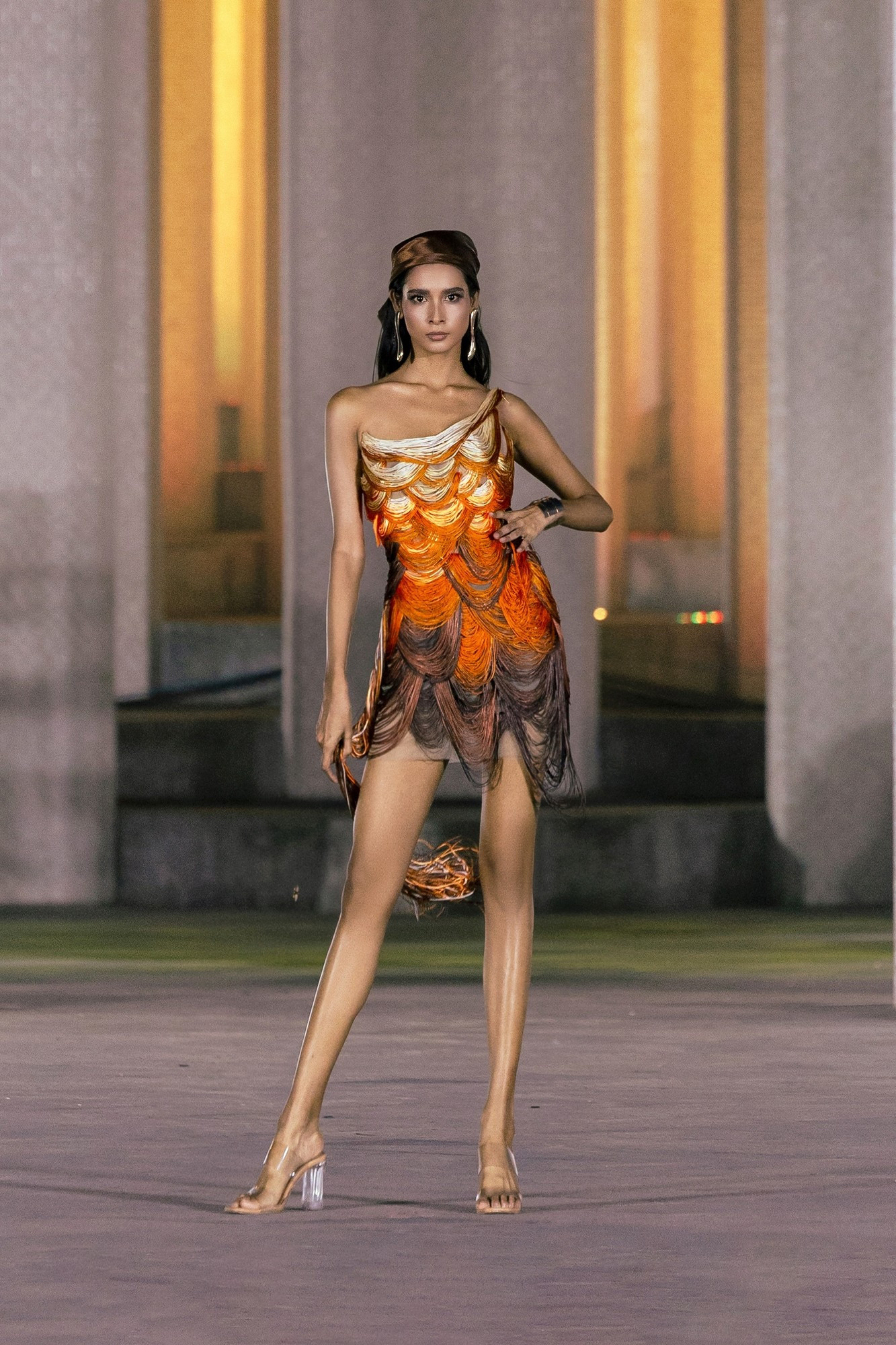 Nhà thiết kế Thanh Hương Bùi cho biết “Equinox” (Giao thời hoàng kim) tái hiện khoảnh khắc giao thời đầy quyền uy, mở ra một kỷ nguyên rực rỡ của sự thăng hoa. Chọn tông màu cam chủ đạo kết hợp cùng gam nâu và đỏ, mỗi thiết kế trong bộ sưu tập tượng trưng cho bản lĩnh, vẻ đẹp thanh lịch và tinh thần sẵn sàng bứt phá để tỏa sáng.