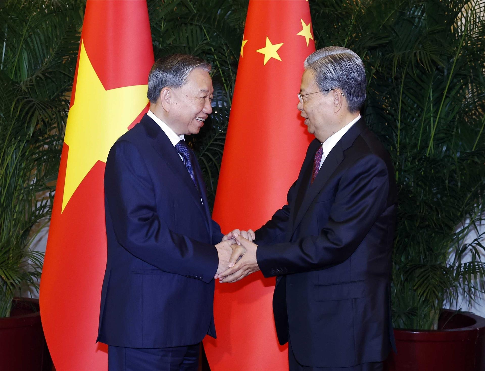 Trong bầu không khí thân tình, hữu nghị, thẳng thắn, thắm tình đồng chí, anh em, Tổng Bí thư, Chủ tịch nước Tô Lâm và các nhà Lãnh đạo Trung Quốc bày tỏ vui mừng trước những bước phát triển tốt đẹp của quan hệ hai Đảng, hai nước trong thời gian qua. Hai bên đã cùng nhau trao đổi sâu rộng, toàn diện về tình hình mỗi nước, quan hệ hai Đảng, hai nước và những vấn đề khu vực, quốc tế cùng quan tâm; cùng khẳng định hai Đảng, hai nước cần đoàn kết chặt chẽ, tăng cường tin cậy chiến lược, tiếp tục làm sâu sắc, nâng tầm hơn nữa quan hệ Việt Nam - Trung Quốc trong giai đoạn mới, đóng góp thiết thực cho hòa bình, hợp tác và phát triển của khu vực và trên thế giới.