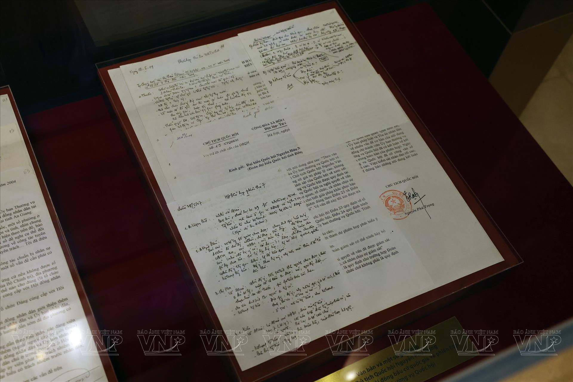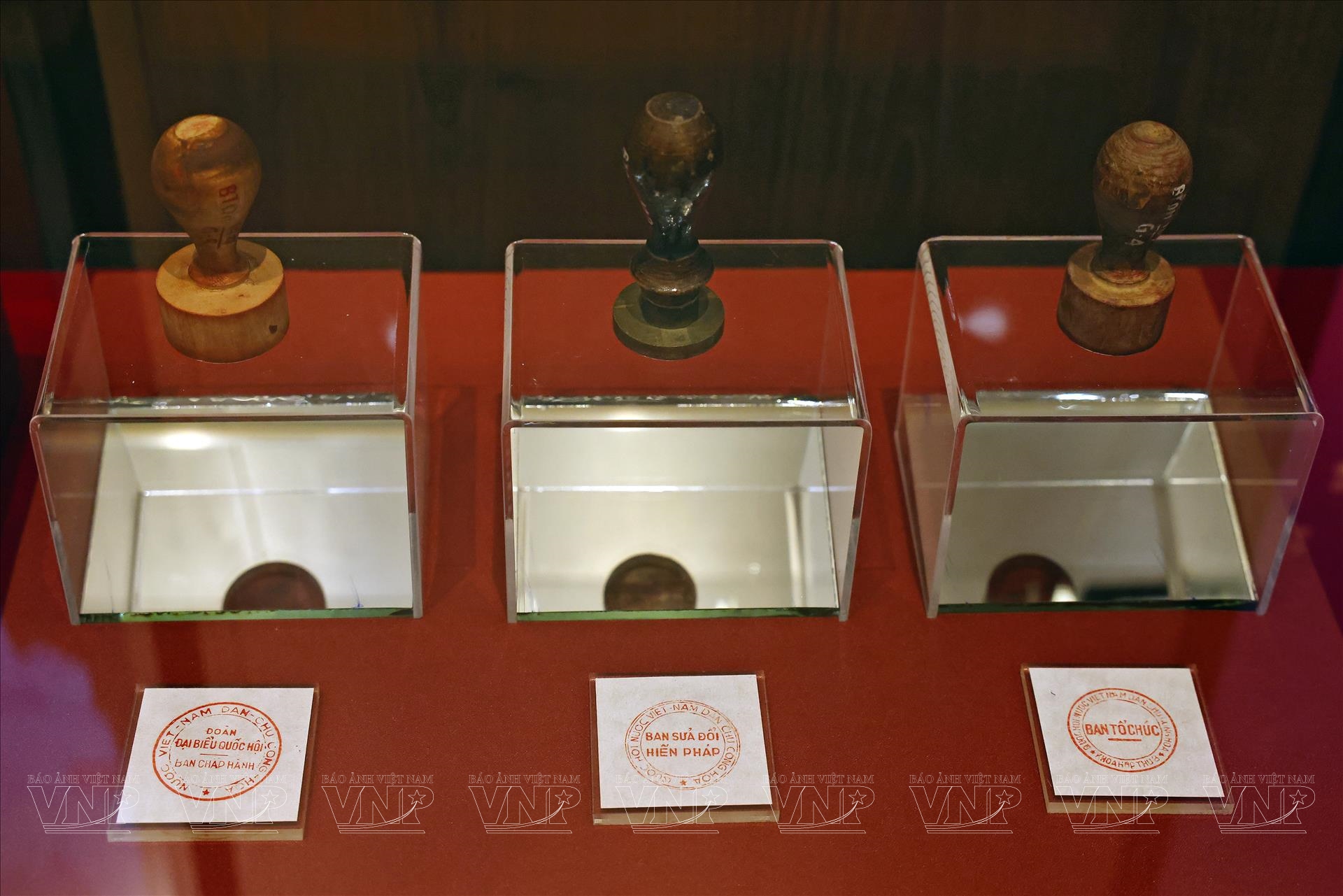 Cùng với đó, khu vực trưng bày các sắc lệnh của Chính phủ lâm thời nước Việt Nam Dân chủ Cộng hòa, các bản Hiến pháp năm 1946, 1980, 1992 và 2013, cùng nhiều con dấu của các cơ quan liên quan đến hoạt động lập hiến và bầu cử đã tái hiện quá trình hoàn thiện hệ thống pháp luật và tổ chức bộ máy nhà nước qua từng giai đoạn lịch sử. Những con dấu của Ban Sửa đổi Hiến pháp năm 1946, Ban Chấp hành Đoàn đại biểu Quốc hội hay Ban Tổ chức khóa họp thứ 8 của Quốc hội khóa I là các hiện vật mang giá trị pháp lý đặc biệt, minh chứng cho sự nghiêm cẩn trong hoạt động lập pháp của Quốc hội.