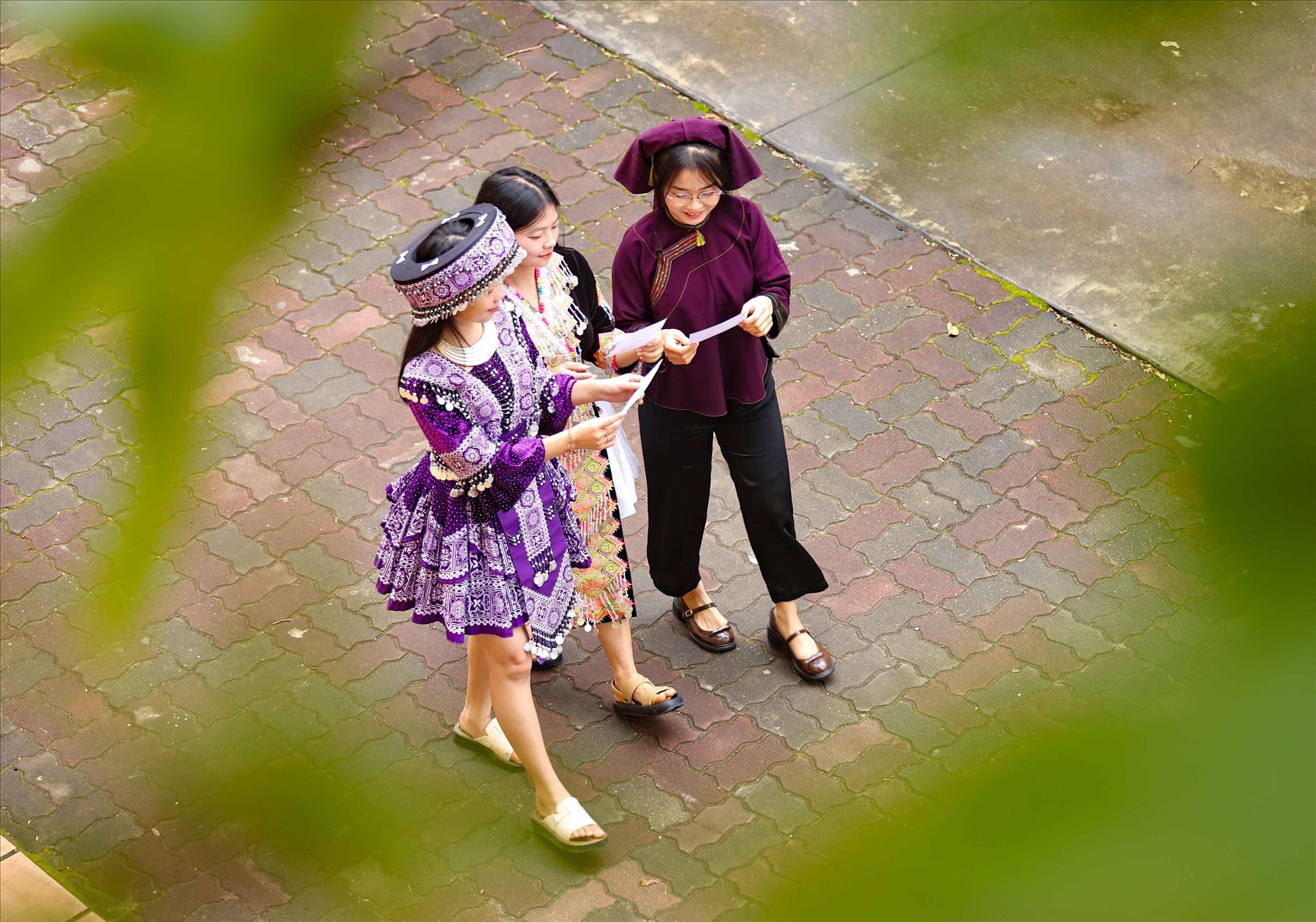 Trong không khí nô nức của Ngày hội toàn dân, tại khu vực bỏ phiếu số 01 (phường Cầu Giấy, Hà Nội), có những cử tri đặc biệt mang theo nét đẹp rạng rỡ của núi rừng về với Thủ đô. Đó là Giàng Thị Ngọc Ánh, Sùng Thị Thúy (dân tộc Mông, sinh viên K75, Khoa Giáo dục Mầm non) và Mạc Thị Dậu (dân tộc Nùng, sinh viên K73, Khoa Việt Nam học) của Trường Đại học Sư phạm Hà Nội.