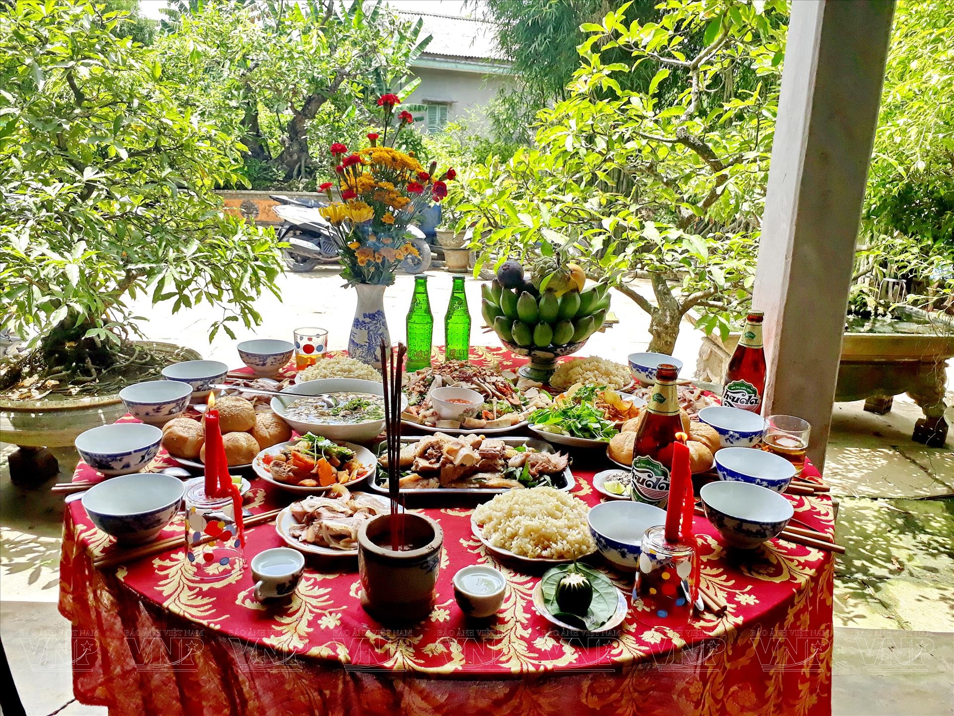Cái sự cúng kiếng ba ngày Tết của người Huế cũng thực sự cầu kì. Không nói đâu xa, ngay như nhà tôi, tuy đã giản lược đi nhiều nhưng trong ba ngày Tết, từ mùng một đến mùng ba, ngày nào cũng ba bữa cúng. Lễ không cần nhiều, có gì cúng nấy, sáng cúng, trưa cúng, chiều cúng. Mỗi lần cúng cha tôi lại cẩn thận khăn đóng áo dài, rửa tay, súc miệng, kính cẩn dâng hương, rót rượu, rót trà. Mỗi lúc như thế ông thường bắt anh em chúng tôi đứng cạnh để nghe ông hướng dẫn, giảng giải. Nghe riết rồi cũng quen, cũng biết thêm đôi chút về tục cúng lễ của các cụ xưa.