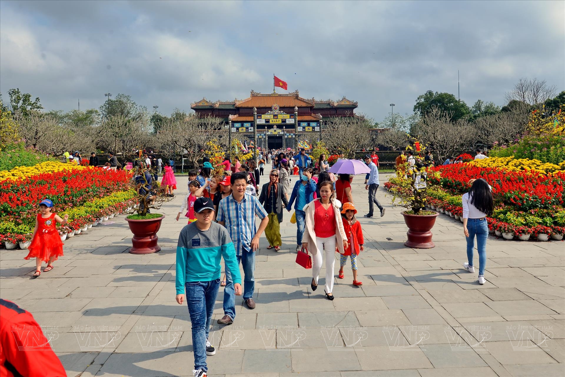 Cũng giống như các địa phương khác, từ ngày 23 tháng Chạp trở đi, không khí đón Tết Nguyên đán ở Huế cũng bắt đầu chộn rộn. Các chợ hoa Tết trước Phu Văn Lâu, Thương Bạc, Nhà văn hóa Trung tâm bắt đầu rực rỡ sắc mai vàng, thược dược, vạn thọ, cúc đại đóa… Những năm gần đây lại có thêm cả sắc đào hồng phương Bắc nên không khí Tết cũng hồng nhuận hơn.