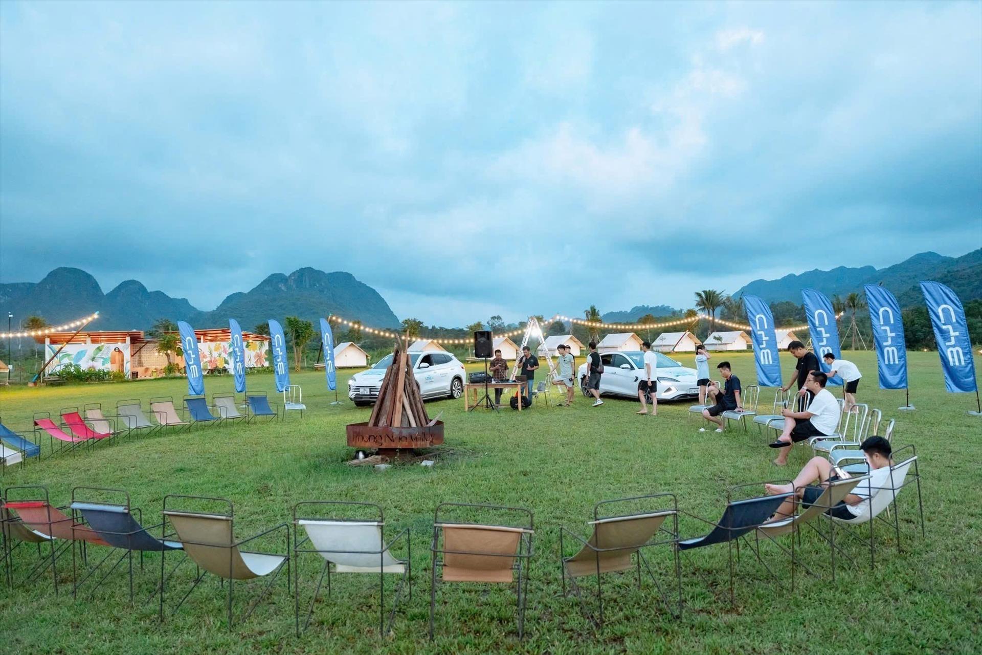 Mô hình cắm trại kết hợp giải trí, trải nghiệm tại điểm đến Phong Nha Valley (xã Phong Nha, Quảng Trị) thực sự lôi cuốn du khách. Ảnh: TTXVN phát