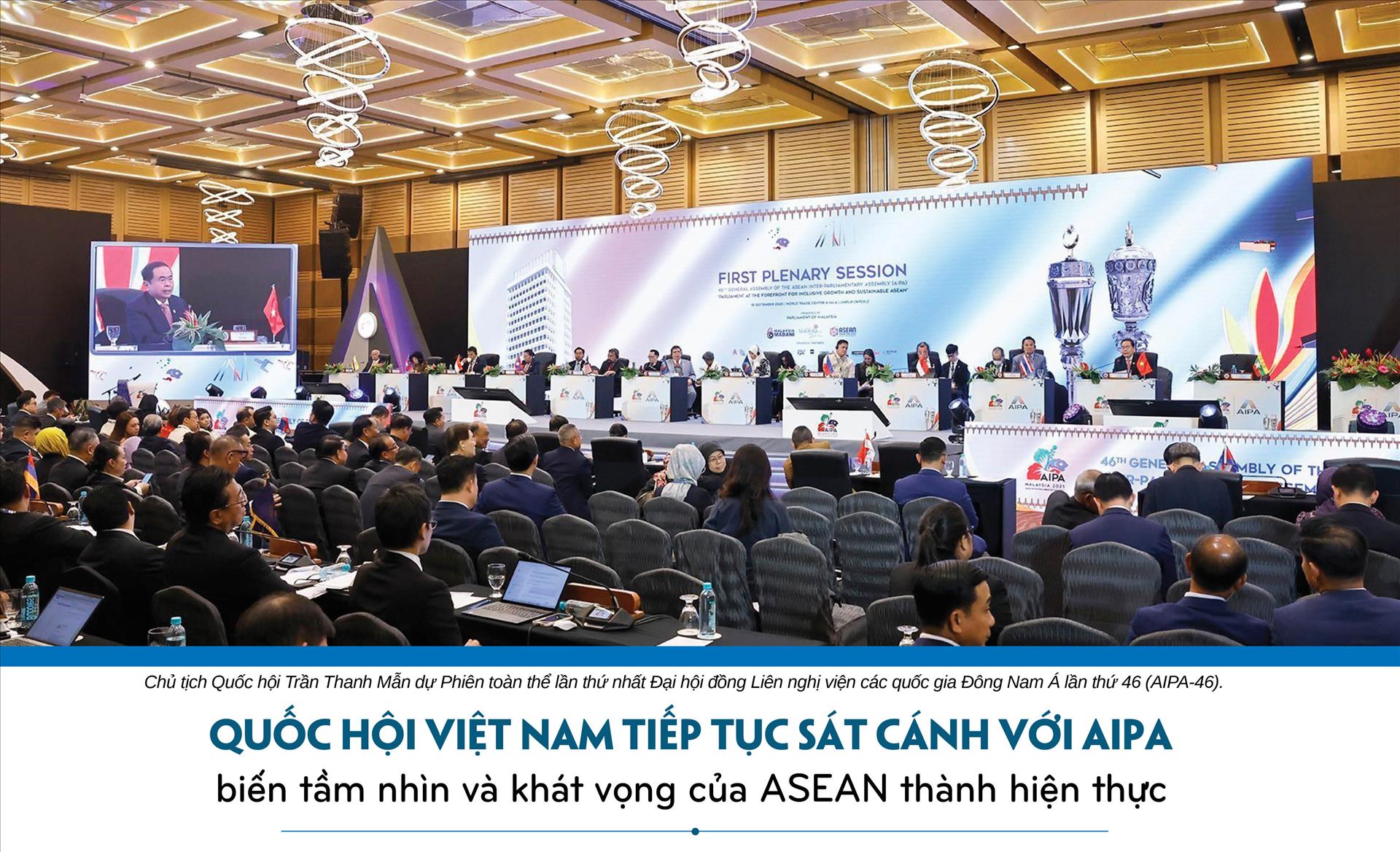 Ngày 18/9/2025, tại Thủ đô Kuala Lumpur, Malaysia, trong khuôn khổ Đại hội đồng Liên nghị viện các quốc gia Đông Nam Á lần thứ 46 (AIPA-46), Chủ tịch Quốc hội Trần Thanh Mẫn đã dự Phiên toàn thể lần thứ nhất. Tại đây, Chủ tịch Quốc hội có bài phát biểu quan trọng, khẳng định mạnh mẽ thông điệp: Quốc hội Việt Nam tiếp tục sát cánh với AIPA để biến tầm nhìn và khát vọng của ASEAN thành hiện thực…