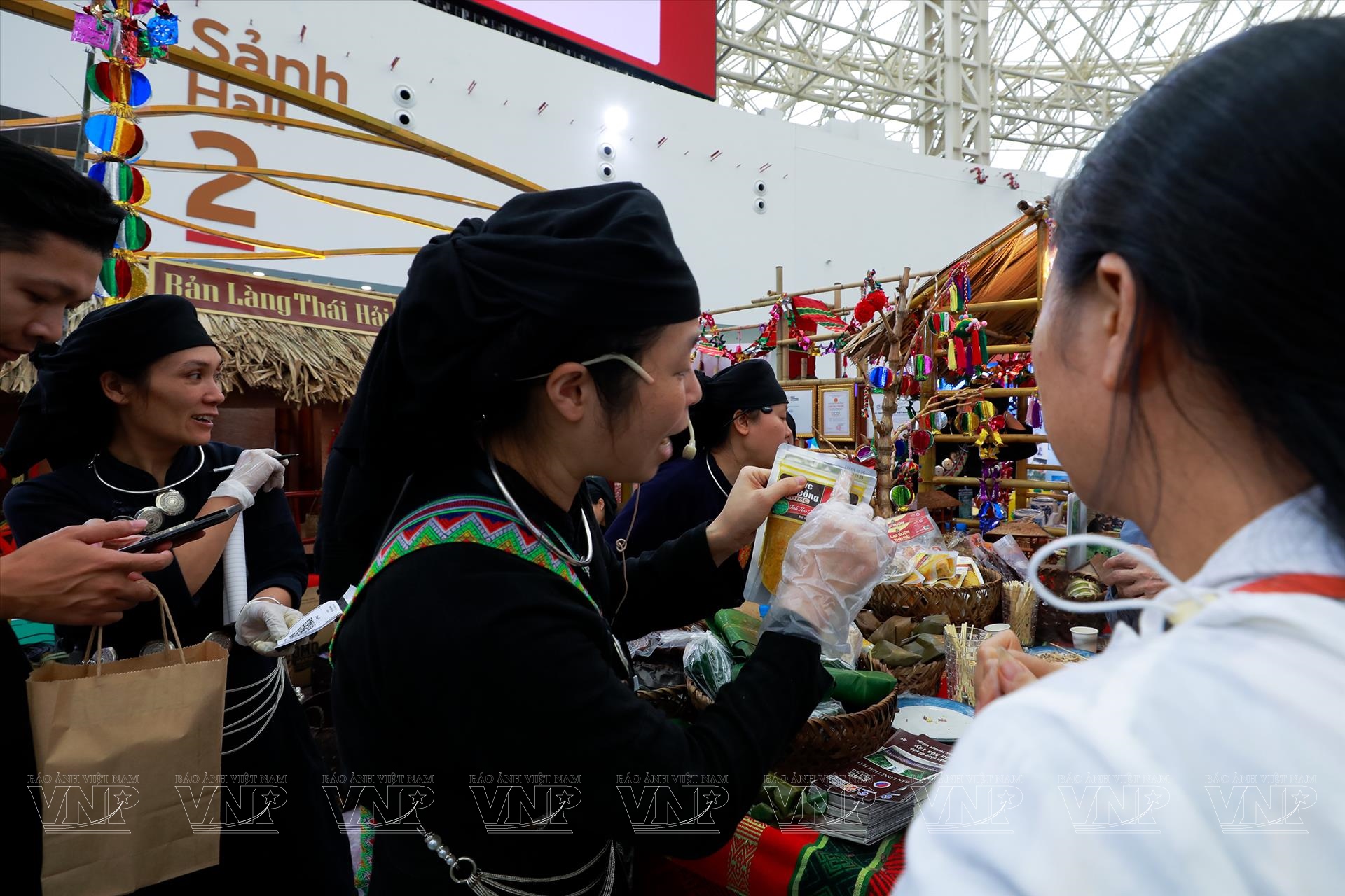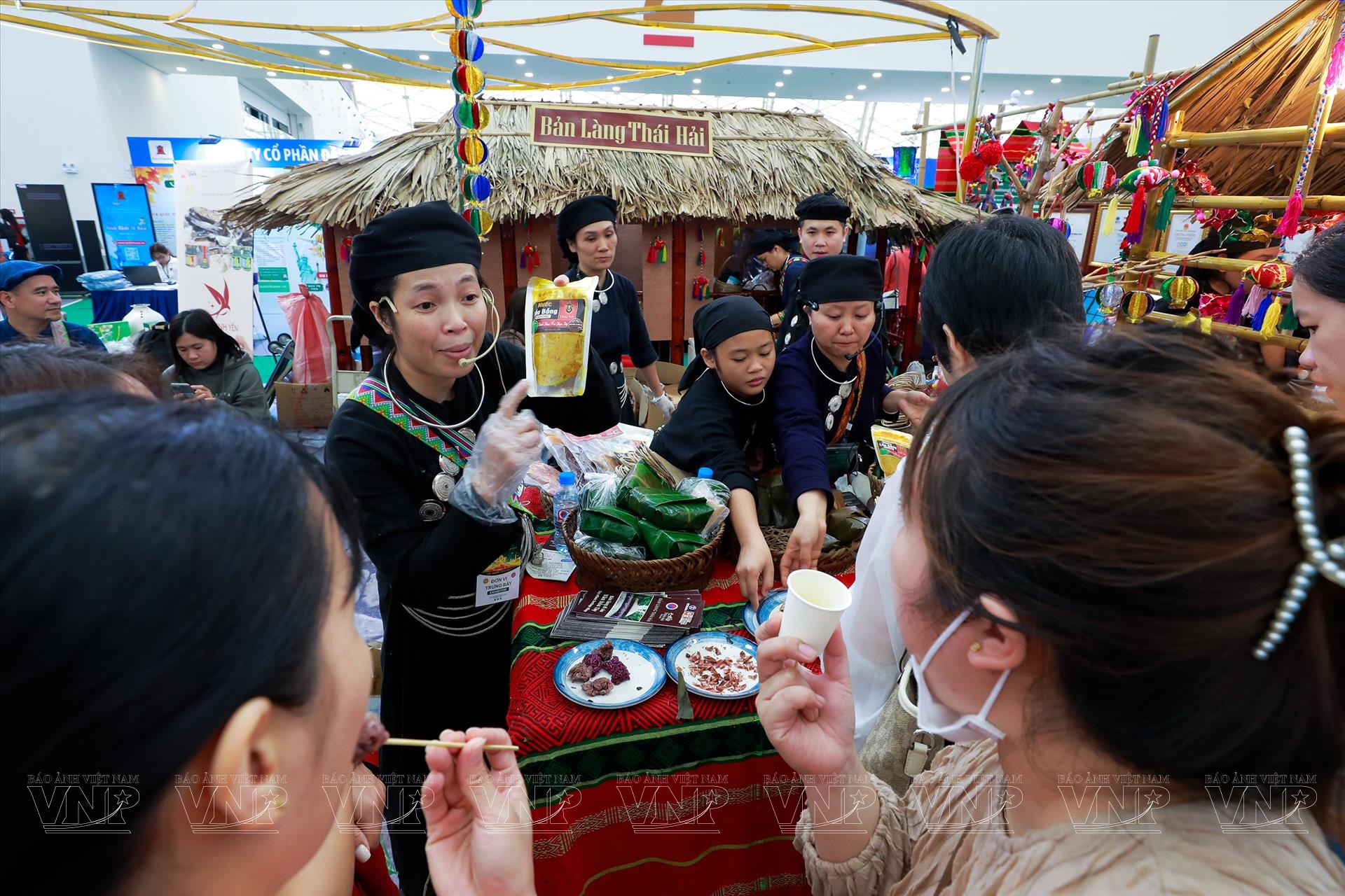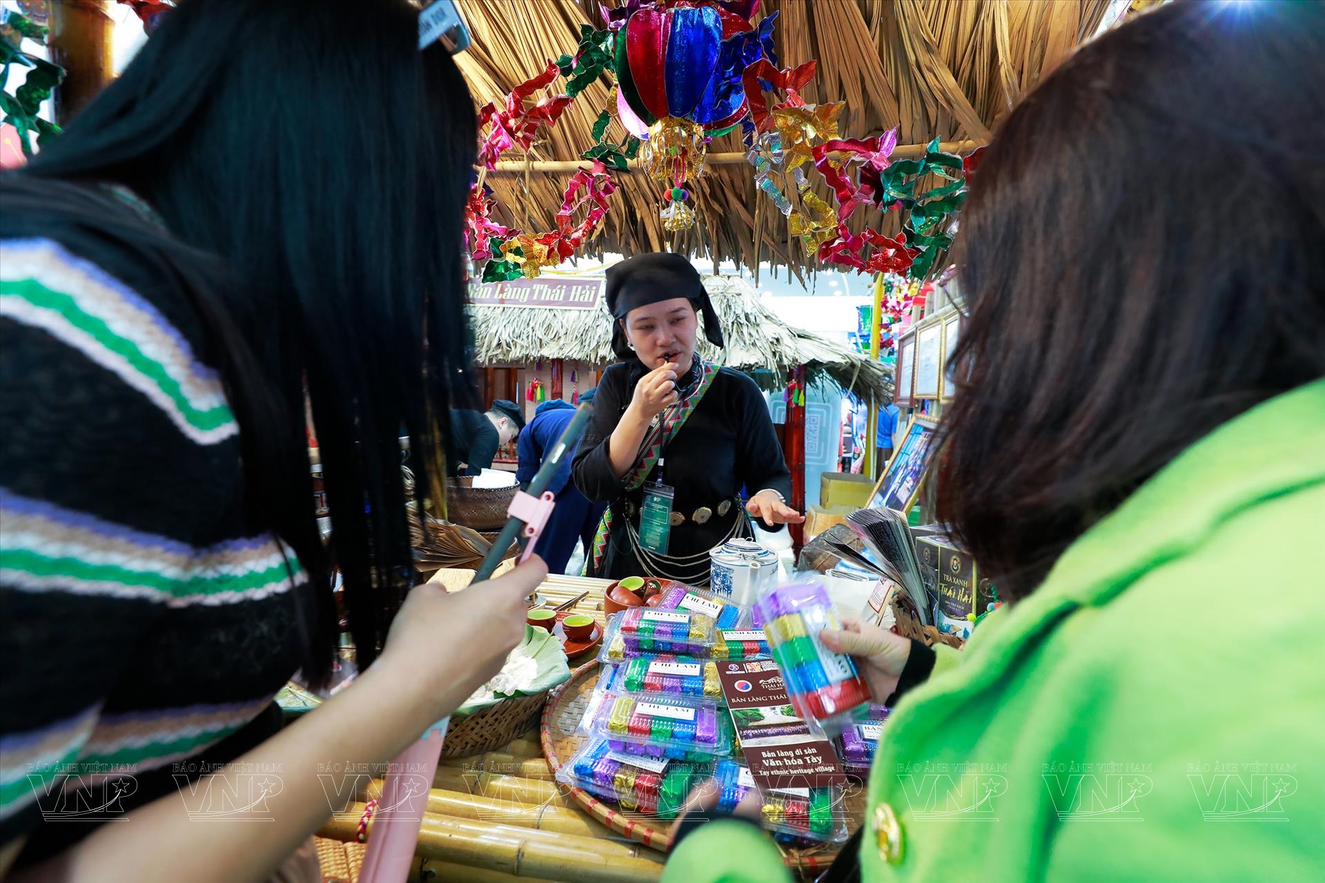 Tại hội chợ, gian hàng Thái Hải không chỉ trưng bày sản phẩm truyền thống như mật ong, chè, thịt hun khói, túi thổ cẩm, mà còn mang đến trải nghiệm văn hóa sống động. Du khách được thưởng thức hát Then, thổi sáo, xem phụ nữ bản làng gói bánh dợm, nấu xôi trám, làm khô nhục ngay tại chỗ, tất cả tạo nên bức tranh văn hóa đậm đà sắc thái vùng cao.