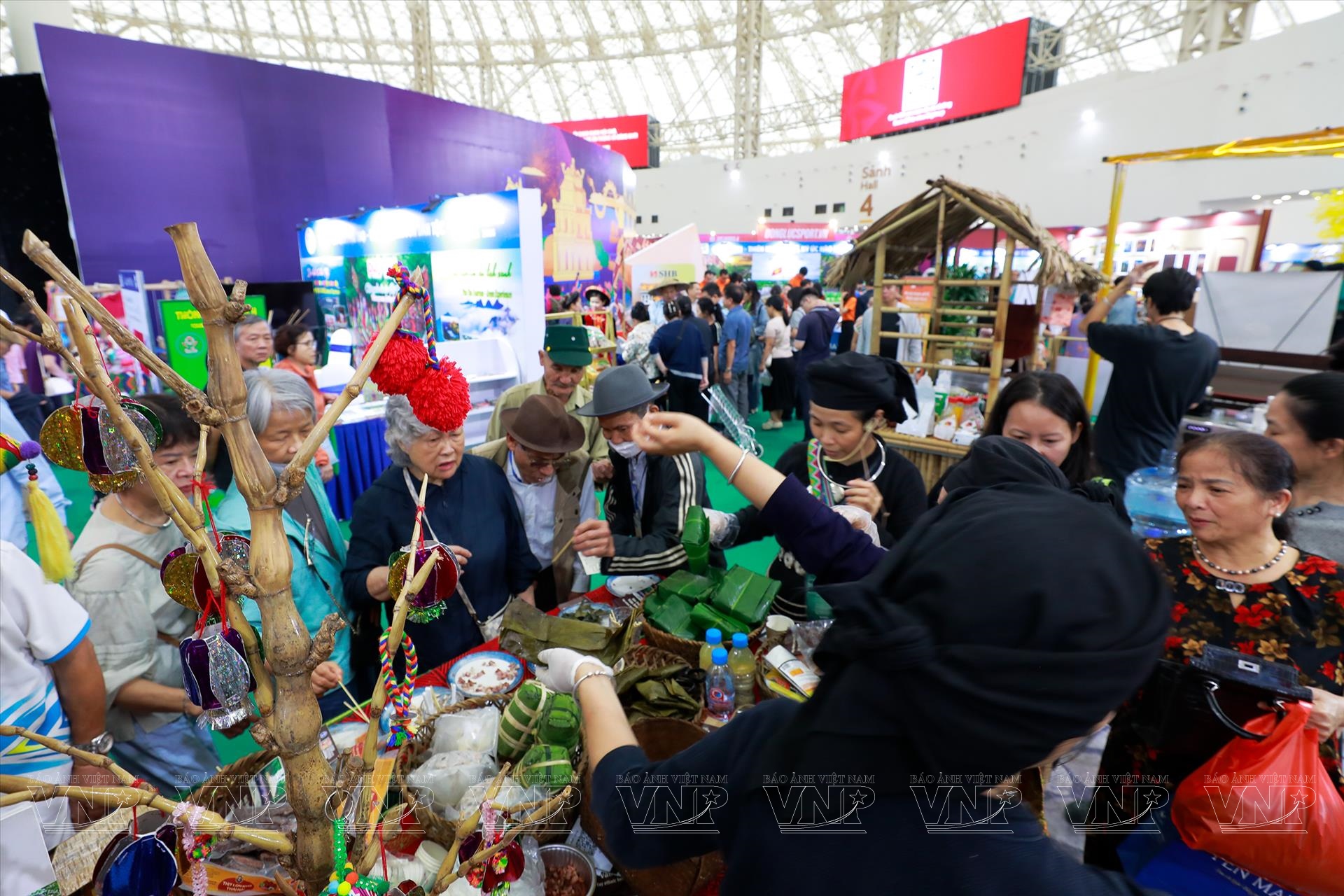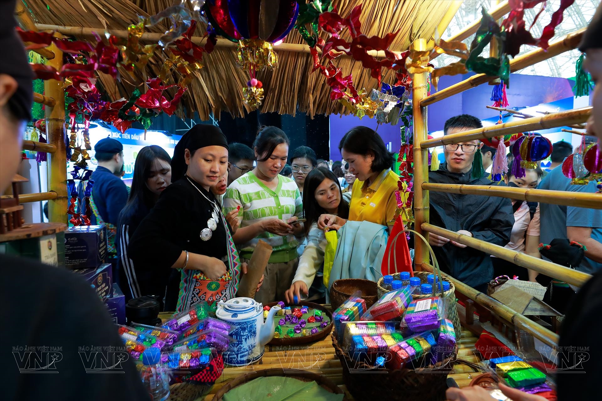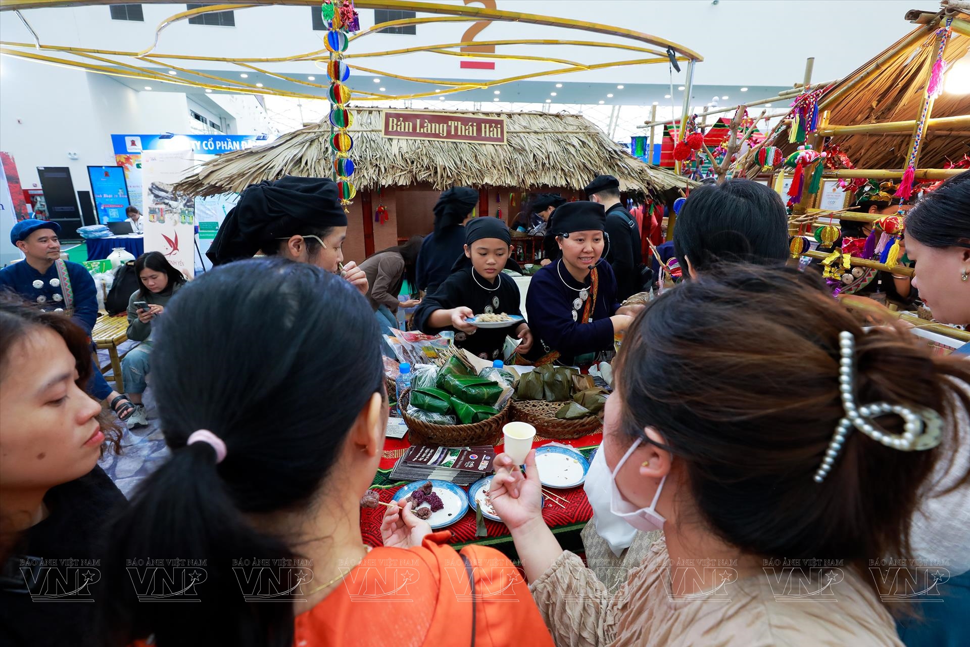 Tại hội chợ, gian hàng Thái Hải không chỉ trưng bày sản phẩm truyền thống như mật ong, chè, thịt hun khói, túi thổ cẩm, mà còn mang đến trải nghiệm văn hóa sống động. Du khách được thưởng thức hát Then, thổi sáo, xem phụ nữ bản làng gói bánh dợm, nấu xôi trám, làm khô nhục ngay tại chỗ, tất cả tạo nên bức tranh văn hóa đậm đà sắc thái vùng cao.