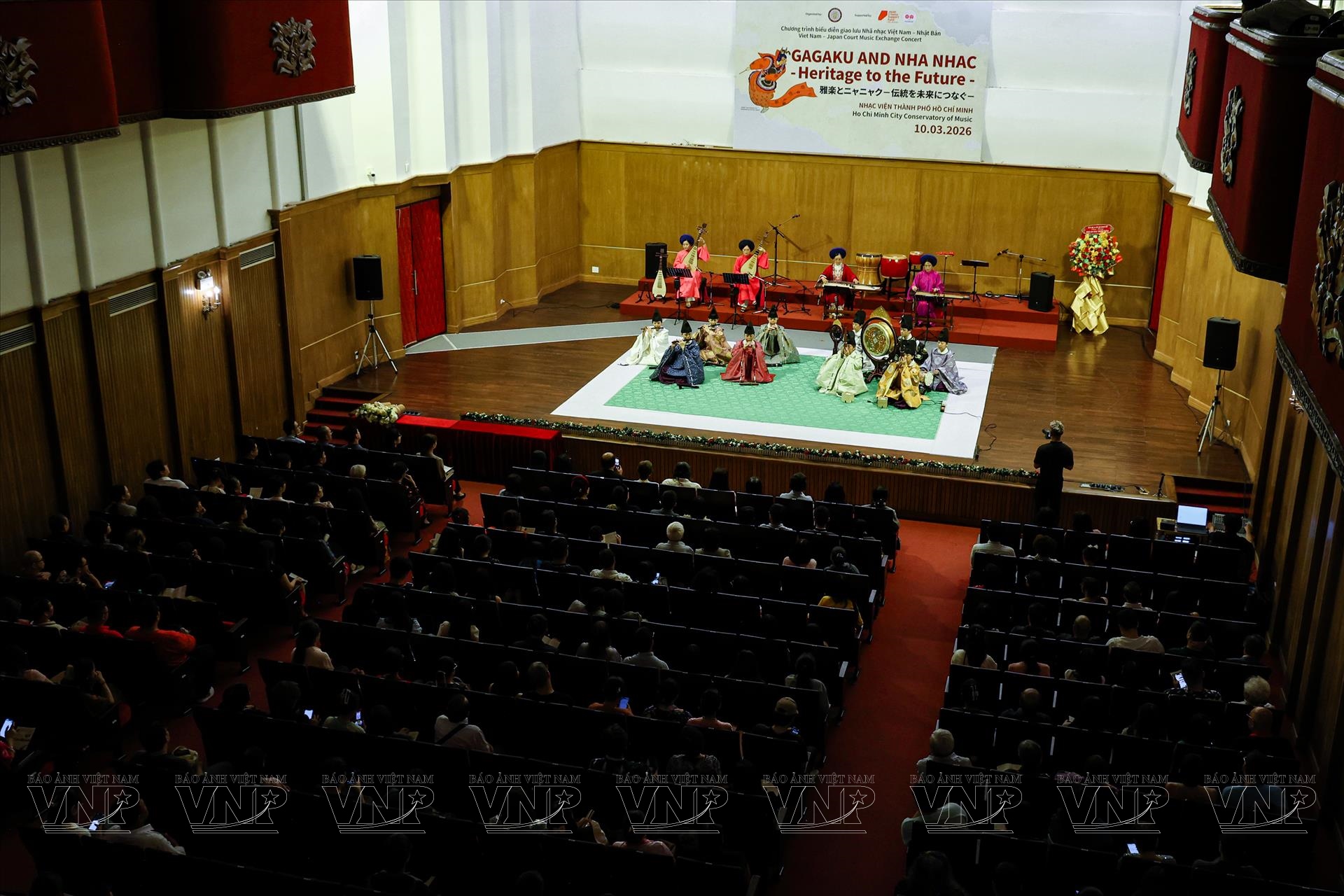 Giữa lòng Sài Gòn nhộn nhịp, đêm 10/3, tại Nhạc viện Thành phố Hồ Chí Minh, chương trình nghệ thuật “Gagaku & Nhã nhạc - Heritage to the Future” đã mang đến cuộc hội ngộ đặc biệt giữa hai dòng âm nhạc cung đình lâu đời của châu Á: Gagaku của Nhật Bản và Nhã nhạc cung đình Huế của Việt Nam. Diễn ra trong khuôn khổ Lễ hội Việt - Nhật lần thứ 11, chương trình không chỉ là một đêm biểu diễn nghệ thuật, mà còn mở ra không gian đối thoại di sản, nơi những thanh âm từng vang lên chốn hoàng cung tiếp tục được trao truyền trong đời sống đương đại.