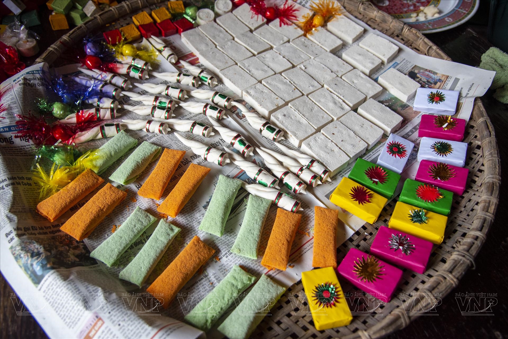 Mệ tôi biết tính o nên cũng mặc kệ để o muốn làm gì thì làm, thành ra năm nào nhà cũng ê hề các món bánh, mứt xanh đỏ tím vàng trông rất vui mắt. Thường thì kiểu gì cũng có mứt gừng, mứt dừa, mứt quất, mứt hạt sen, mứt đậu đỏ, mứt cà rốt, bánh thì có bánh in, bánh thuẫn, bánh đậu xanh hình trái cây, bánh xu xê, bánh ngũ sắc… và đương nhiên là không thể thiếu bánh chưng, bánh tét.