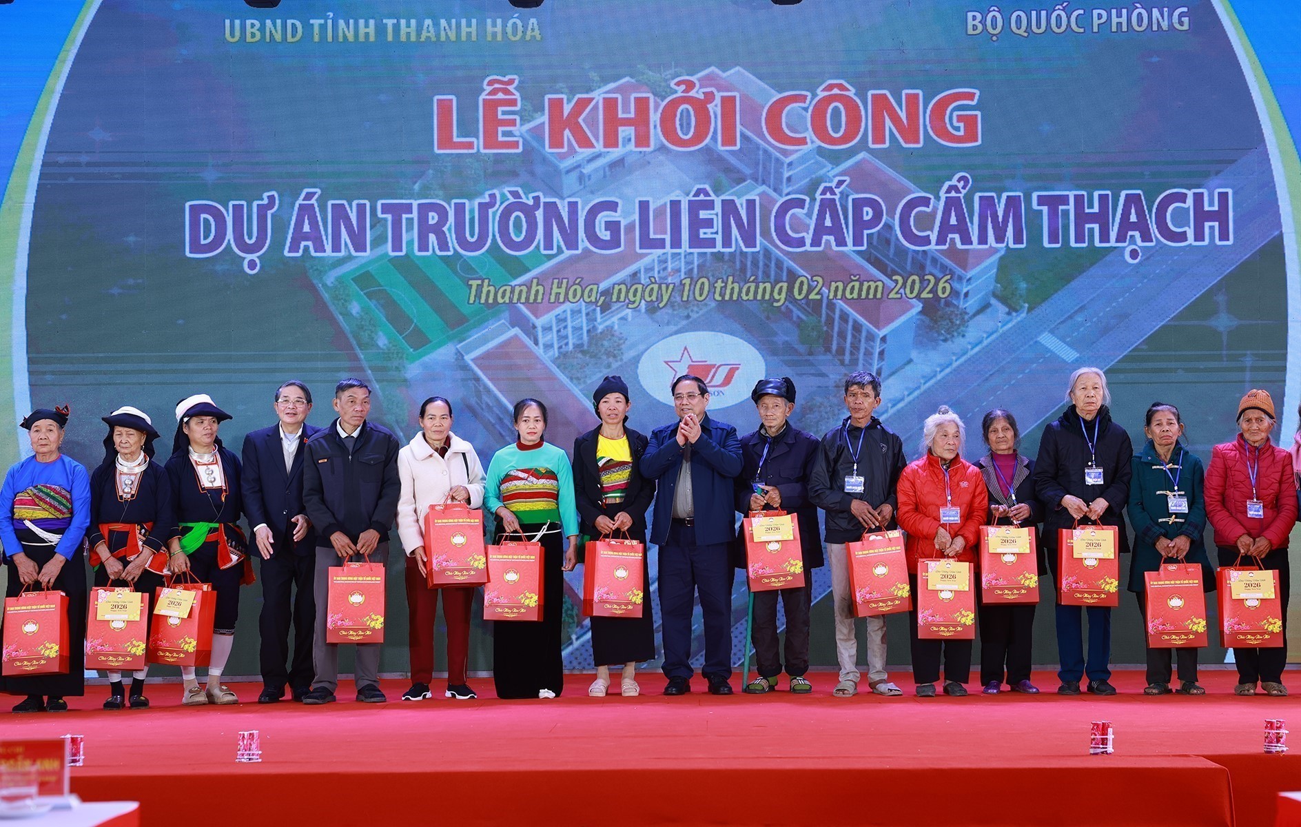 Nhân dịp năm mới 2026 và Tết cổ truyền của dân tộc - Xuân Bính Ngọ 2026, sáng 10/2, Thủ tướng Chính phủ Phạm Minh Chính dự Lễ khởi công dự án Trường liên cấp Cẩm Thạch và thăm, tặng quà Tết cho hộ nghèo, hộ có hoàn cảnh khó khăn, công nhân lao động ở tỉnh Thanh Hóa.
