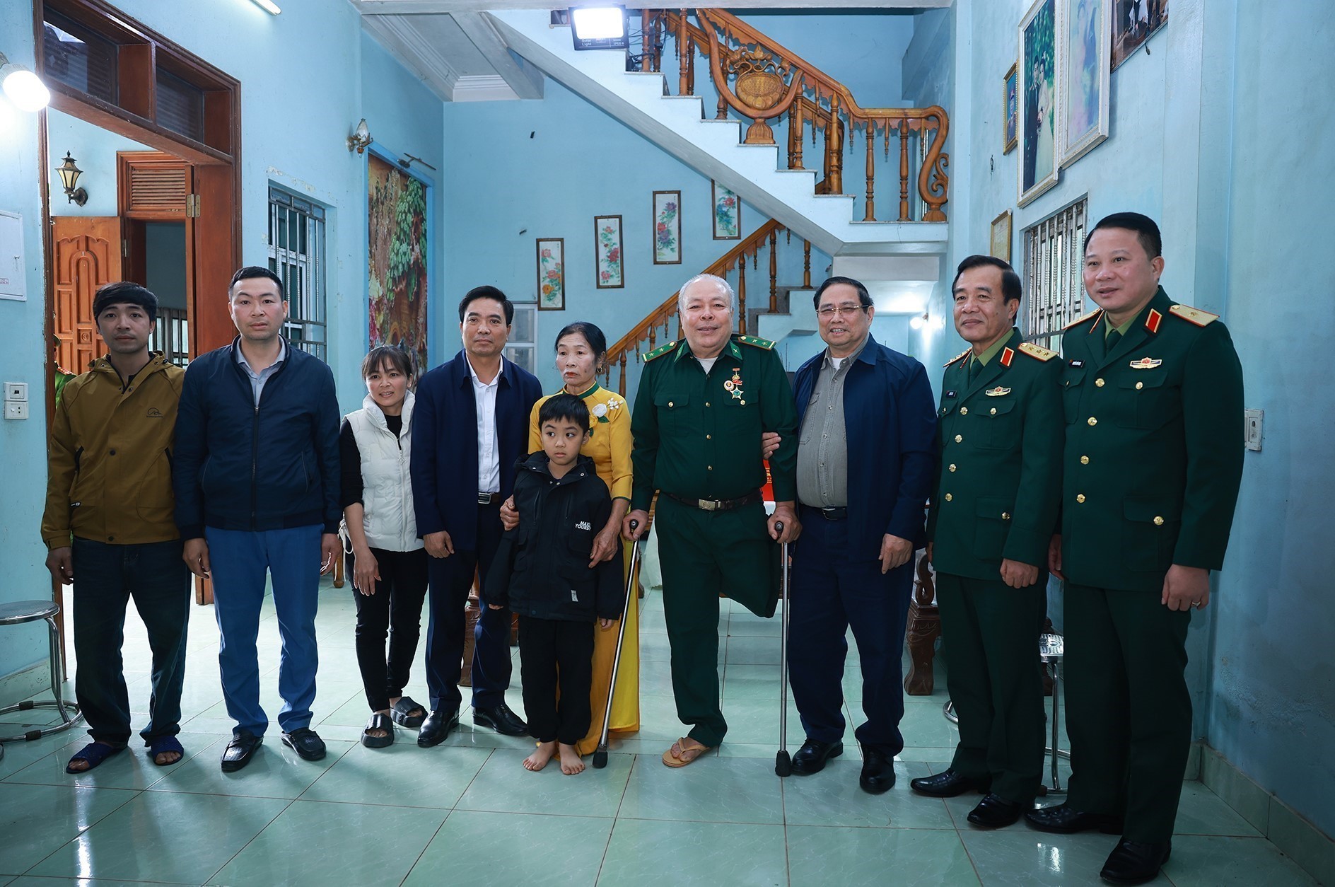 Nhân dịp này, Thủ tướng Phạm Minh Chính đến thăm và tặng quà, chúc Tết gia đình ông Vũ Xuân Hoạt, thương binh hạng 1/4 ở thôn Tô, xã Cẩm Thạch. Ân cần thăm hỏi sức khoẻ, tình hình chuẩn bị đón Tết Bính Ngọ 2026 của gia đình ông Vũ Xuân Hoạt, Thủ tướng khẳng định, Đảng, Nhà nước, nhân dân mãi mãi khắc ghi, tri ân sâu sắc những đóng góp, sự hy sinh to lớn của các anh hùng liệt sĩ, thương binh, bệnh binh, người có công với đất nước; chăm lo công tác đền ơn đáp nghĩa và nỗ lực phấn đấu xứng đáng với sự hy sinh, cống hiến của thế hệ đi trước.