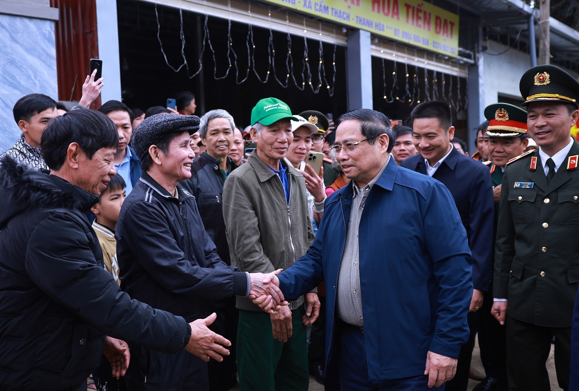 Thủ tướng Phạm Minh Chính thay mặt Tổng Bí thư Tô Lâm và các đồng chí lãnh đạo Đảng, Nhà nước thân ái gửi tới toàn thể nhân dân, các thầy cô, anh, chị, em công nhân, người lao động, các cháu học sinh xã Cẩm Thạch và tỉnh Thanh Hóa lời thăm hỏi ân cần, lời chúc mừng tốt đẹp nhất.