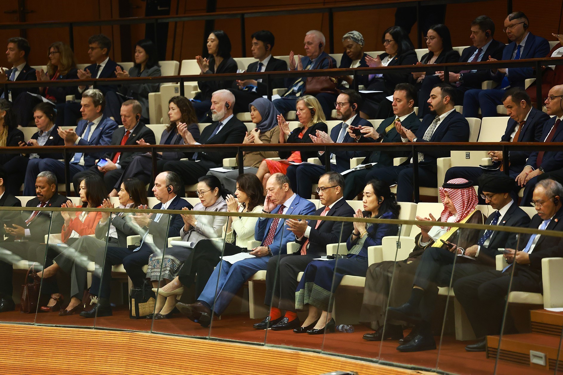 Các đồng chí lãnh đạo, nguyên lãnh đạo Đảng, Nhà nước, Ủy ban Trung ương Mặt trận Tổ quốc Việt Nam, các vị khách quốc tế… cùng dự.