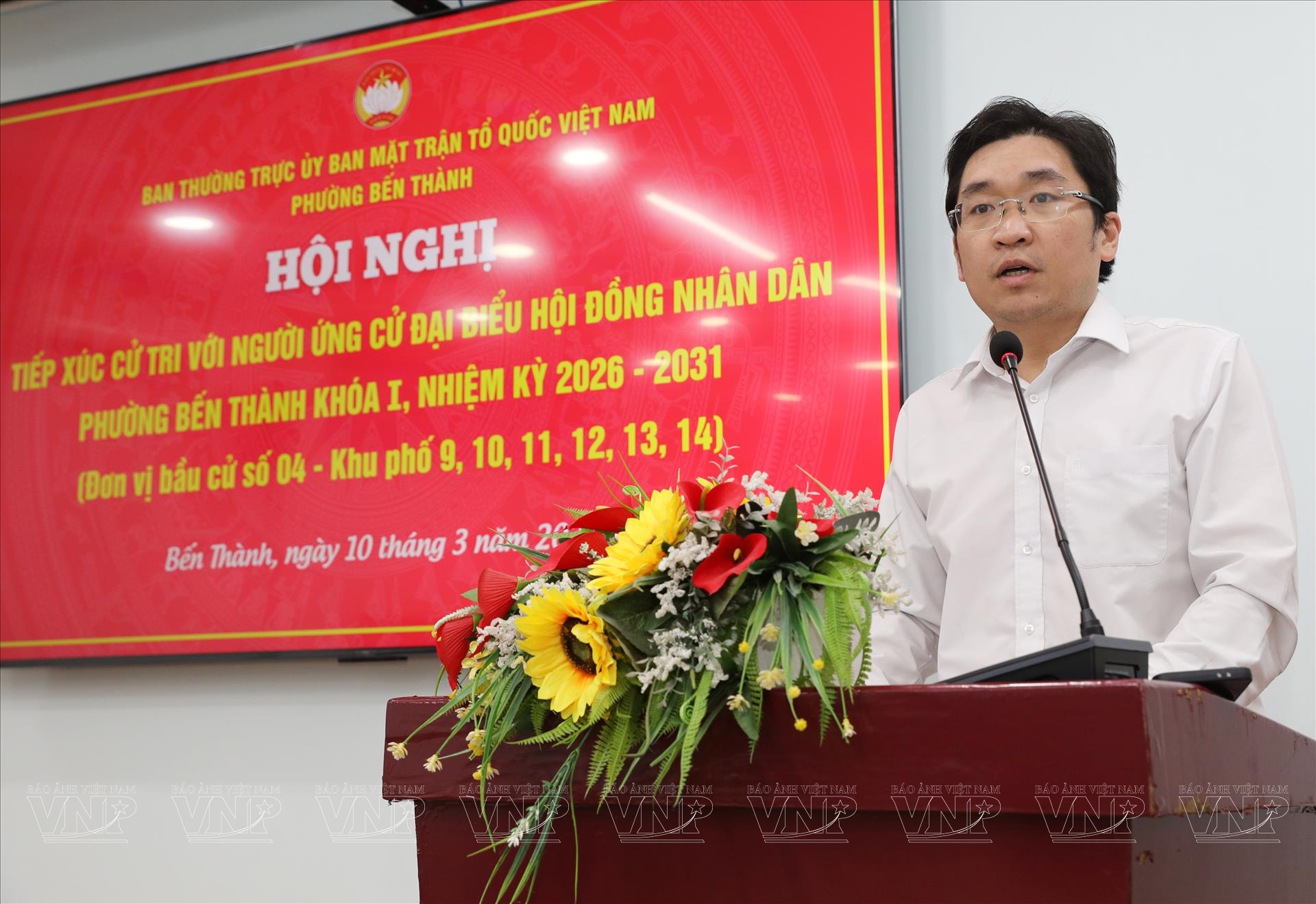 Tối 10/3, Ban Thường trực Ủy ban MTTQ Việt Nam phường Bến Thành tổ chức hội nghị tiếp xúc cử tri với người ứng cử đại biểu Hội đồng nhân dân (HĐND) phường Bến Thành khóa I, nhiệm kỳ 2026 - 2031 (đơn vị bầu cử số 4) với cử tri Khu phố 14.