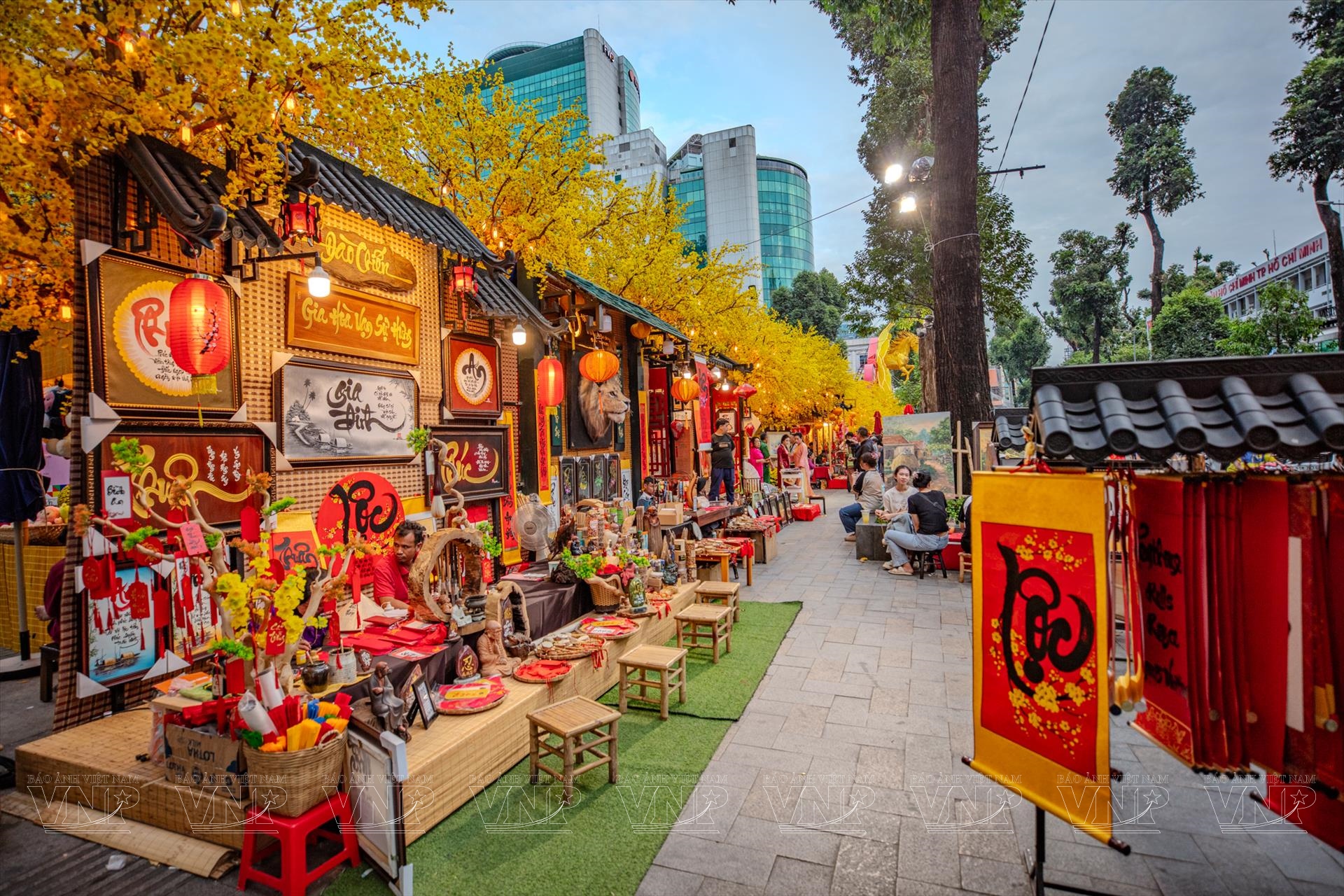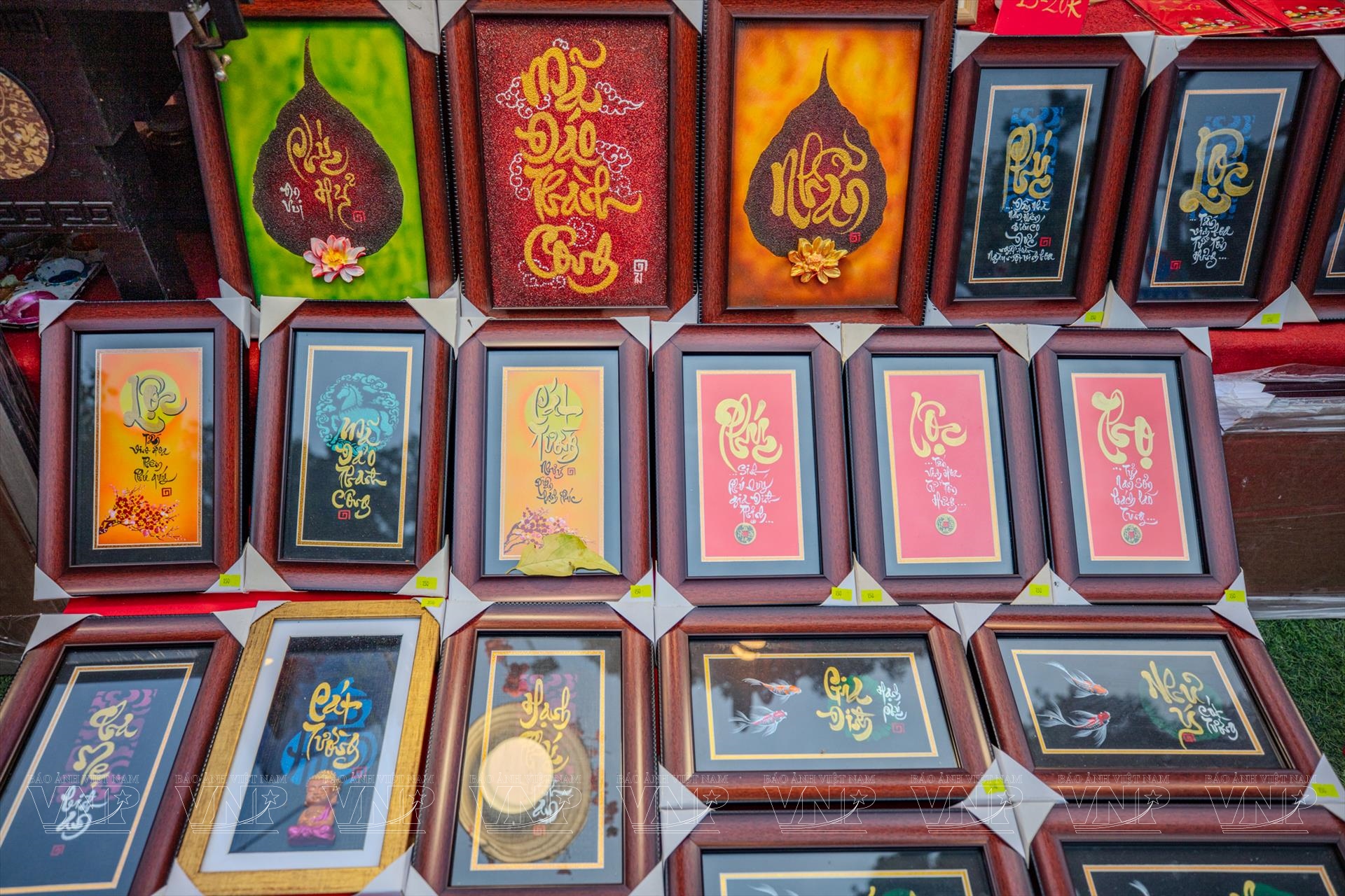 Những câu chúc “Phúc”, “Lộc”, “An”, “Thành Công”… được thể hiện đa dạng trên nhiều chất liệu như giấy đỏ, gỗ, đá hay mành tre, trở thành món quà tinh thần ý nghĩa mà người dân thành phố trân trọng mang về nhà như một cách “rước lộc” đầu năm.
