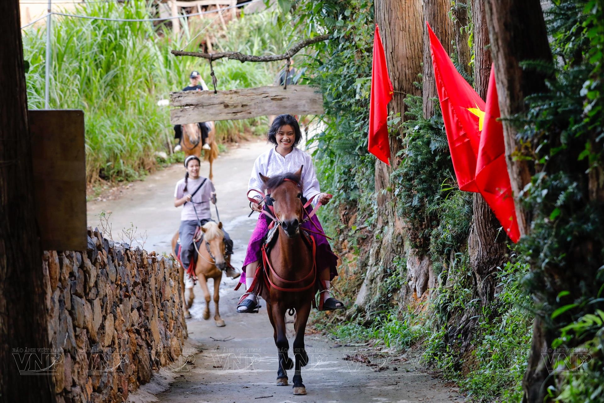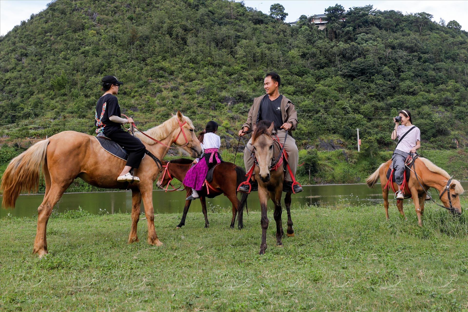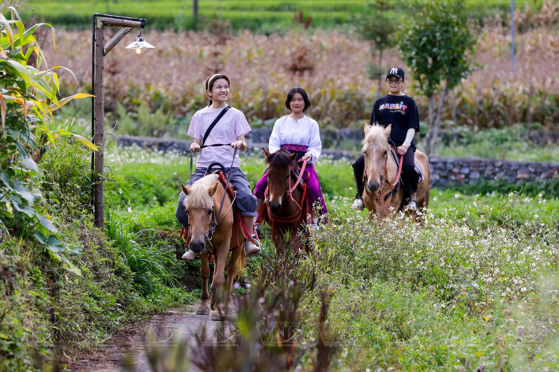 Trên lưng ngựa, du khách thả hồn vào khung cảnh núi non hùng vĩ, hít căng lồng ngực bầu không khí trong lành miền cực Bắc. Khi hoàng hôn buông xuống, từng nhịp vó ngựa như chậm lại, để lại khoảnh khắc lãng đãng, dịu dàng giữa cánh đồng cỏ xanh. Mỗi lần nhích dây cương, mỗi bước chân ngựa đều mang theo một sự kết nối kỳ diệu, như đưa con người xích lại gần hơn với đất trời cao nguyên đá.