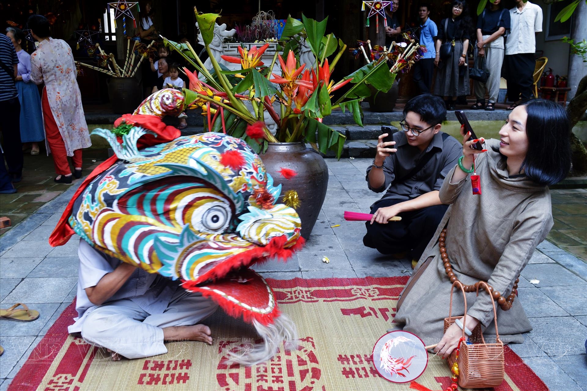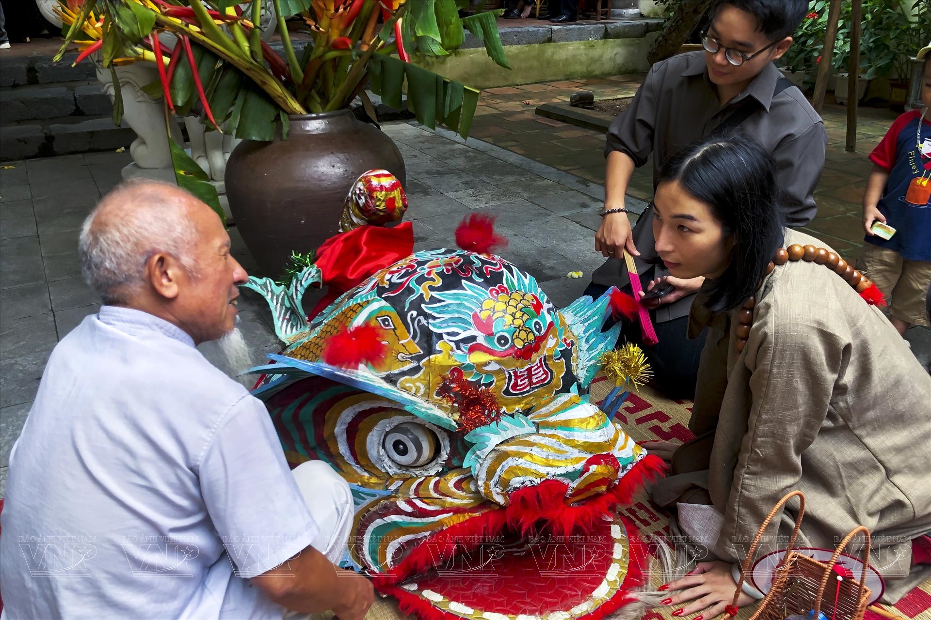 Điểm nhấn đặc biệt của triển lãm là sự xuất hiện của nghệ nhân Nguyễn Xuân Hiền, người duy nhất hiện còn gắn bó với điệu múa đầu sư tử cổ làng Phương Bản (Chương Mỹ, Hà Nội). Ngay trong sân đình Kim Ngân, ông Hiền đã trực tiếp trình diễn lại điệu múa cổ được cha ông truyền dạy, mang đến những khoảnh khắc sống động, đậm hồn xưa.