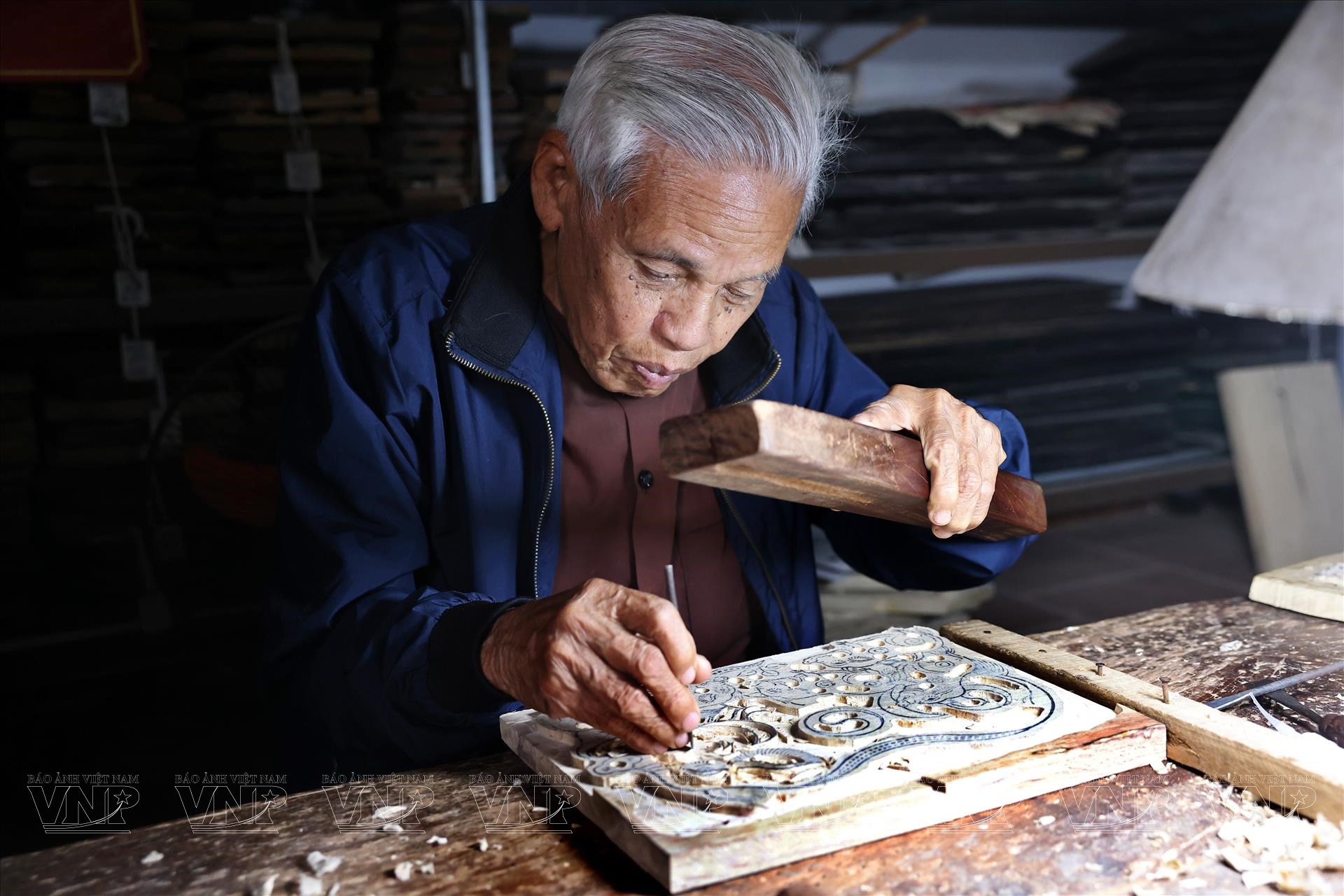Nghệ nhân ưu tú Nguyễn Đăng Chế năm nay đã 90 tuổi, vẫn miệt mài với nghề.