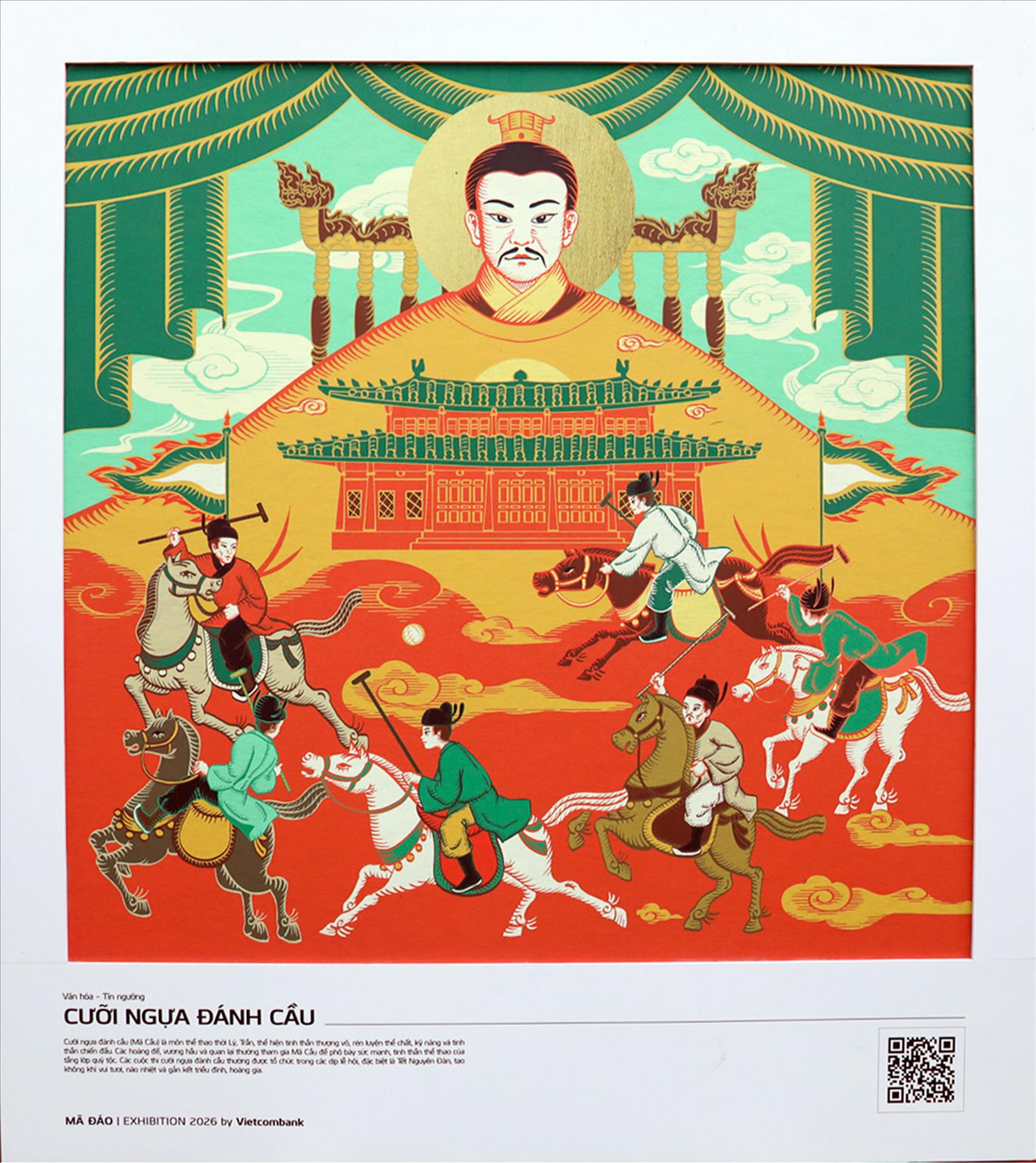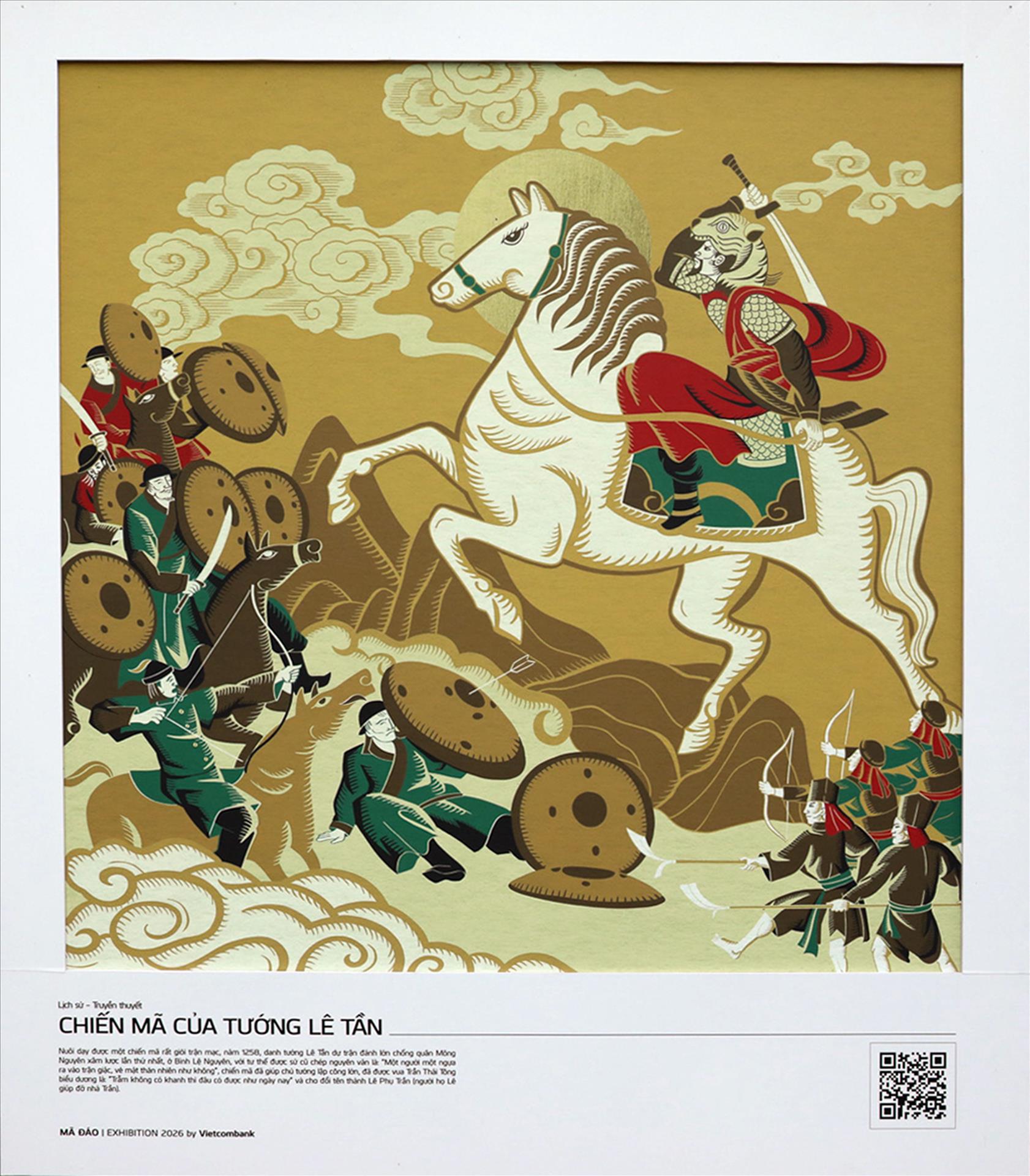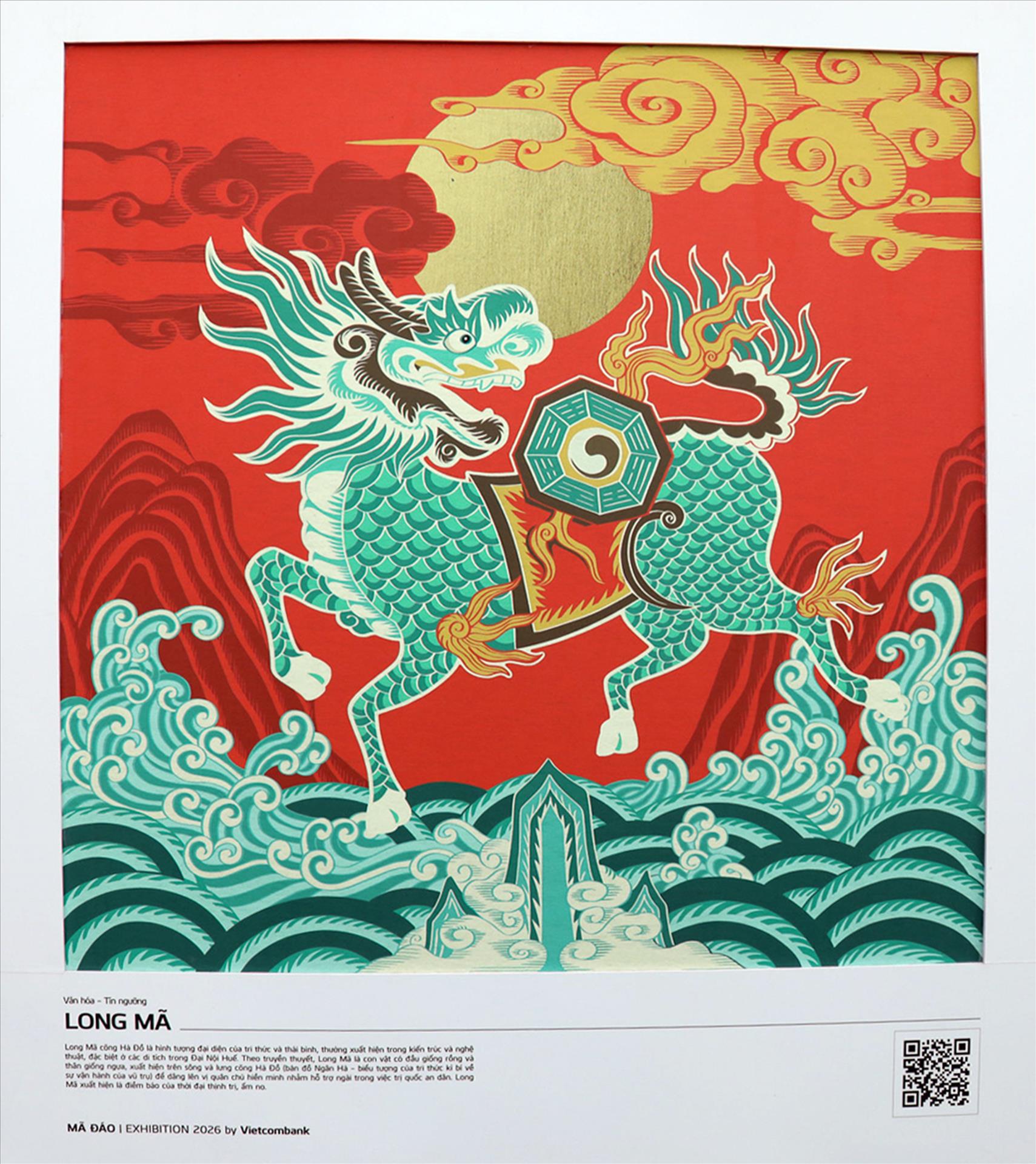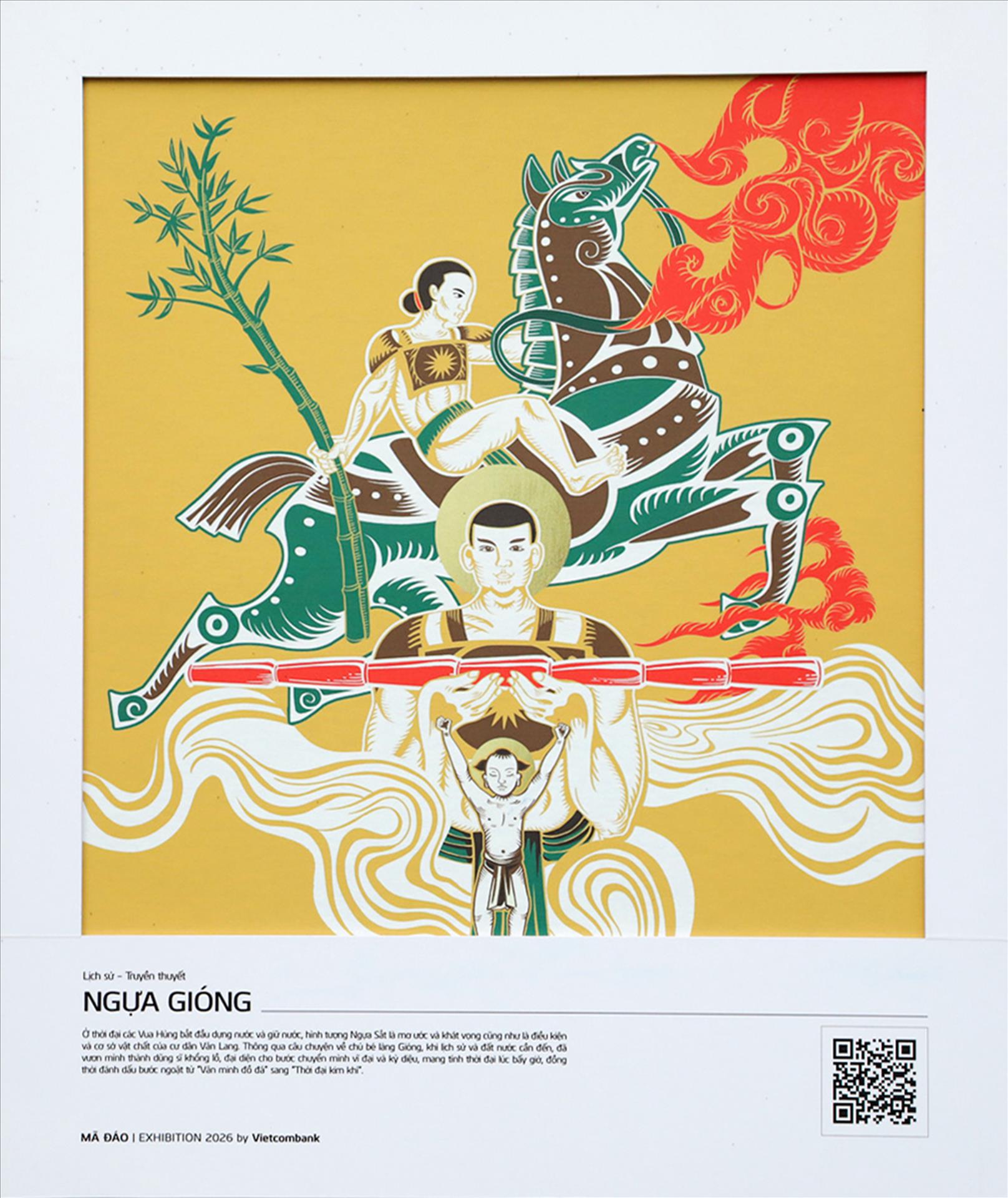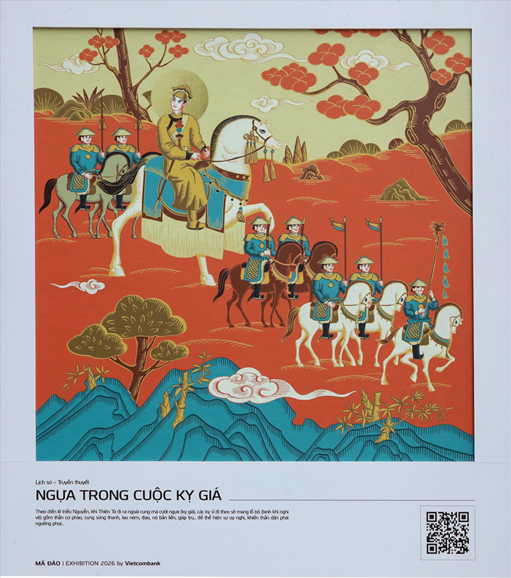 Các triển lãm như "Mã Đáo | Exhibition 2026" tại không gian đi bộ quanh Hồ Gươm là một minh chứng rõ nét. Tại đây, những bức tranh ngựa được thể hiện theo phong cách đồ họa hiện đại, nhưng vẫn giữ nguyên được tinh thần cốt lõi của tranh dân gian Đông Hồ, Hàng Trống. Thông qua bố cục ước lệ, đường viền đậm và các biểu tượng quen thuộc, các tác phẩm này đã khéo léo kết hợp quá khứ và hiện tại, mang đến một hơi thở mới cho nghệ thuật truyền thống.