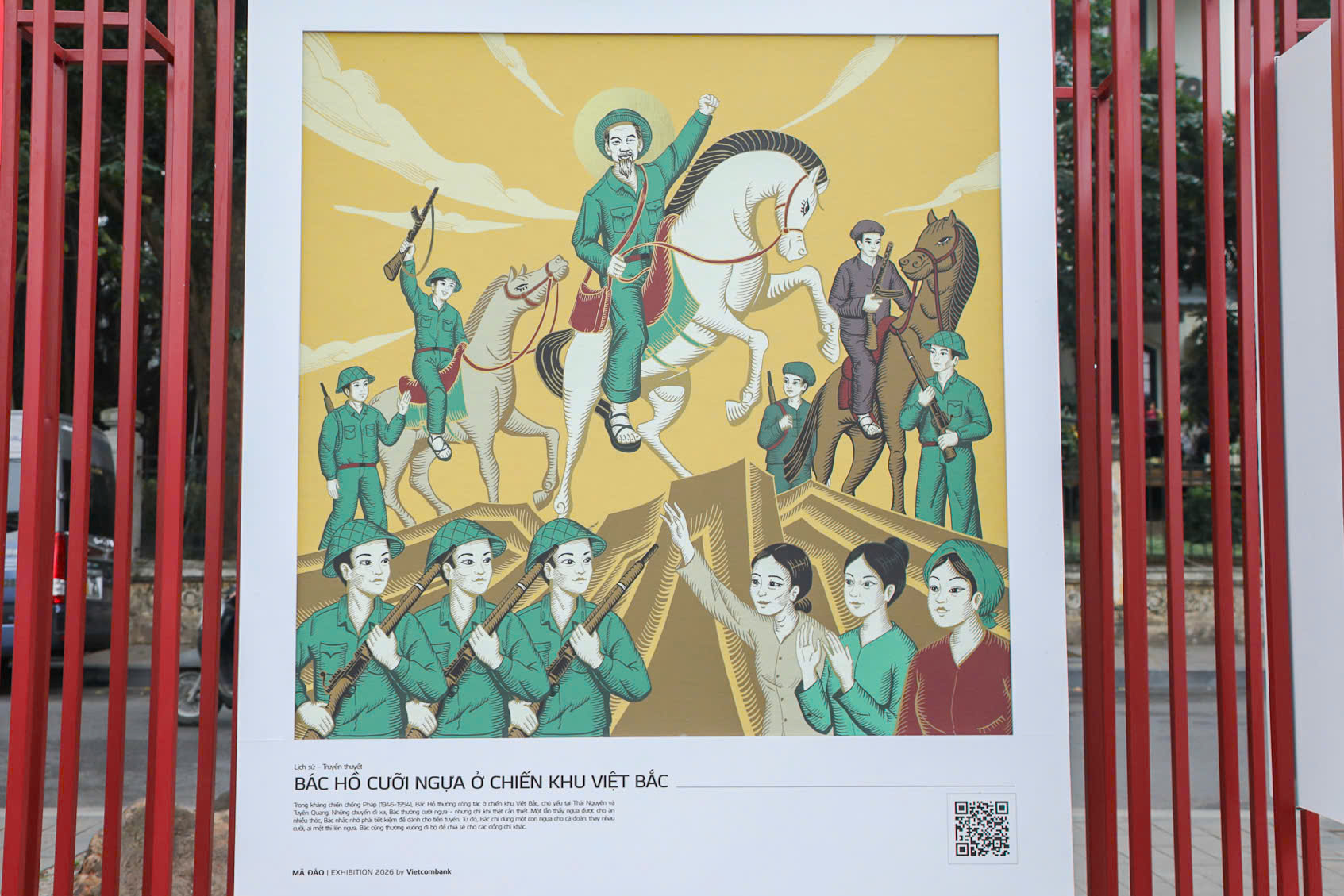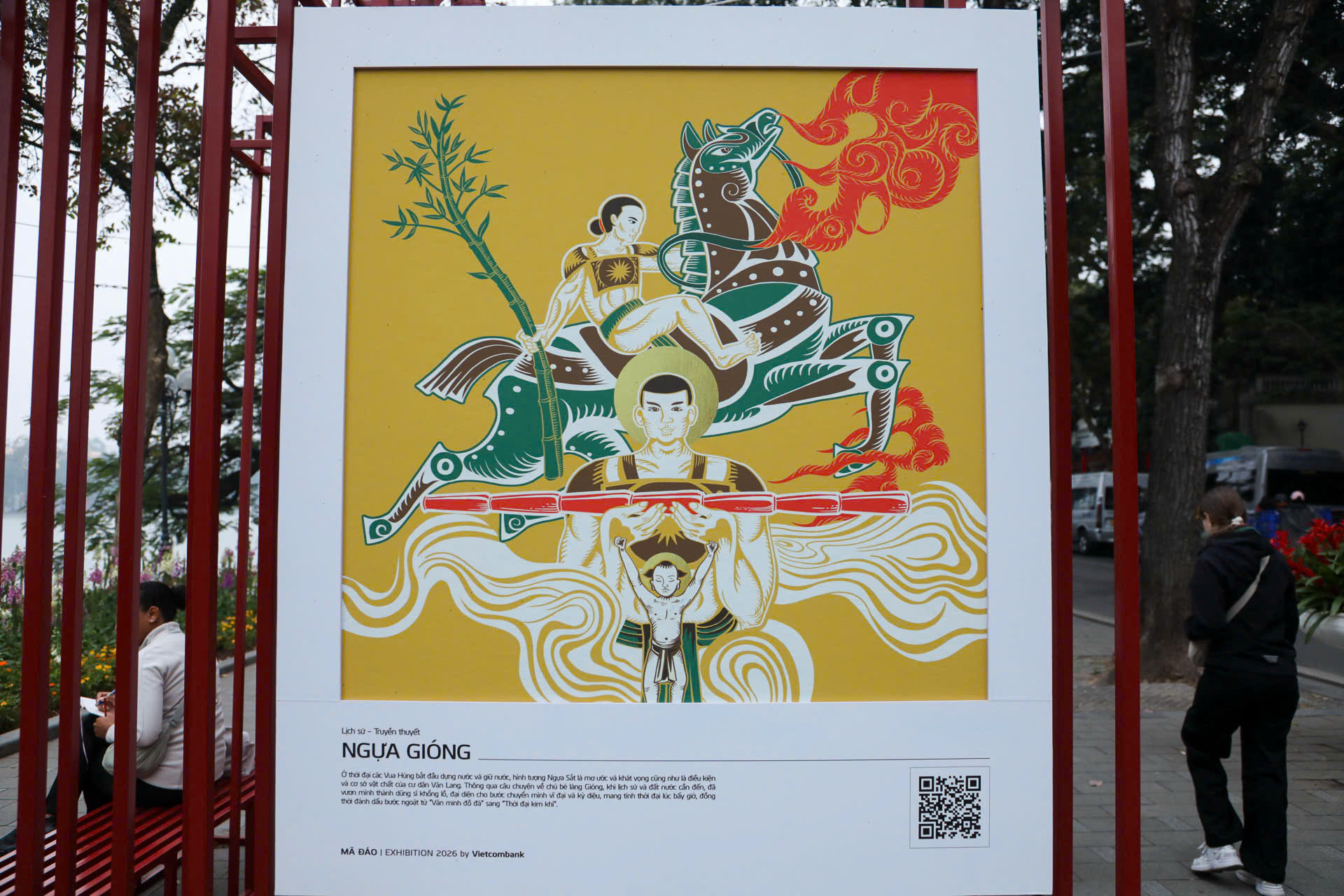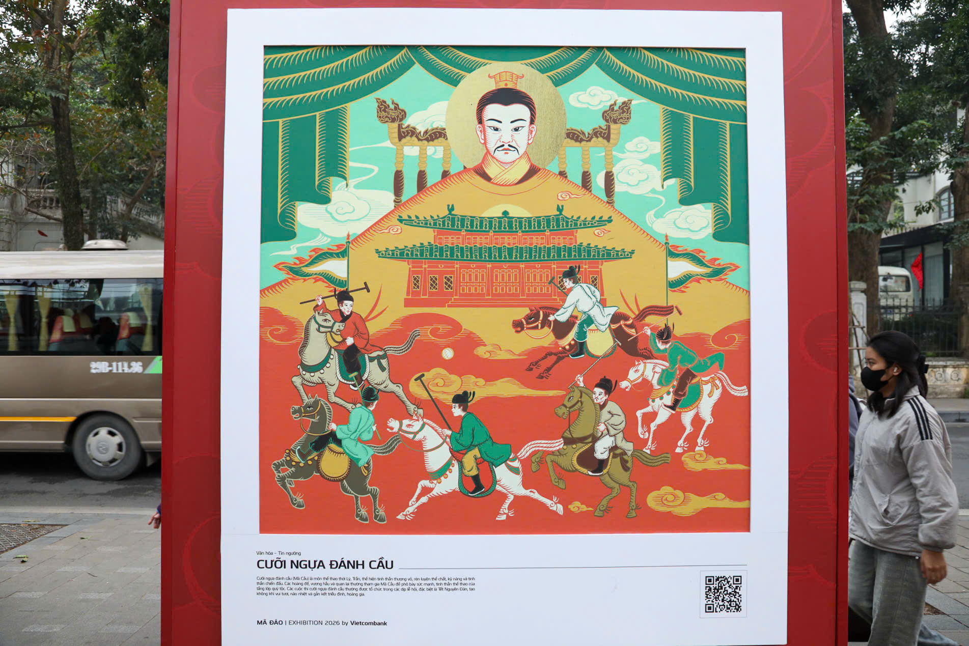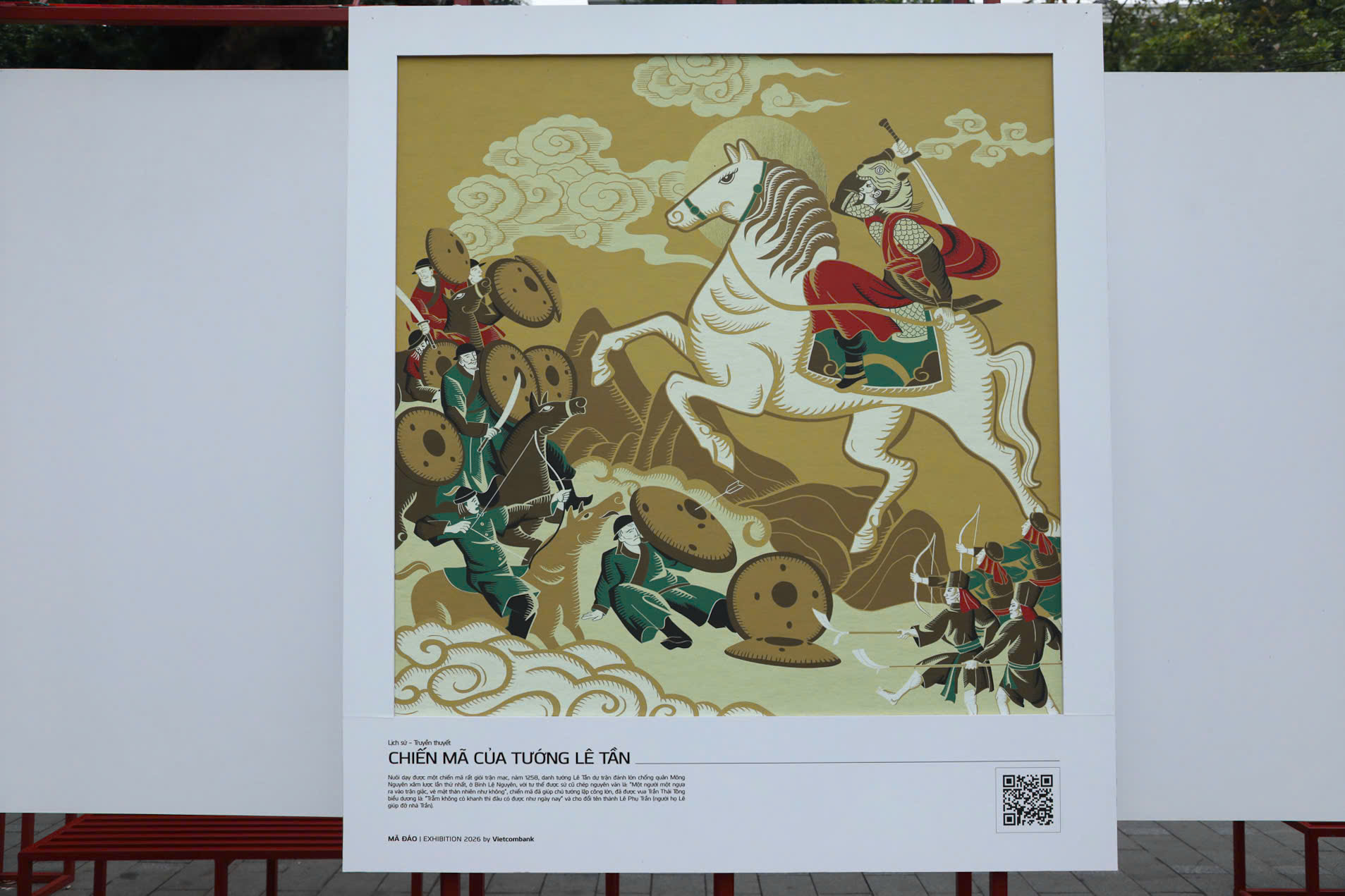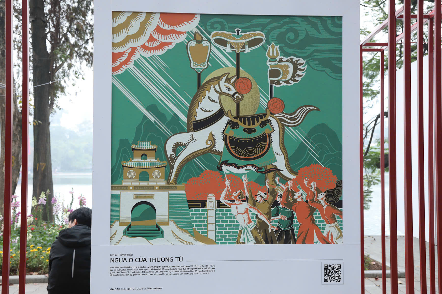 Các triển lãm như "Mã Đáo | Exhibition 2026" tại không gian đi bộ quanh Hồ Gươm là một minh chứng rõ nét. Tại đây, những bức tranh ngựa được thể hiện theo phong cách đồ họa hiện đại, nhưng vẫn giữ nguyên được tinh thần cốt lõi của tranh dân gian Đông Hồ, Hàng Trống. Thông qua bố cục ước lệ, đường viền đậm và các biểu tượng quen thuộc, các tác phẩm này đã khéo léo kết hợp quá khứ và hiện tại, mang đến một hơi thở mới cho nghệ thuật truyền thống.