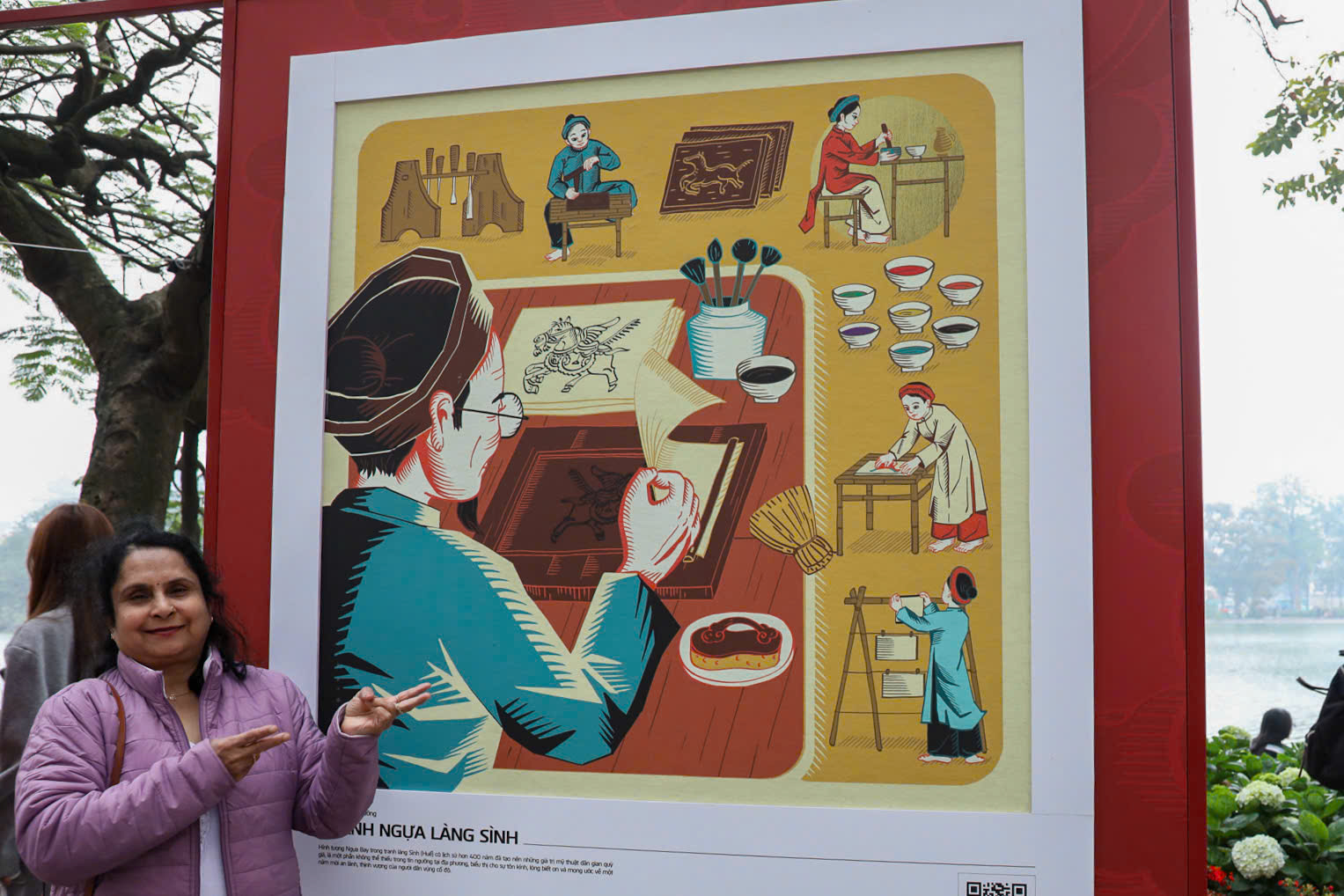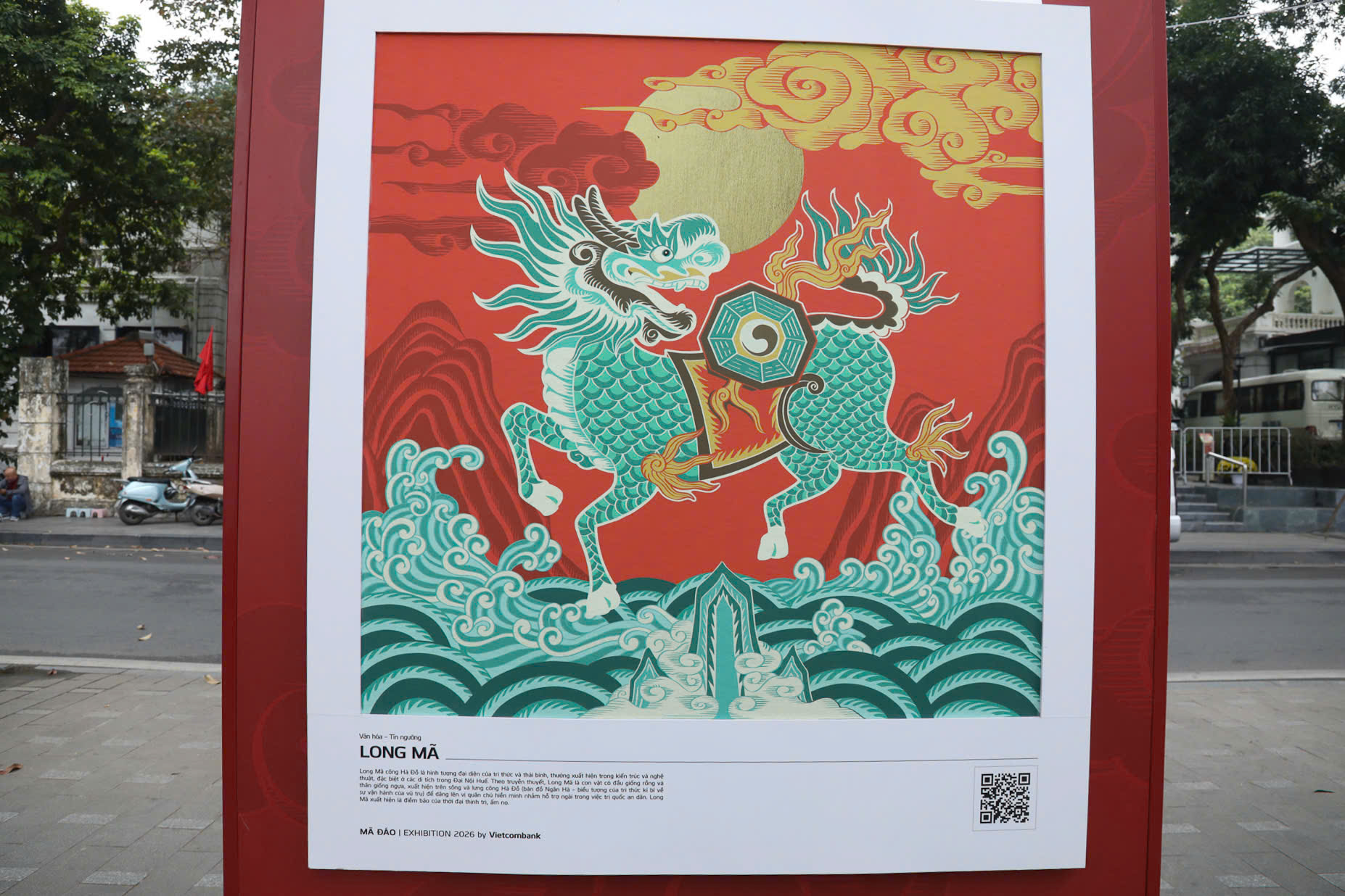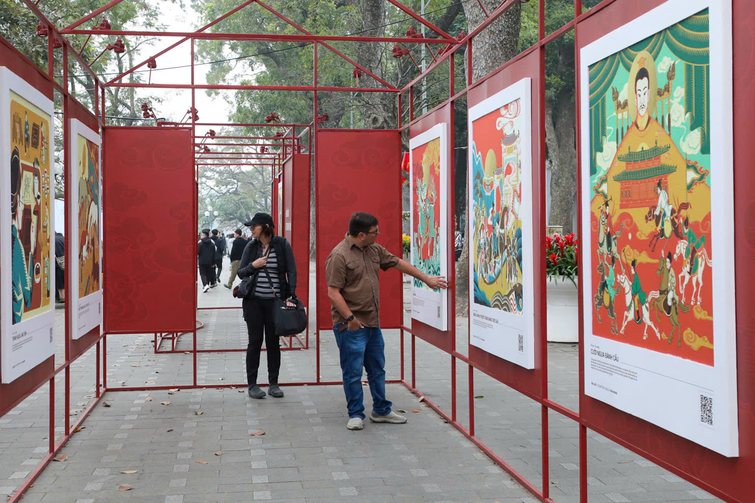 Một điểm nhấn thú vị tại các triển lãm này là sự tích hợp công nghệ hiện đại. Nhiều bạn trẻ đã tỏ ra hào hứng khi quét mã QR đặt cạnh các tác phẩm để tìm hiểu thêm về câu chuyện văn hóa phía sau mỗi bức tranh. Cách kết hợp này giúp người xem, nhất là thế hệ trẻ, dễ dàng tiếp cận và hiểu sâu hơn về di sản văn hóa vốn thường chỉ thấy trong sách vở hay bảo tàng. Nghệ thuật không còn bó hẹp trong không gian trưng bày mà hiện diện ngay trên những tuyến phố quen thuộc, trở thành một phần sinh hoạt đời sống của người dân Thủ đô.