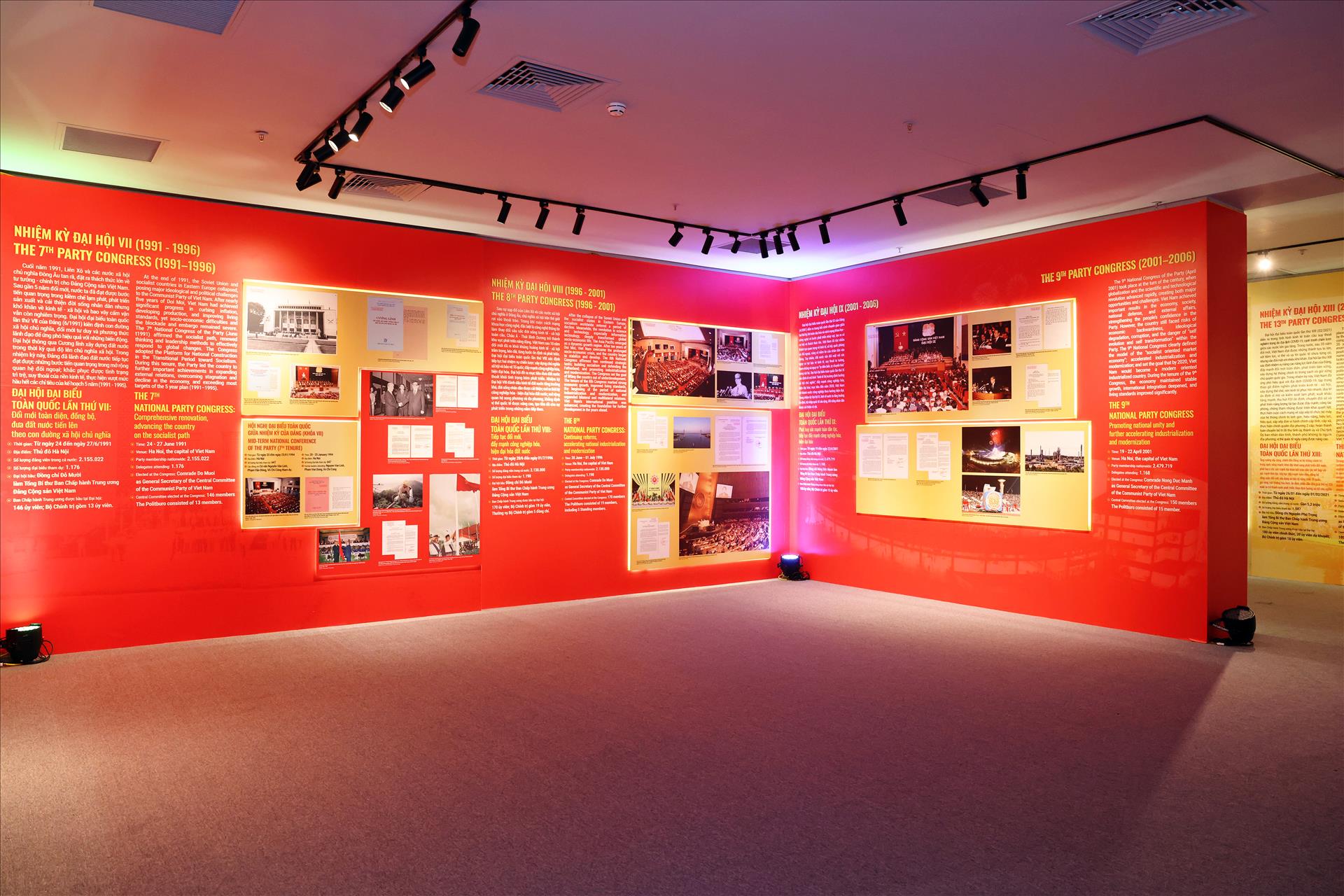 Nội dung triển lãm được chia làm ba phần riêng biệt nhằm giúp độc giả dễ dàng theo dõi. Phần đầu tiên tập trung vào sự kiện thành lập Đảng, đây chính là khởi nguồn thay đổi vận mệnh dân tộc. Tiếp theo, phần hai tái hiện các bước ngoặt lịch sử qua từng nhiệm kỳ. Cuối cùng, phần ba thể hiện khát vọng phát triển và tầm nhìn tương lai hướng đến Đại hội XIV.