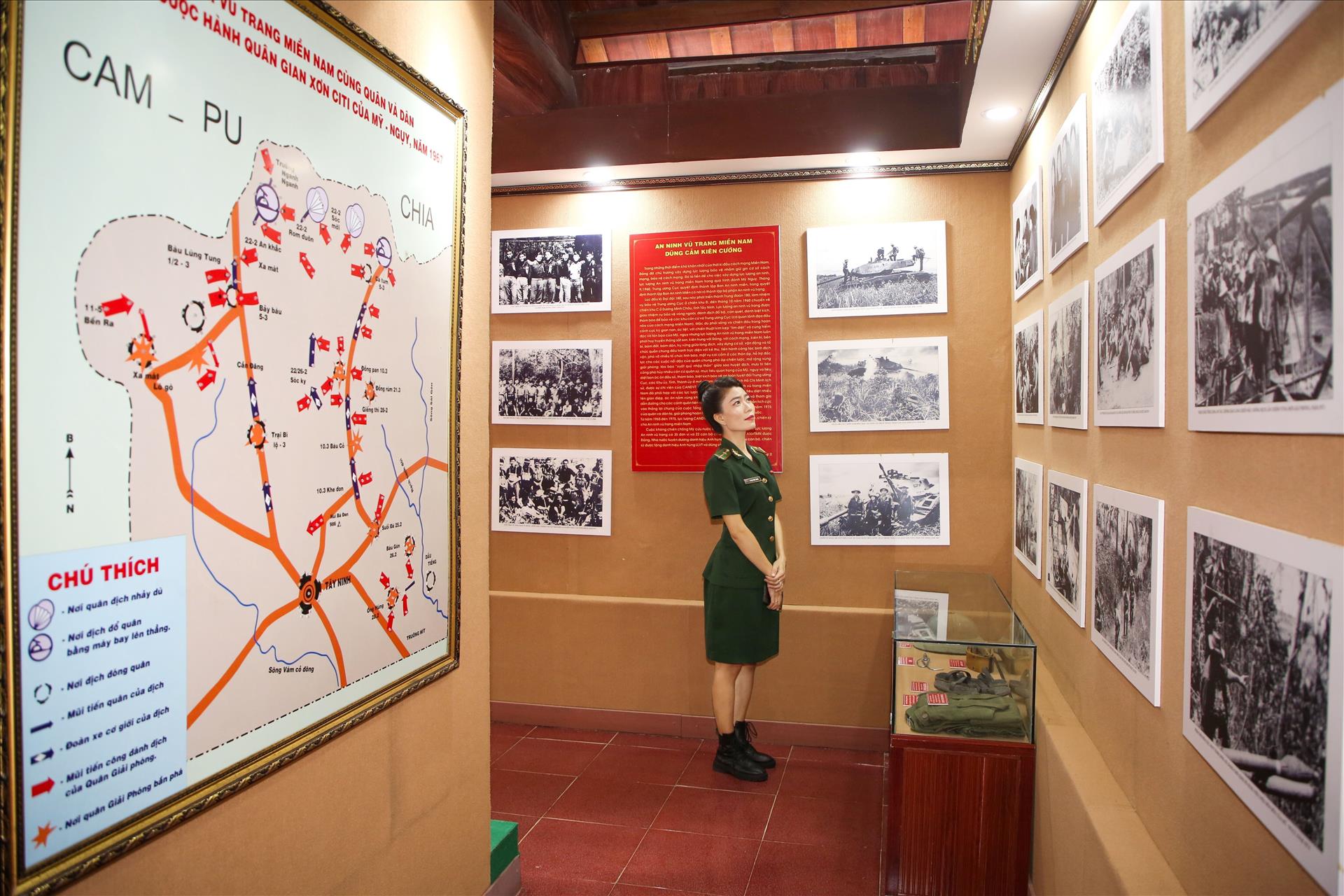 Trong hành trình trở lại Di tích lịch sử Quốc gia đặc biệt Căn cứ Trung ương Cục miền Nam vào một ngày cuối tháng 12/2025, giữa Nhà trưng bày, bà Lê Thị Thu (77 tuổi, ngụ Thành phố Hồ Chí Minh) đứng lặng lẽ ngắm một bức ảnh đen trắng treo trên tường rất lâu.