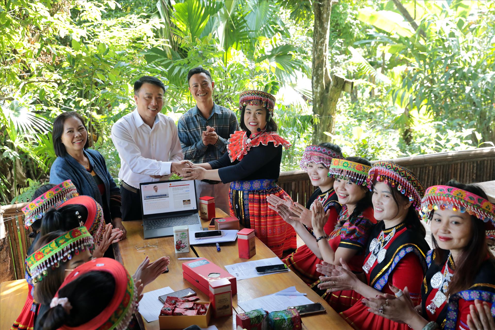 Các cô gái người Dao với nụ cười tươi tắn và tinh thần cầu thị đã vừa học vừa làm, các cô viết content về đồi chè quê mình, về các công đoạn sao chè, phơi chè tại các hộ gia đình và tự tin livestream giới thiệu sản phẩm ngay dưới những đồi chè xanh mướt. Cách thức này vừa giúp lao động thêm yêu sản phẩm chè mình làm ra vừa góp phần quảng bá cho thương hiệu Tây Trúc Xanh theo một cách tự nhiên, chân thật nhất.