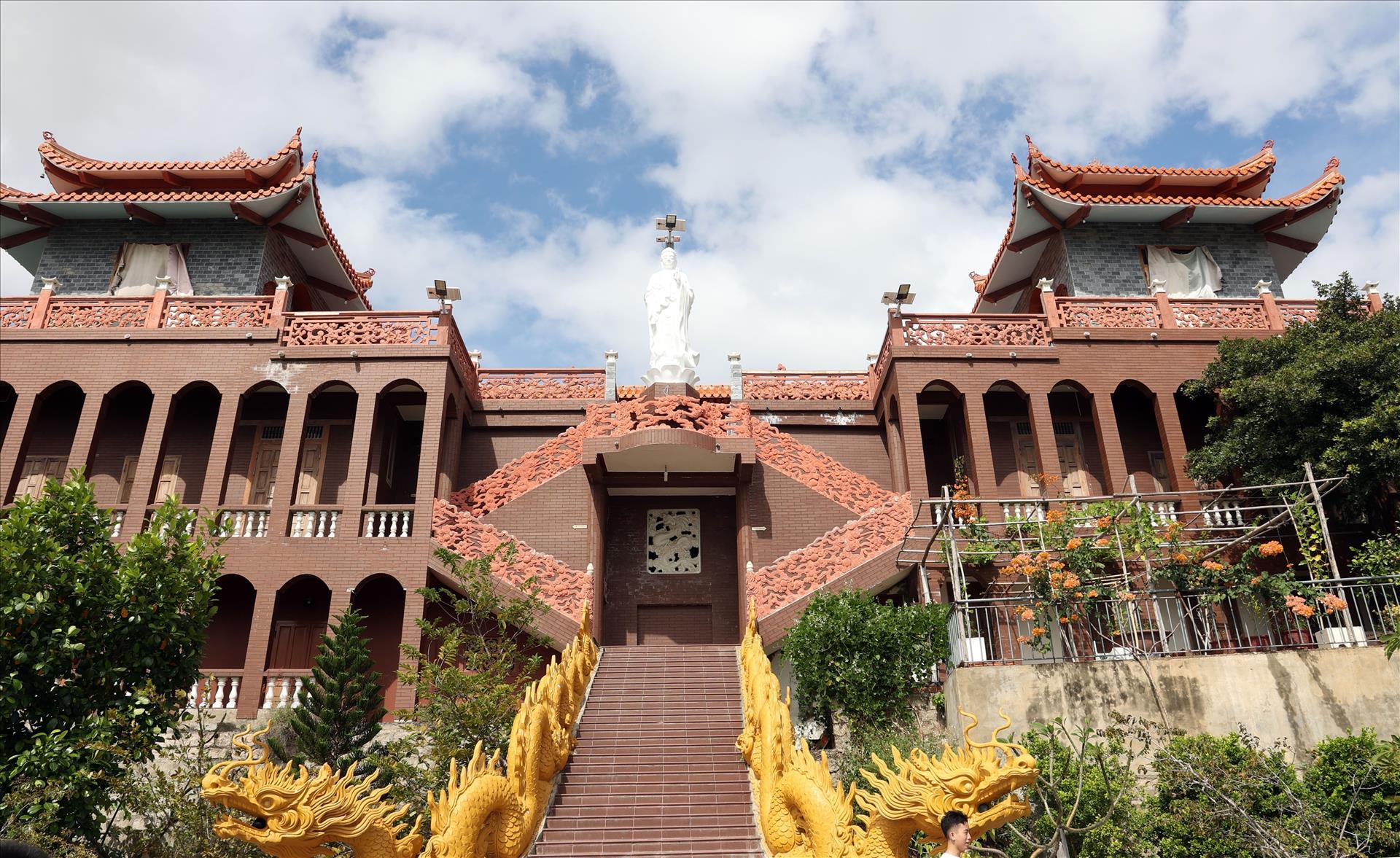 Du khách tham quan Trùng Sơn Cổ Tự tọa lạc trên núi cao tại xã Ninh Hải (Khánh Hòa). Ảnh: Đặng Tuấn – TTXVN