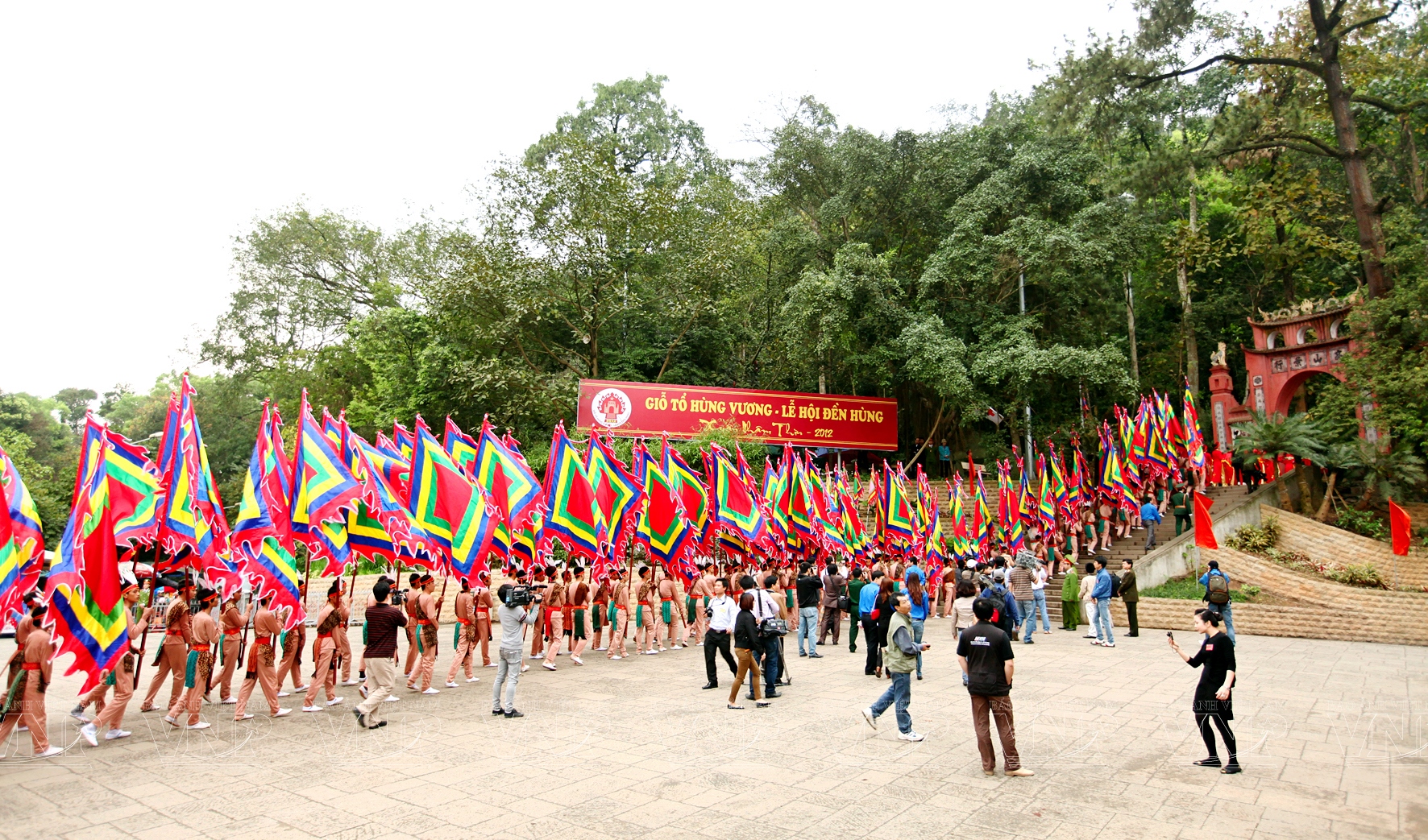 Hằng năm, lễ Giỗ Tổ Hùng Vương và Lễ hội Đền Hùng được tổ chức trang trọng, thu hút đông đảo người dân và du khách. Không gian lễ hội không chỉ gói gọn trong khu di tích mà còn lan tỏa rộng khắp vùng Đất Tổ và các khu vực lân cận, tạo nên một chuỗi hoạt động văn hóa - tâm linh phong phú. Bên cạnh nghi thức truyền thống, các hoạt động dân gian như rước kiệu, trình diễn diễn xướng hay hội thi gói bánh chưng, giã bánh giầy góp phần tái hiện sinh động đời sống cư dân thời Hùng Vương.