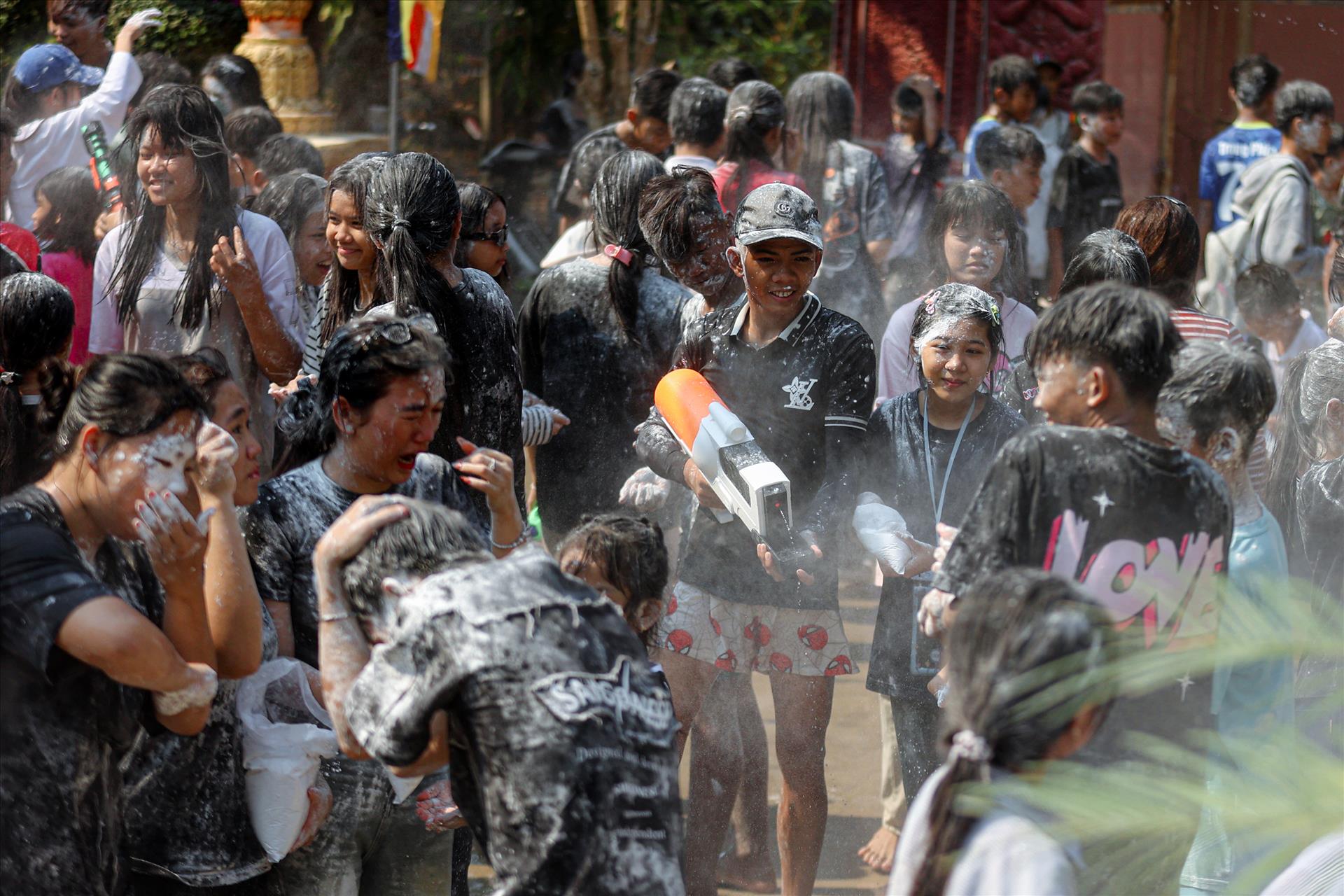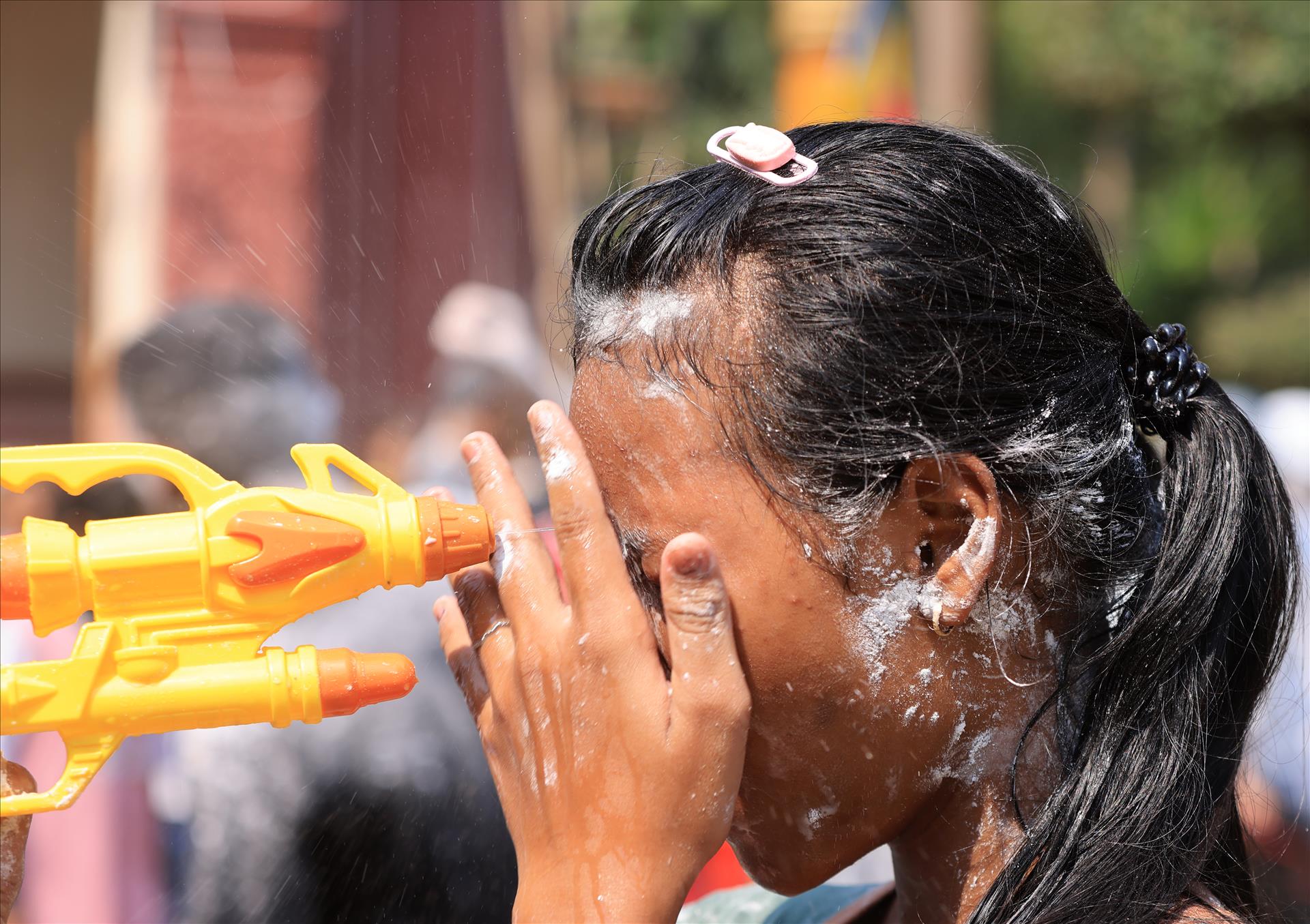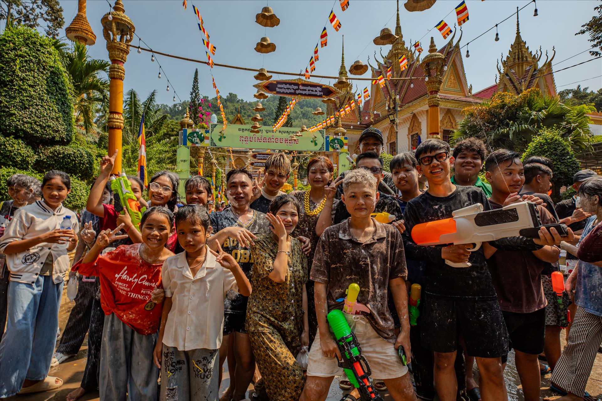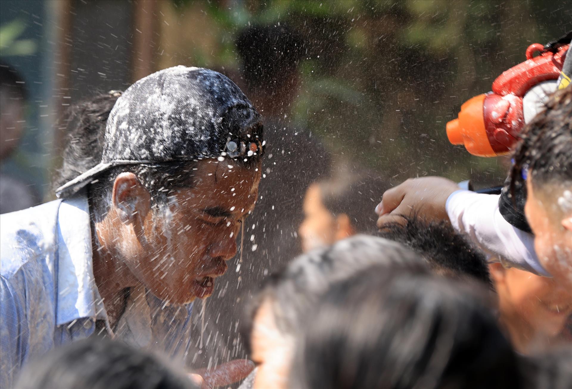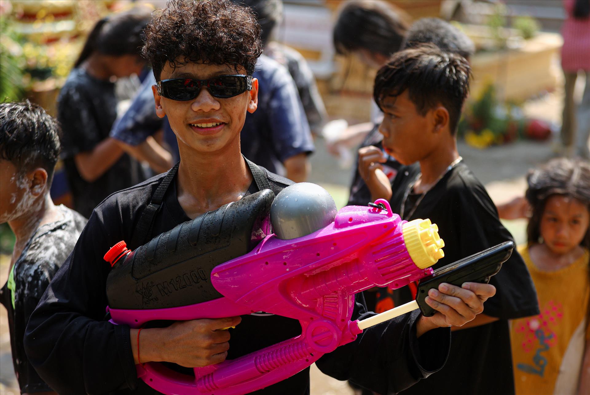 Từ khoảng giữa trưa, khuôn viên chùa trở nên sôi động với sự tham gia đông đảo của thanh thiếu niên và trẻ nhỏ. Những màn té nước diễn ra liên tục trong tiếng cười rộn rã. Không chỉ sử dụng các dụng cụ quen thuộc như ca, xô hay gáo nước, nhiều em nhỏ còn mang theo súng nước, biến hoạt động này thành một trò chơi vui nhộn, tạo nên những khoảnh khắc sinh động giữa không gian lễ hội. Những dòng nước được trao đi không mang tính đối kháng mà như một lời chúc bình an, thuận lợi trong năm mới.