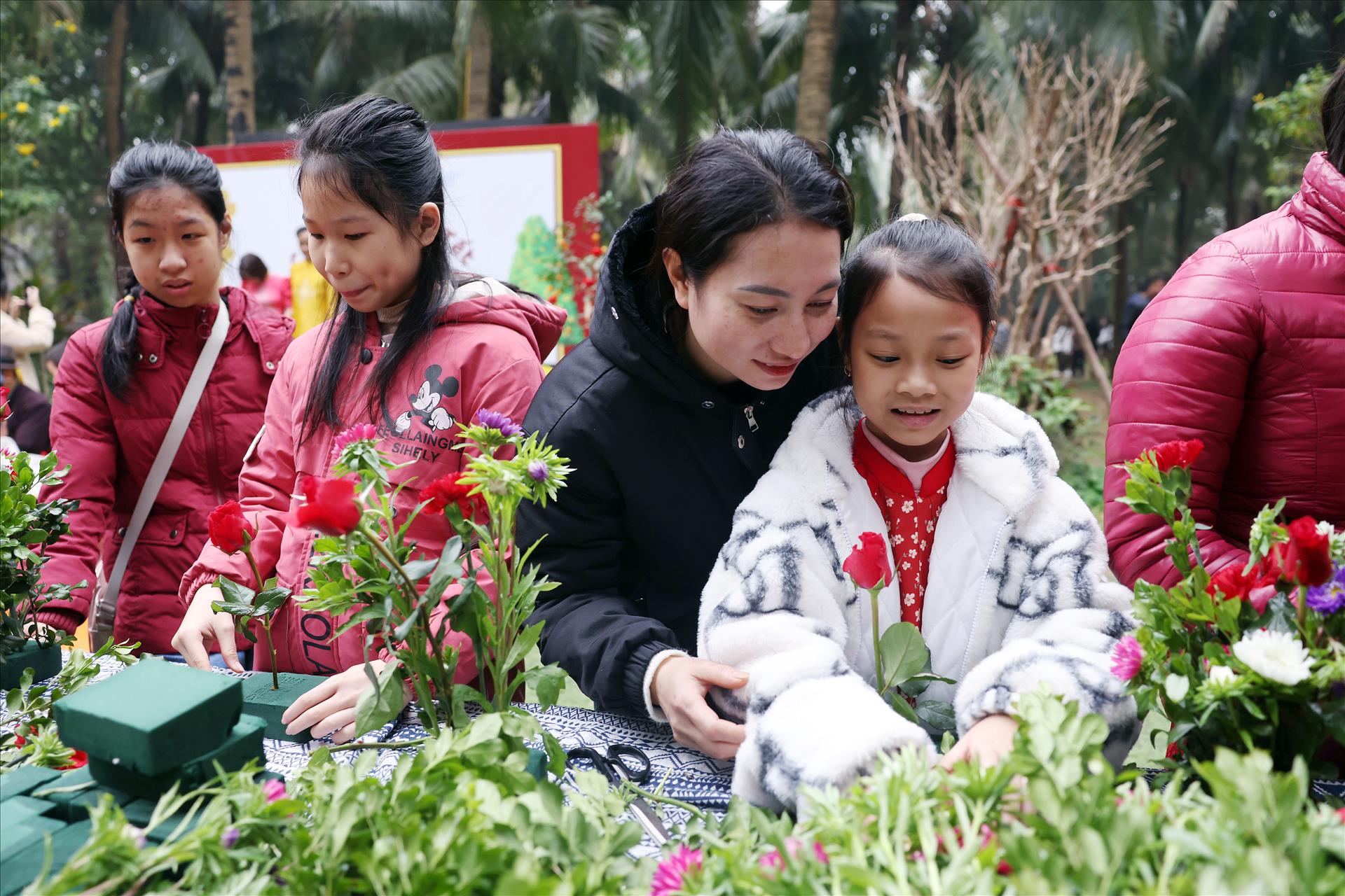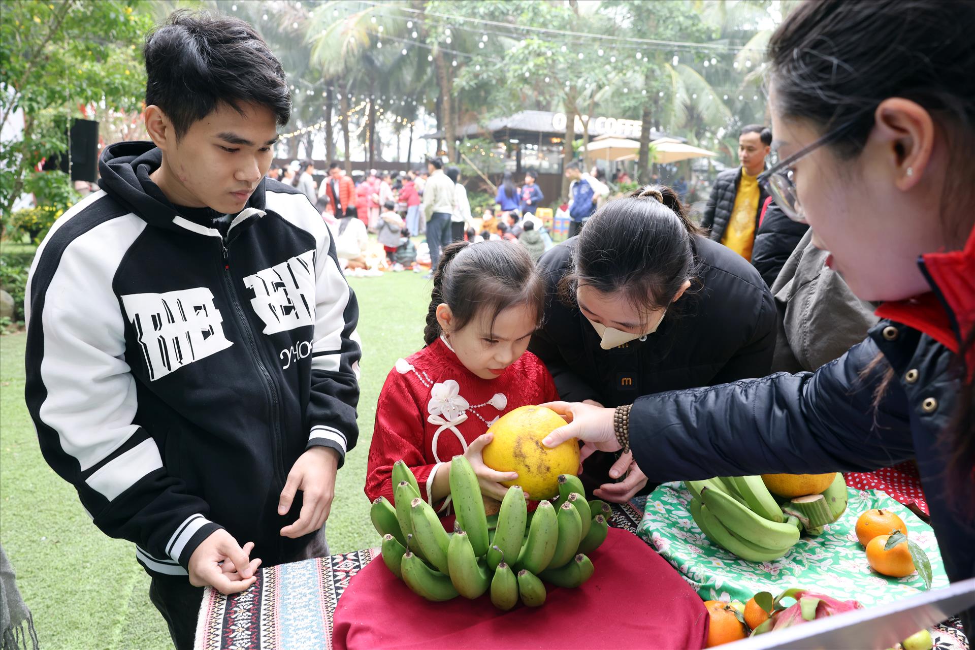 Bên cạnh đó, hoạt động bày mâm ngũ quả và cắm hoa ngày Tết mang đến cho các em cơ hội tiếp cận phong tục truyền thống theo cách rất gần gũi. Từng loại quả, từng bông hoa được giới thiệu bằng mùi hương, hình dáng, cảm giác khi chạm tay, giúp trẻ khiếm thị hình dung và ghi nhớ ý nghĩa của mâm ngũ quả, của sắc xuân trong đời sống văn hóa Việt.