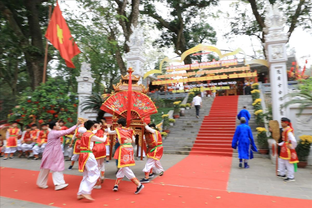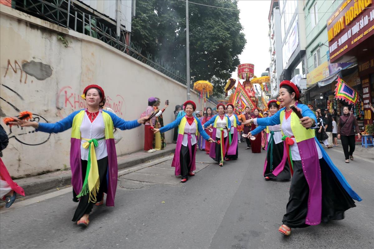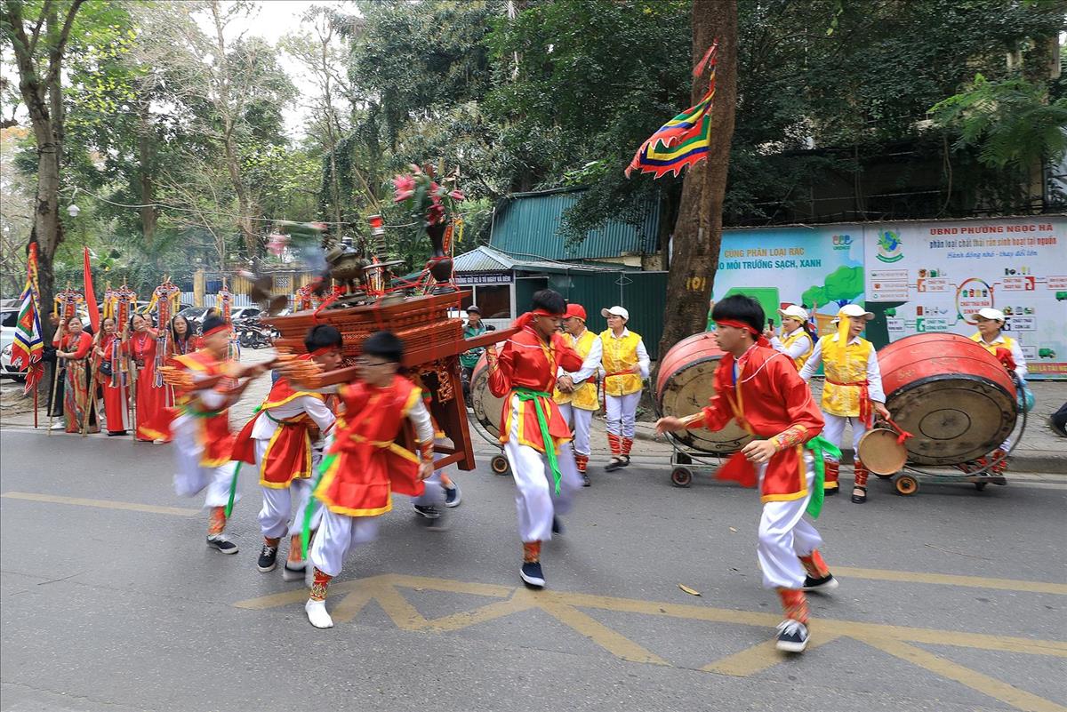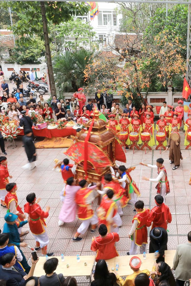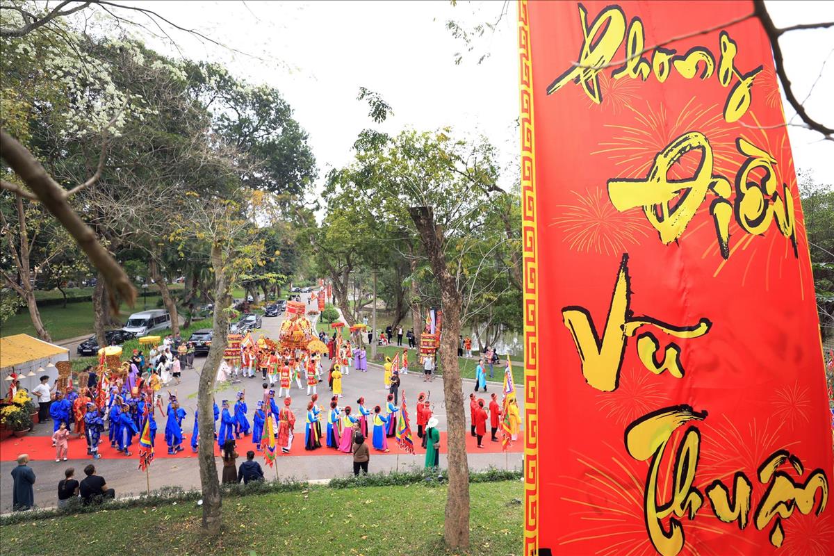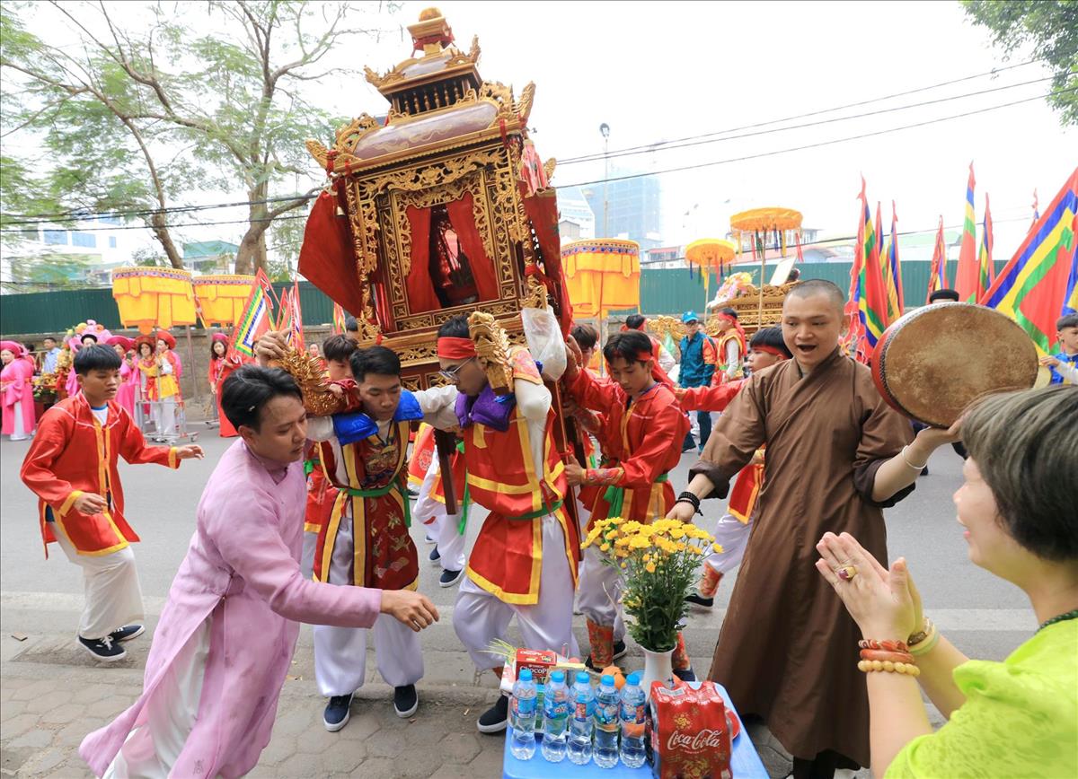Màn rước kiệu xuyên qua những con ngõ nhỏ của làng hoa cổ, giữa tiếng trống cái giòn giã và tiếng hò reo cổ vũ của hàng ngàn người dân. Hình ảnh chiếc kiệu sơn son thiếp vàng rực rỡ dưới tiết trời xuân, xoay vần giữa sắc cờ hội ngũ hành, tạo nên một bức tranh ấn tượng, nơi quá khứ và hiện tại giao thoa một cách mãnh liệt.