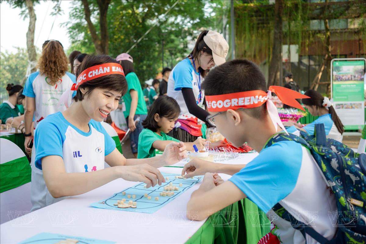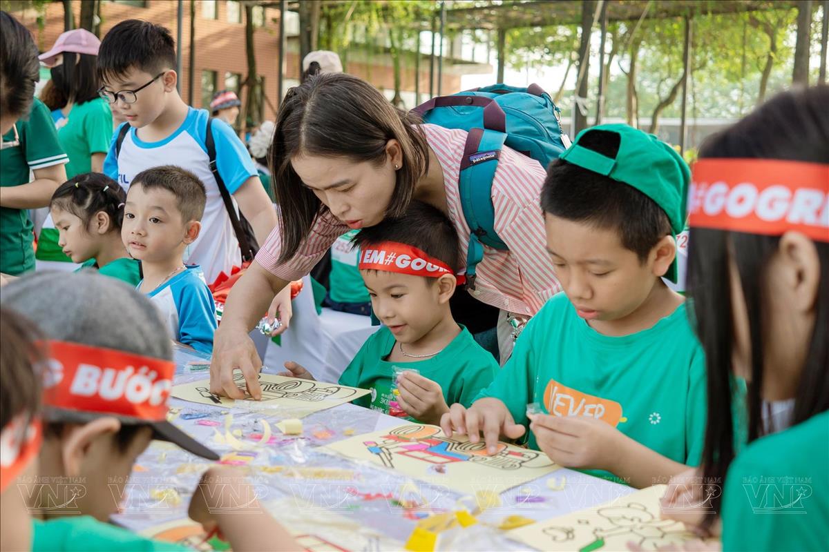 Sau khi hoàn thành chặng đua, các vận động viên nhỏ tuổi được tham gia những trò chơi trải nghiệm. Ảnh: Phương Nhi