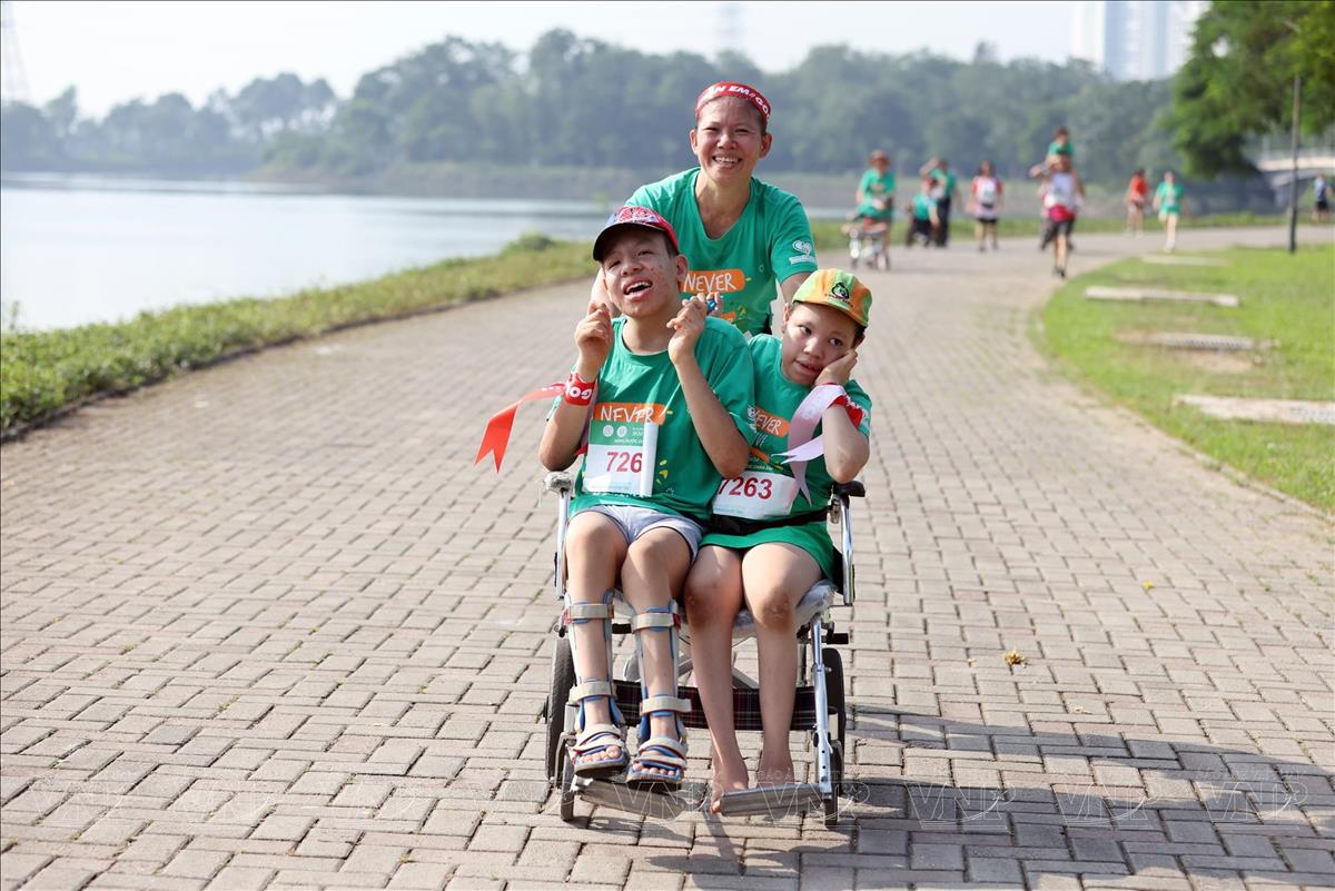 Được tham gia giải chạy và di chuyển trên đường chạy là một trải nghiệm hết sức mới mẻ với các em nhỏ bị bệnh bại não. Ảnh: Công Đạt