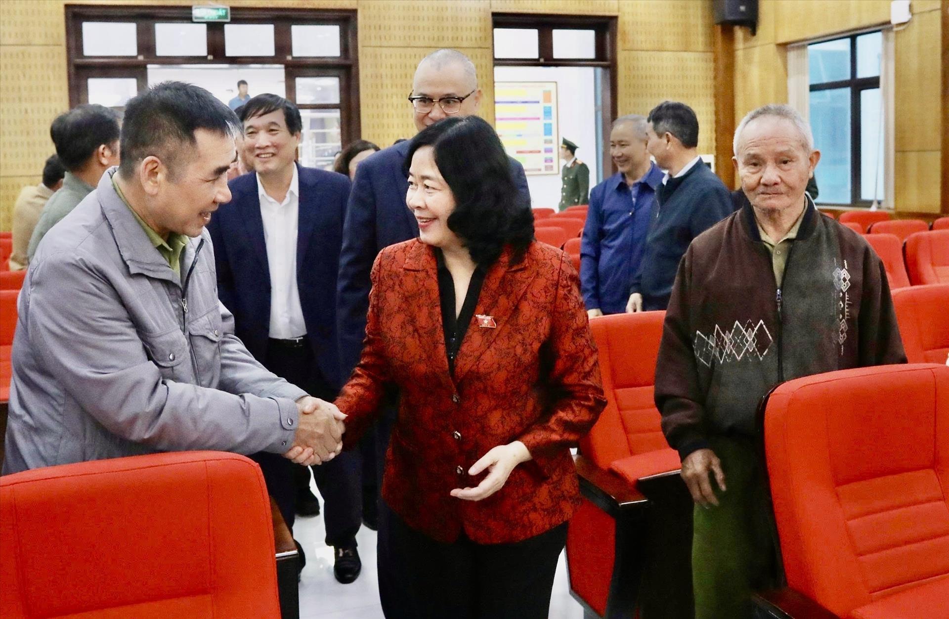 Chủ tịch Uỷ ban Trung ương Mặt trận Tổ quốc Việt Nam Bùi Thị Minh Hoài phát biểu tại buổi tiếp xúc với cử tri. Ảnh: Vũ Hà - TTXVN