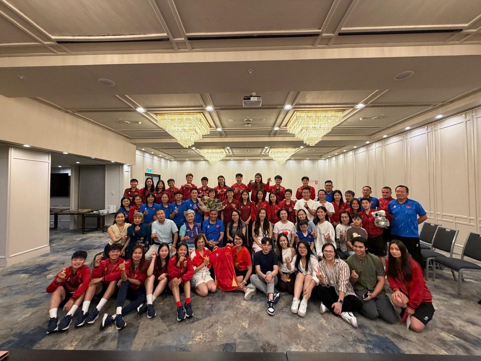 Theo phóng viên TTXVN tại Australia, buổi gặp gỡ diễn ra trong không khí hân hoan, ấm áp và đầy tự hào. Những bó hoa tươi thắm đã được chính tay Tổng Lãnh sự Nguyễn Thanh Hà trao tặng các nữ cầu thủ, cùng những tràng pháo tay và lời chúc mừng nồng nhiệt từ cộng đồng người Việt, các cổ động viên và người hâm mộ tại thành phố Perth, tạo nên bầu không khí thân tình, gần gũi như một cuộc gặp gỡ của những người thân trong gia đình.