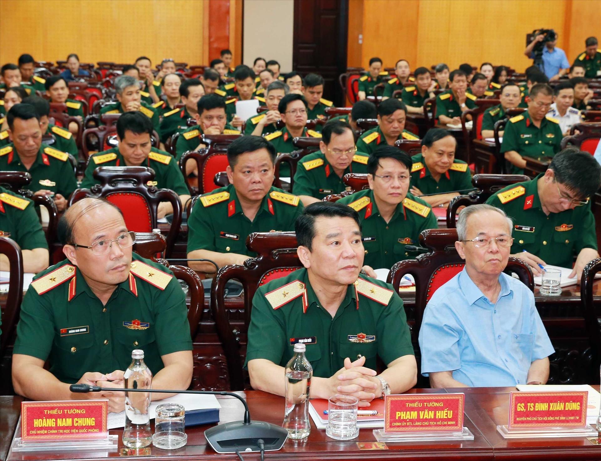 Đề dẫn hội thảo, Thiếu tướng Nguyễn Xuân Thủy, Phó Cục trưởng Cục Tuyên huấn khẳng định, trong mọi điều kiện, hoàn cảnh, công tác tư tưởng, văn hóa trong Quân đội luôn quán triệt sâu sắc chủ trương của Đảng, chính sách, pháp luật của Nhà nước, chỉ thị, nghị quyết của Quân ủy Trung ương, Bộ Quốc phòng; đẩy mạnh công tác tuyên truyền, giáo dục, củng cố niềm tin vững chắc cho cán bộ, chiến sĩ vào sự lãnh đạo của Đảng Cộng sản Việt Nam, kiên định mục tiêu độc lập dân tộc và chủ nghĩa xã hội; khẳng định sức mạnh của nền quốc phòng toàn dân, nền an ninh nhân dân, thế trận quốc phòng toàn dân, thế trận an ninh nhân dân gắn với thế trận lòng dân vững chắc và niềm tin vào sức mạnh chiến đấu, chiến thắng của Quân đội ta; chủ động, nhạy bén đấu tranh, phản bác các quan điểm sai trái thù địch, giữ vững trận địa tư tưởng của Đảng trong Quân đội.